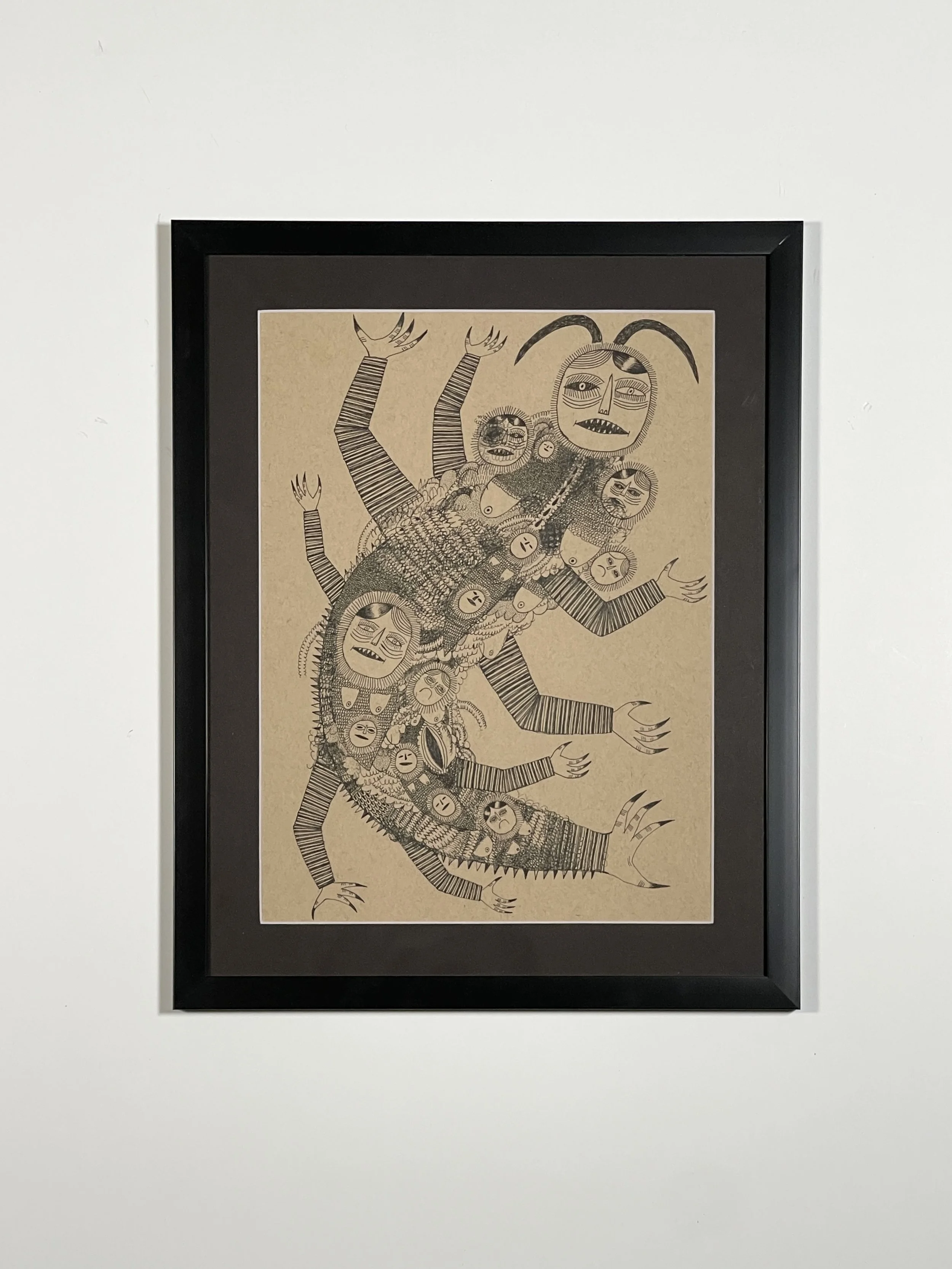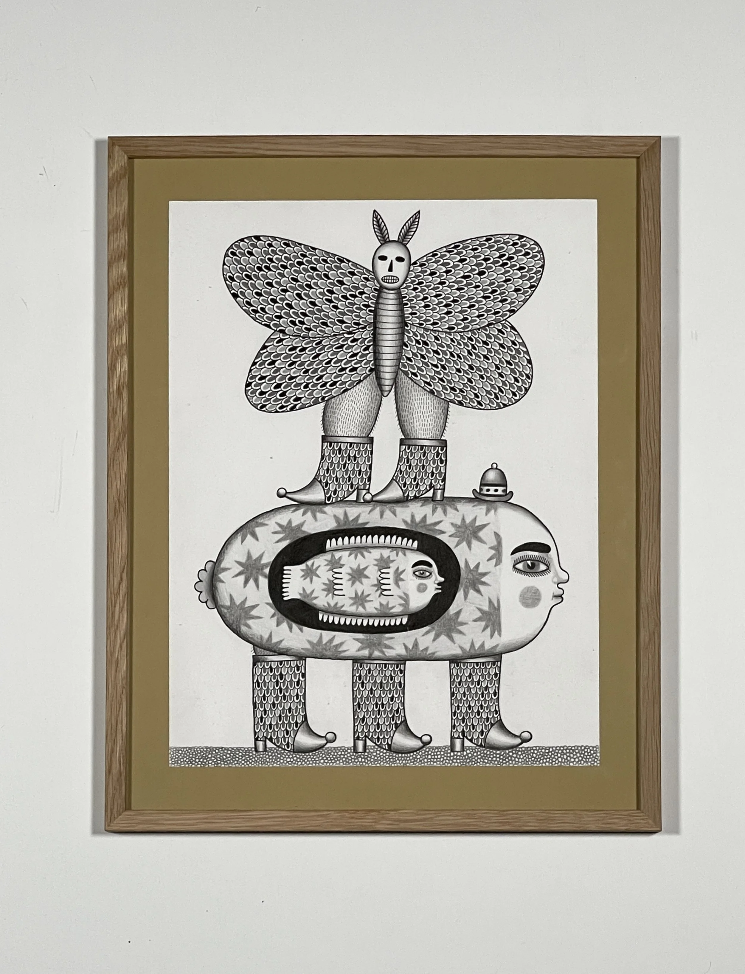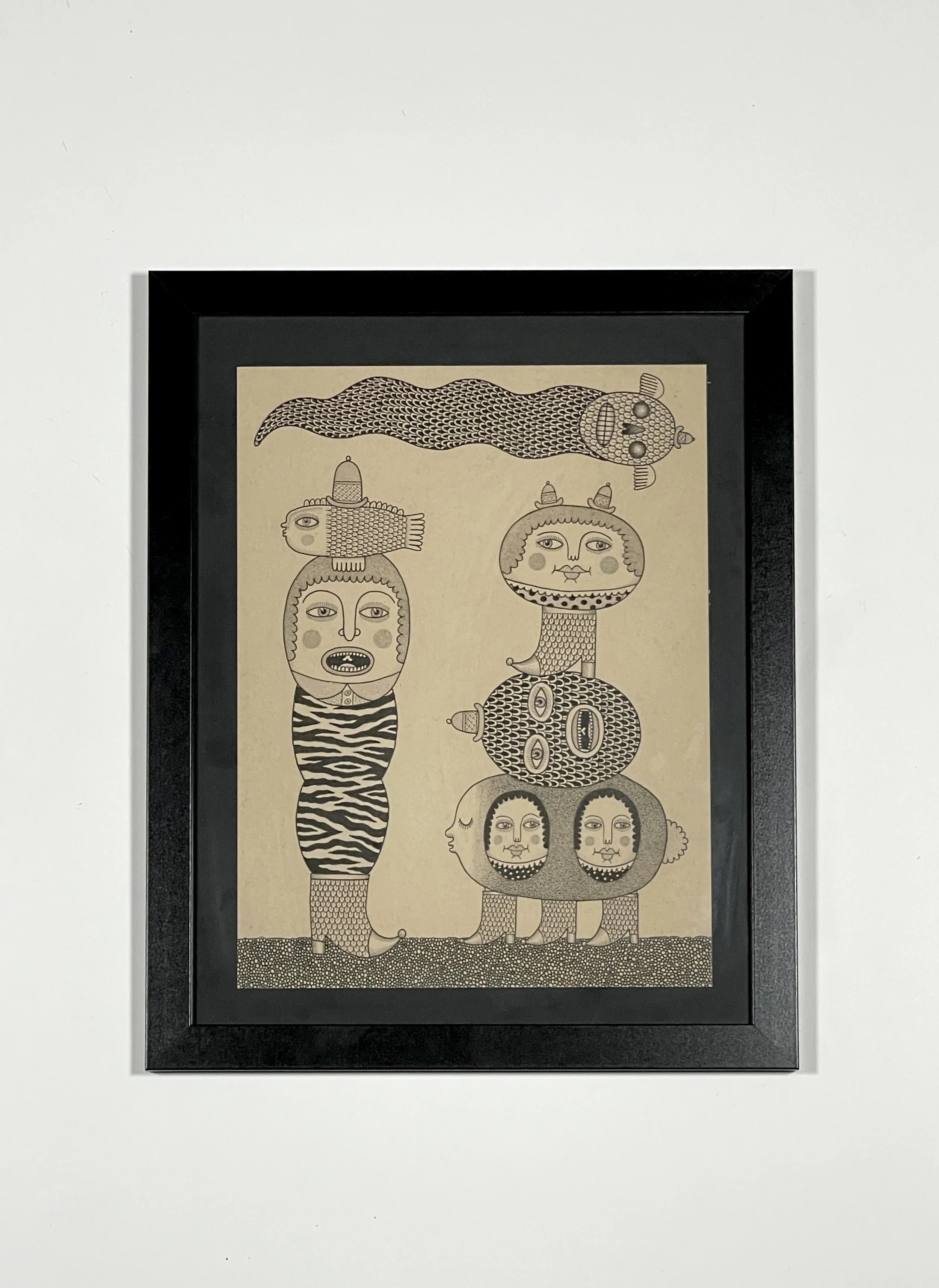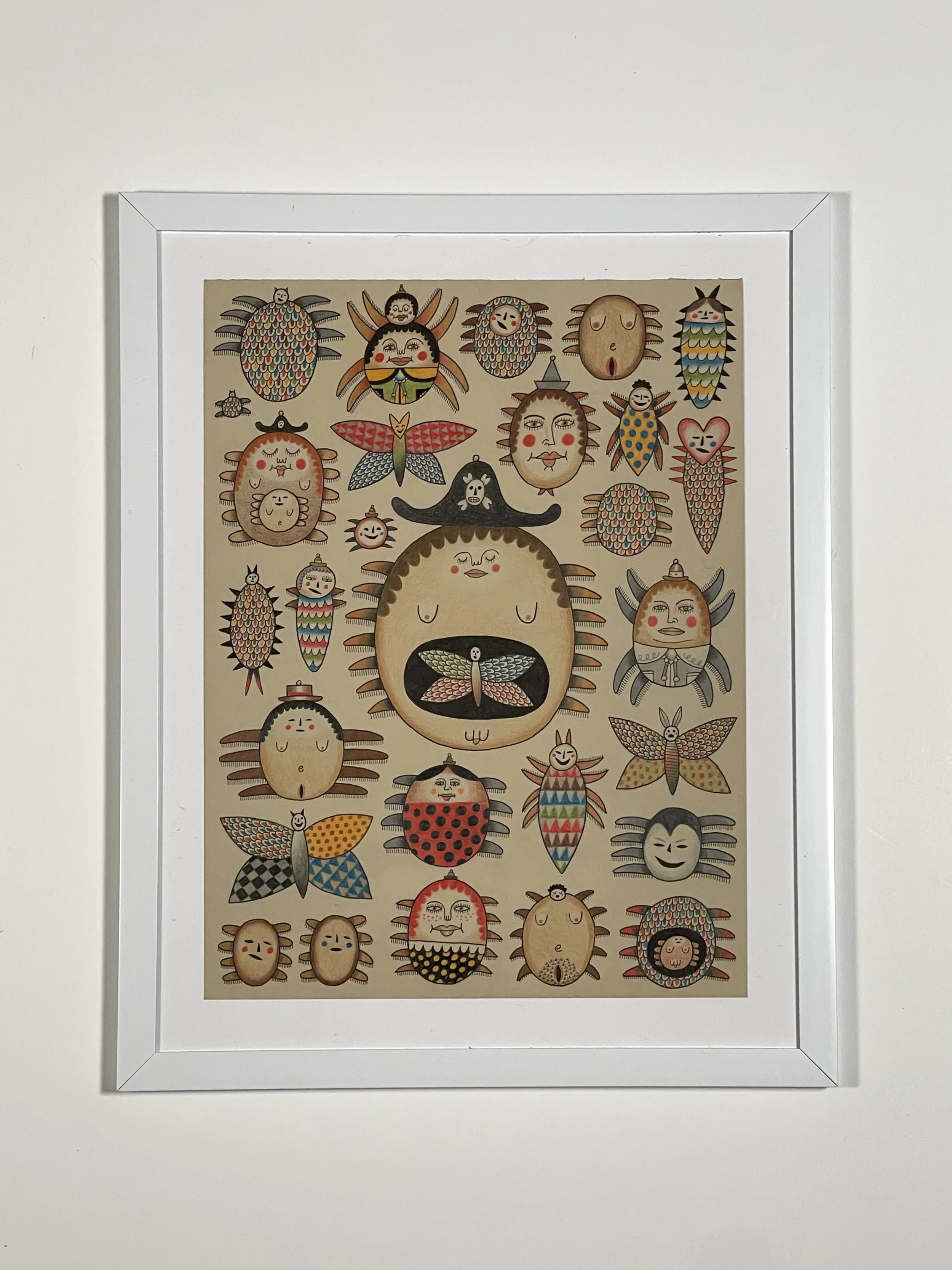 The title of the exhibit, "All The Little Things That Happened In Our Heads," is a testament to the communal effervescence that I feel is infused in the work—almost all of the drawings were created while sitting at the desk at Moth Belly, surrounded by ever-changing exhibits showcasing the thoughts, dreams, and ideas of artists in our community. It also reflects the creative process of making this work— over the past few years, drawing has somewhat taken on the role of journaling for me, giving me a way of both documenting my creative whims and impulses, as well as the happenings in my life and my relationships with people.