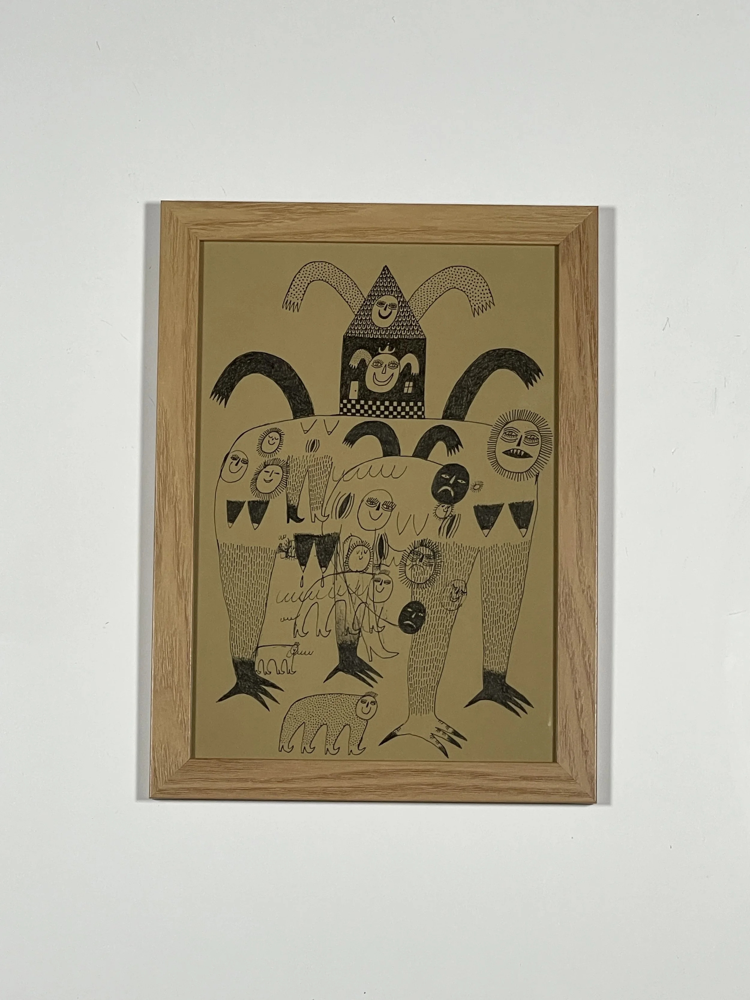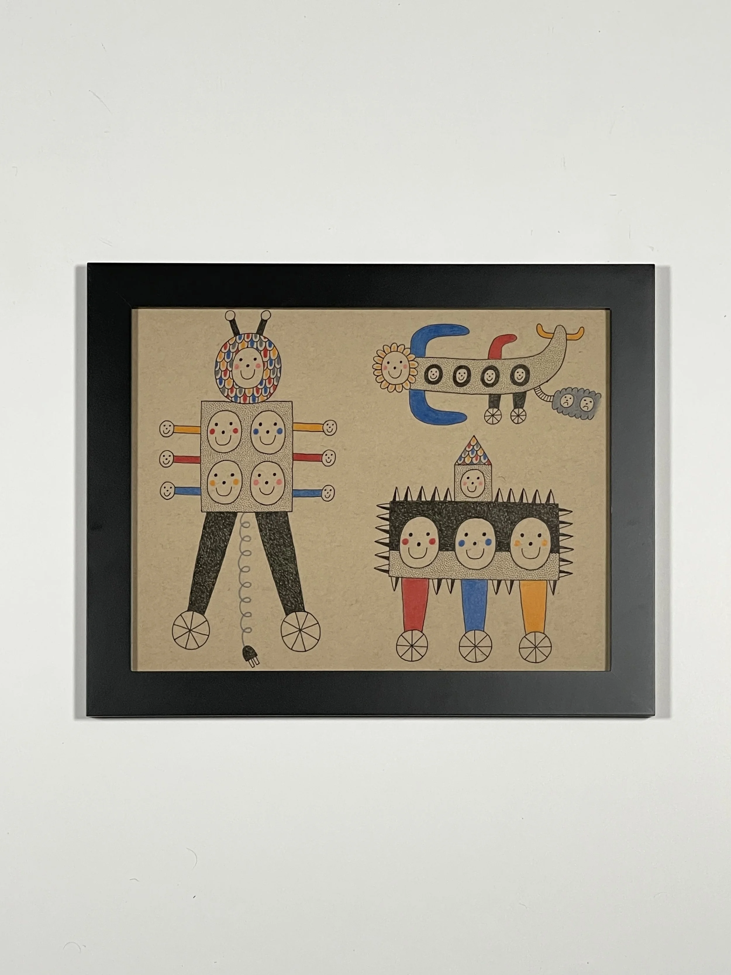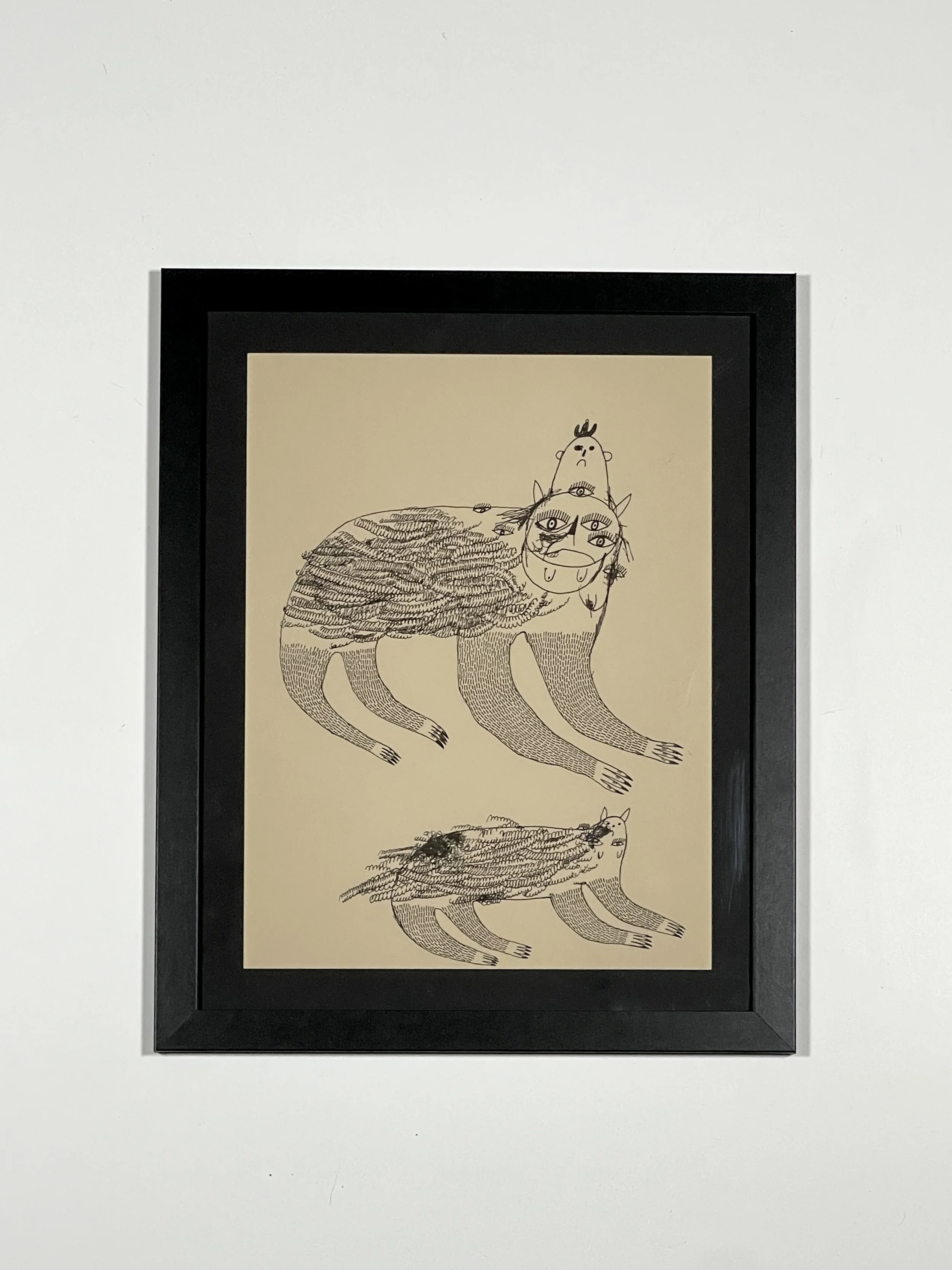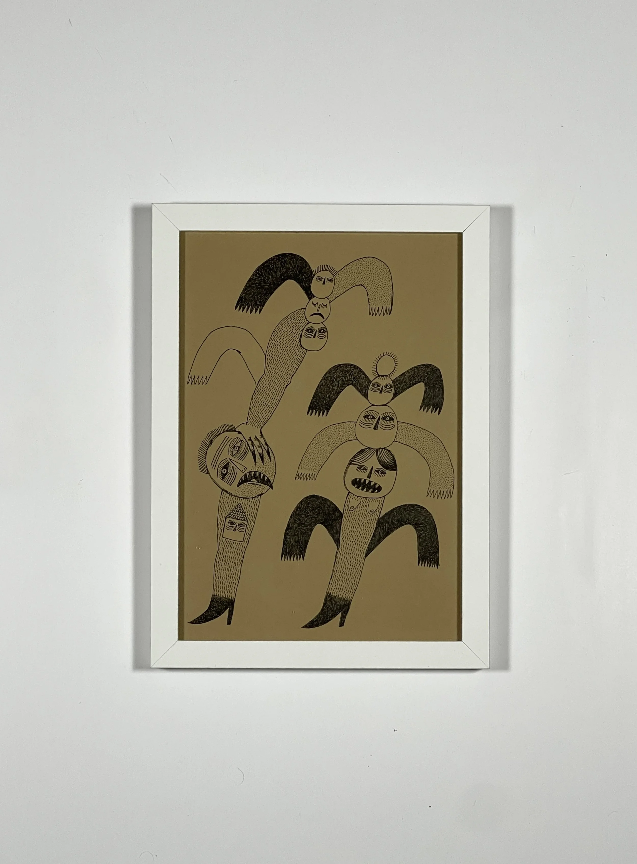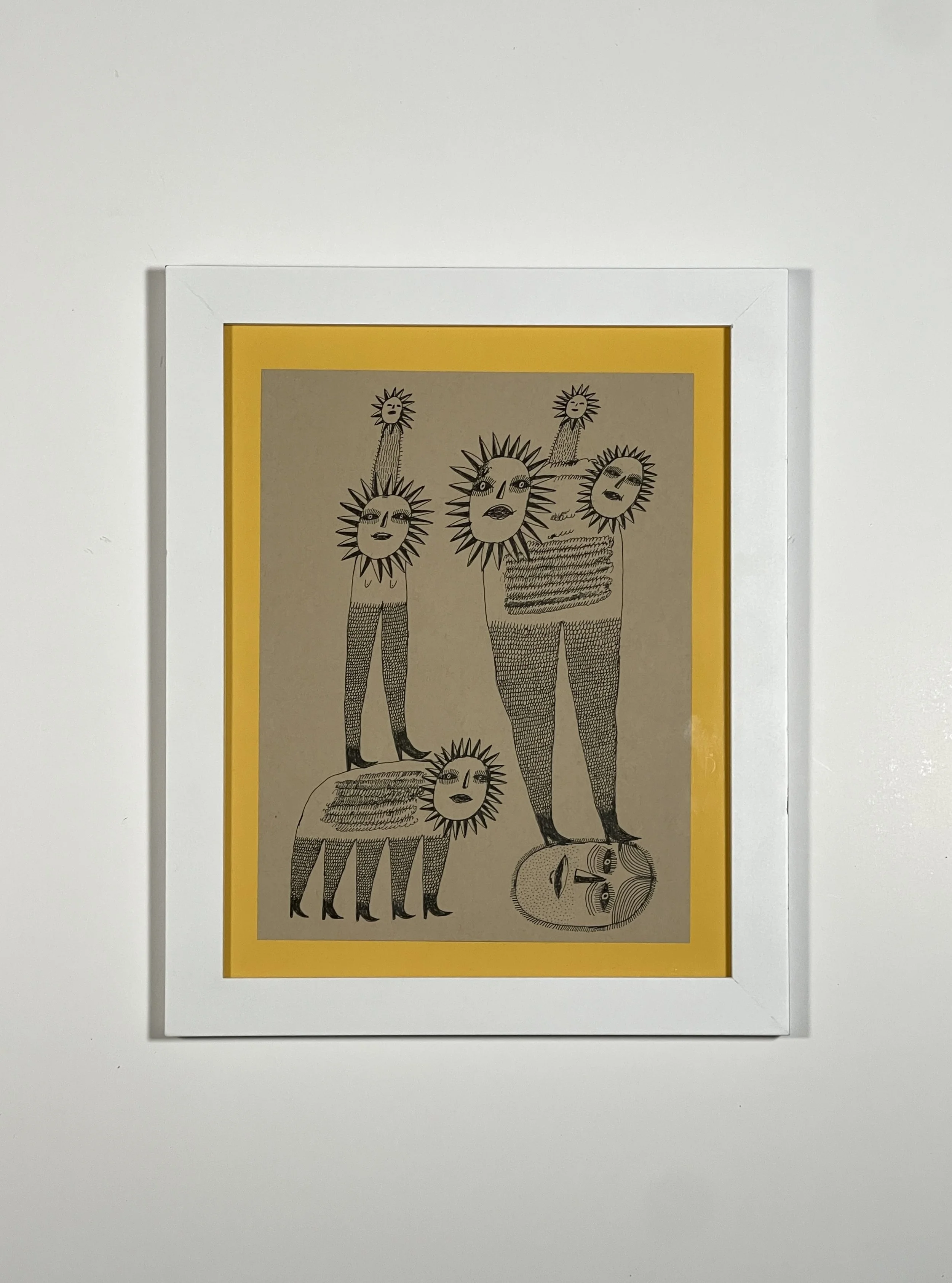 The title of the exhibit, "All The Little Things That Happened In Our Heads," is a testament to the communal effervescence that I feel is infused in the work—almost all of the drawings were created while sitting at the desk at Moth Belly, surrounded by ever-changing exhibits showcasing the thoughts, dreams, and ideas of artists in our community. It also reflects the creative process of making this work— over the past few years, drawing has somewhat taken on the role of journaling for me, giving me a way of both documenting my creative whims and impulses, as well as the happenings in my life and my relationships with people.