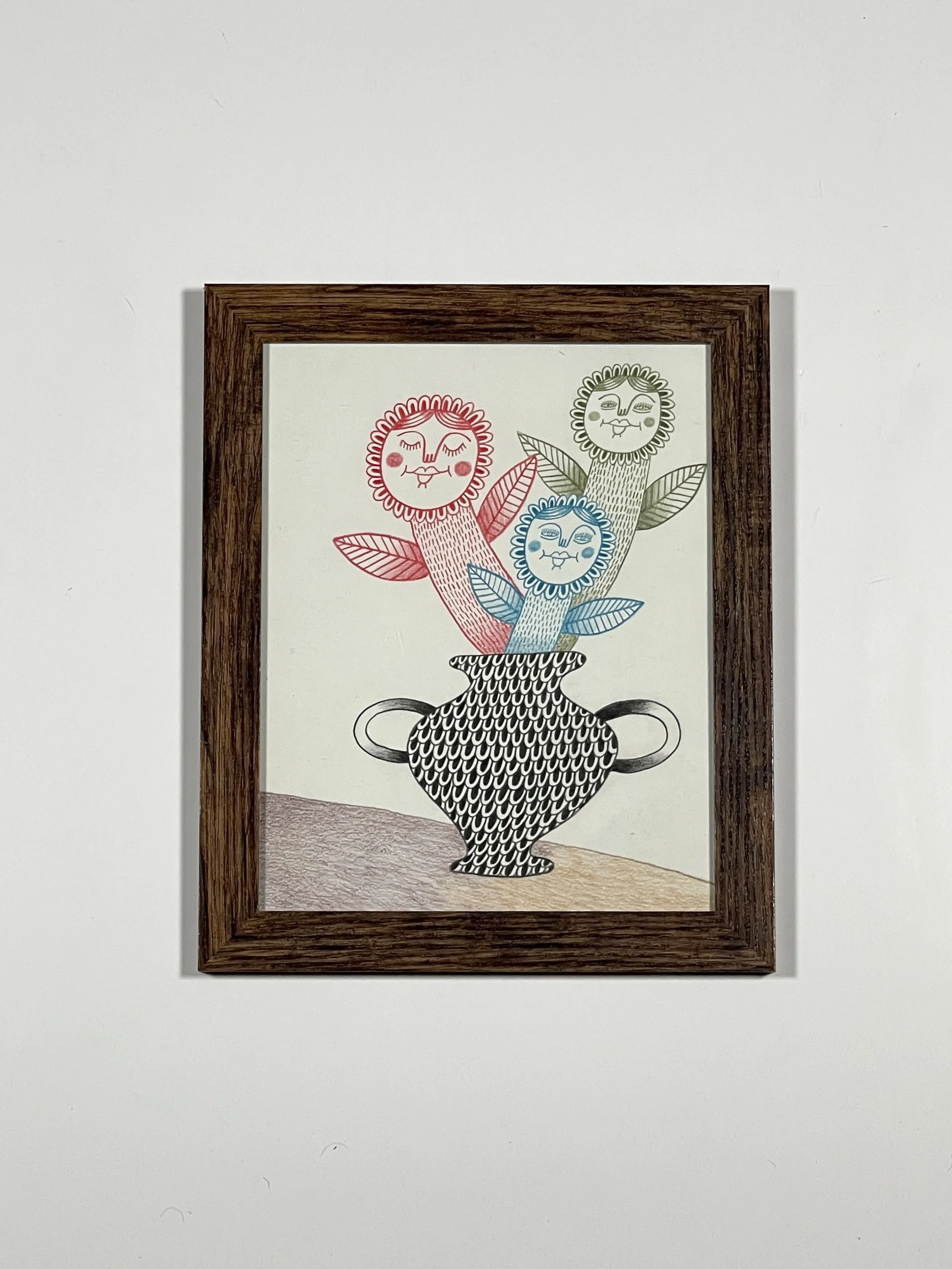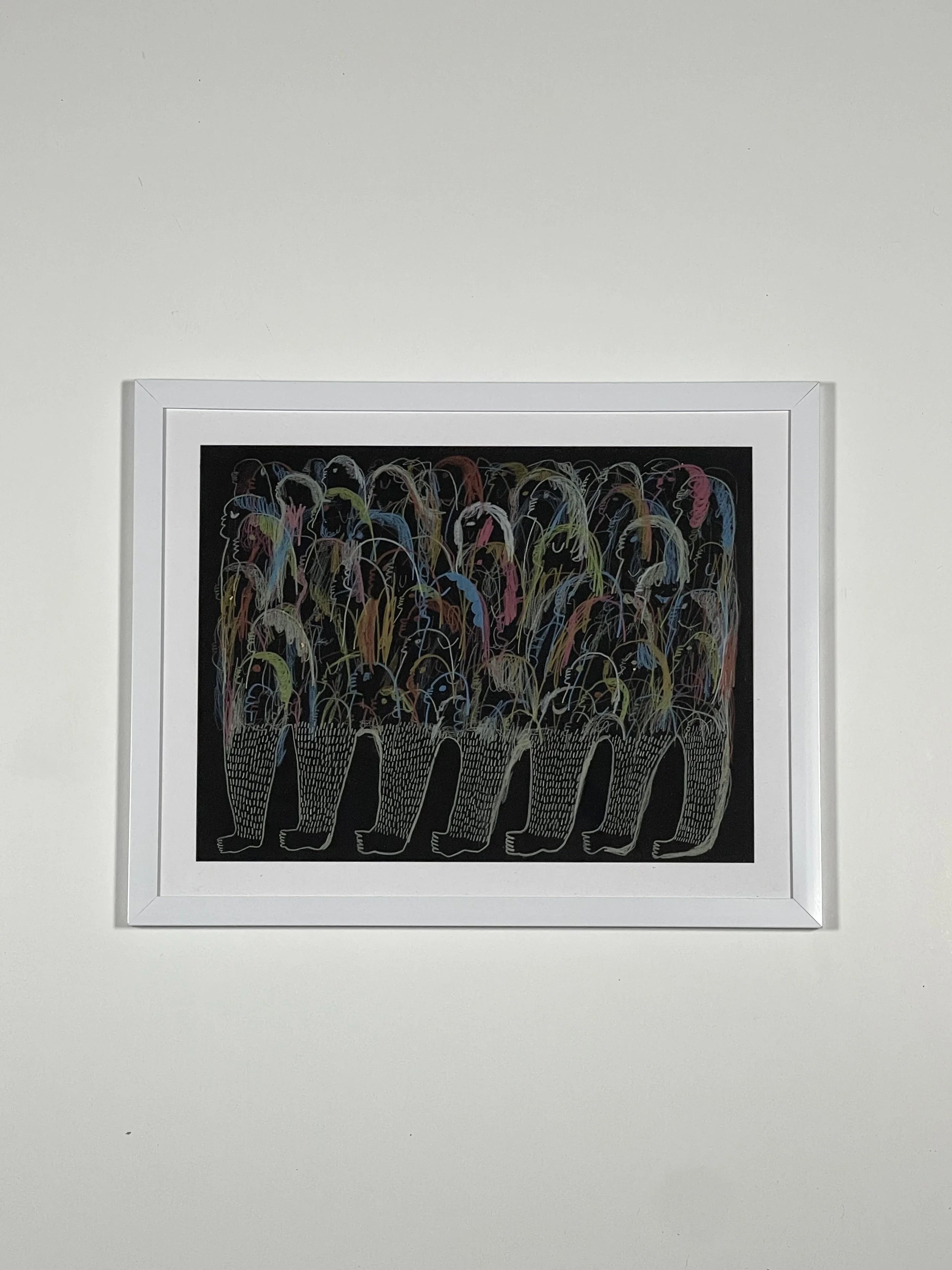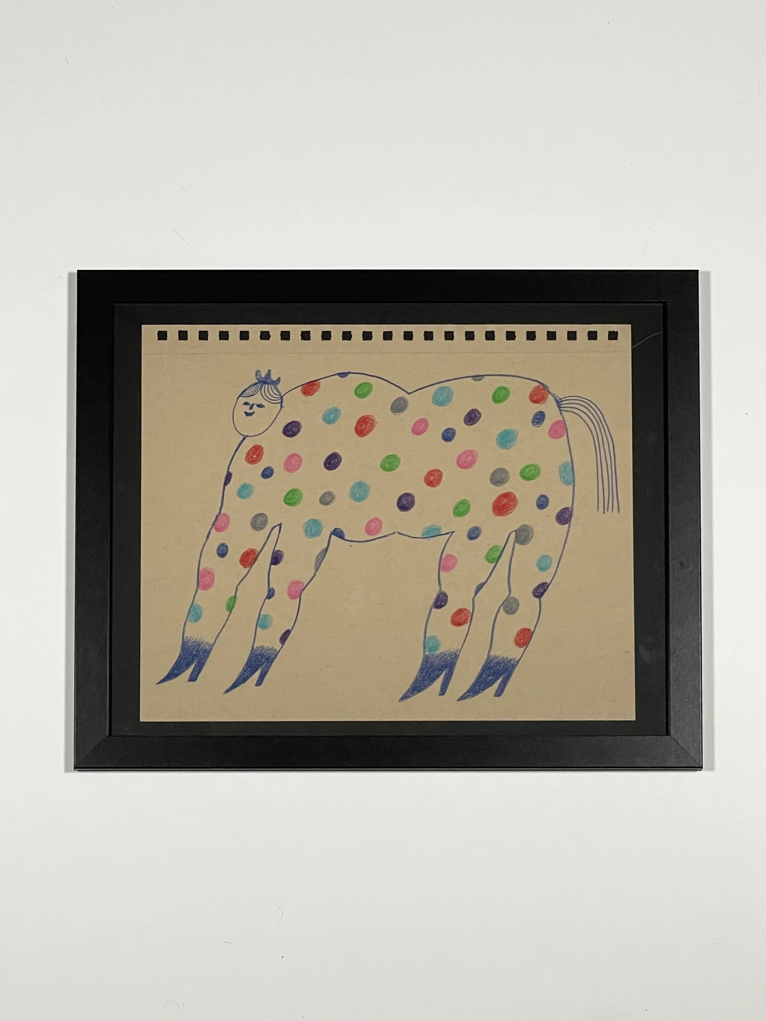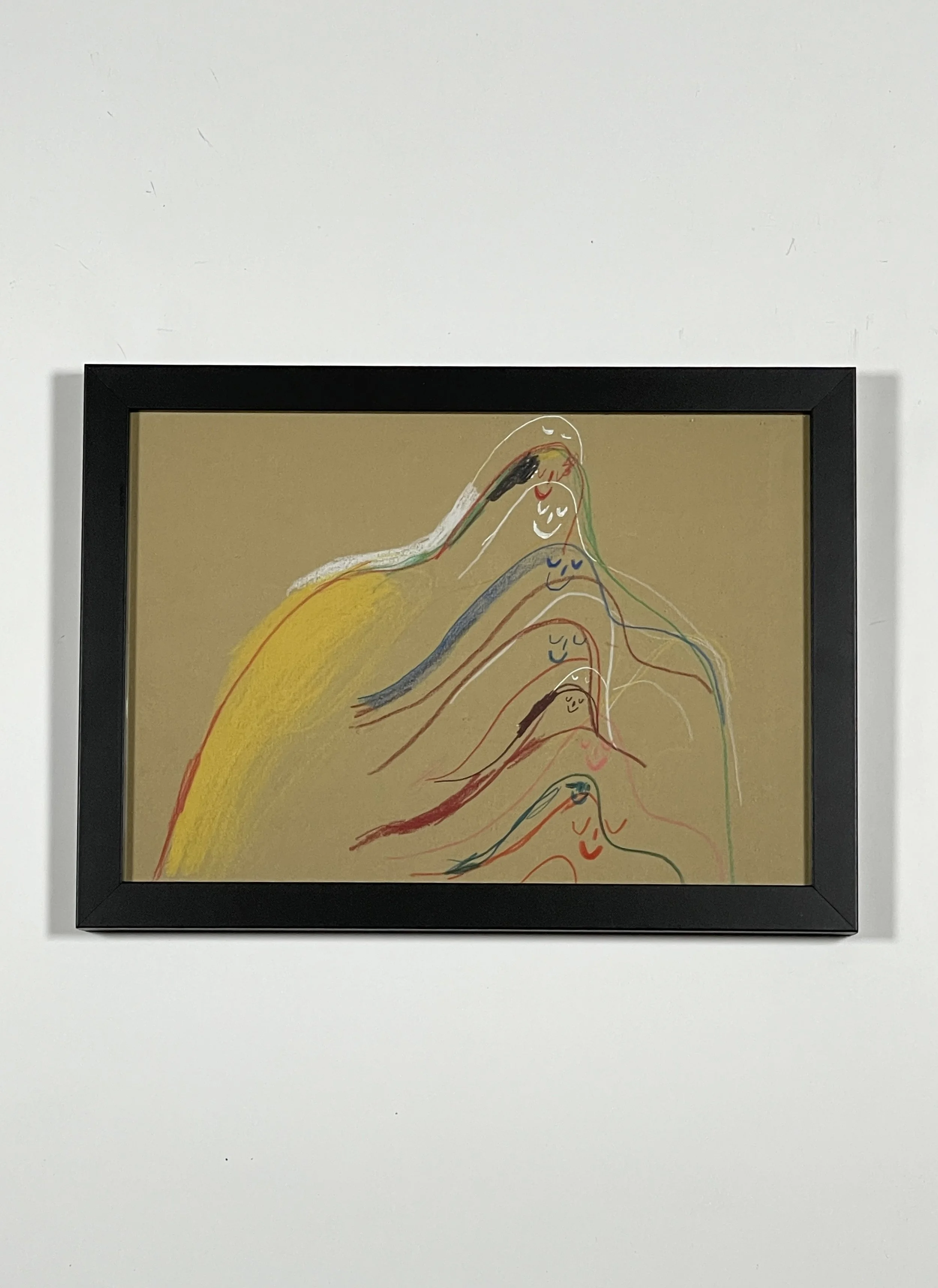 The title of the exhibit, "All The Little Things That Happened In Our Heads," is a testament to the communal effervescence that I feel is infused in the work—almost all of the drawings were created while sitting at the desk at Moth Belly, surrounded by ever-changing exhibits showcasing the thoughts, dreams, and ideas of artists in our community. It also reflects the creative process of making this work— over the past few years, drawing has somewhat taken on the role of journaling for me, giving me a way of both documenting my creative whims and impulses, as well as the happenings in my life and my relationships with people.