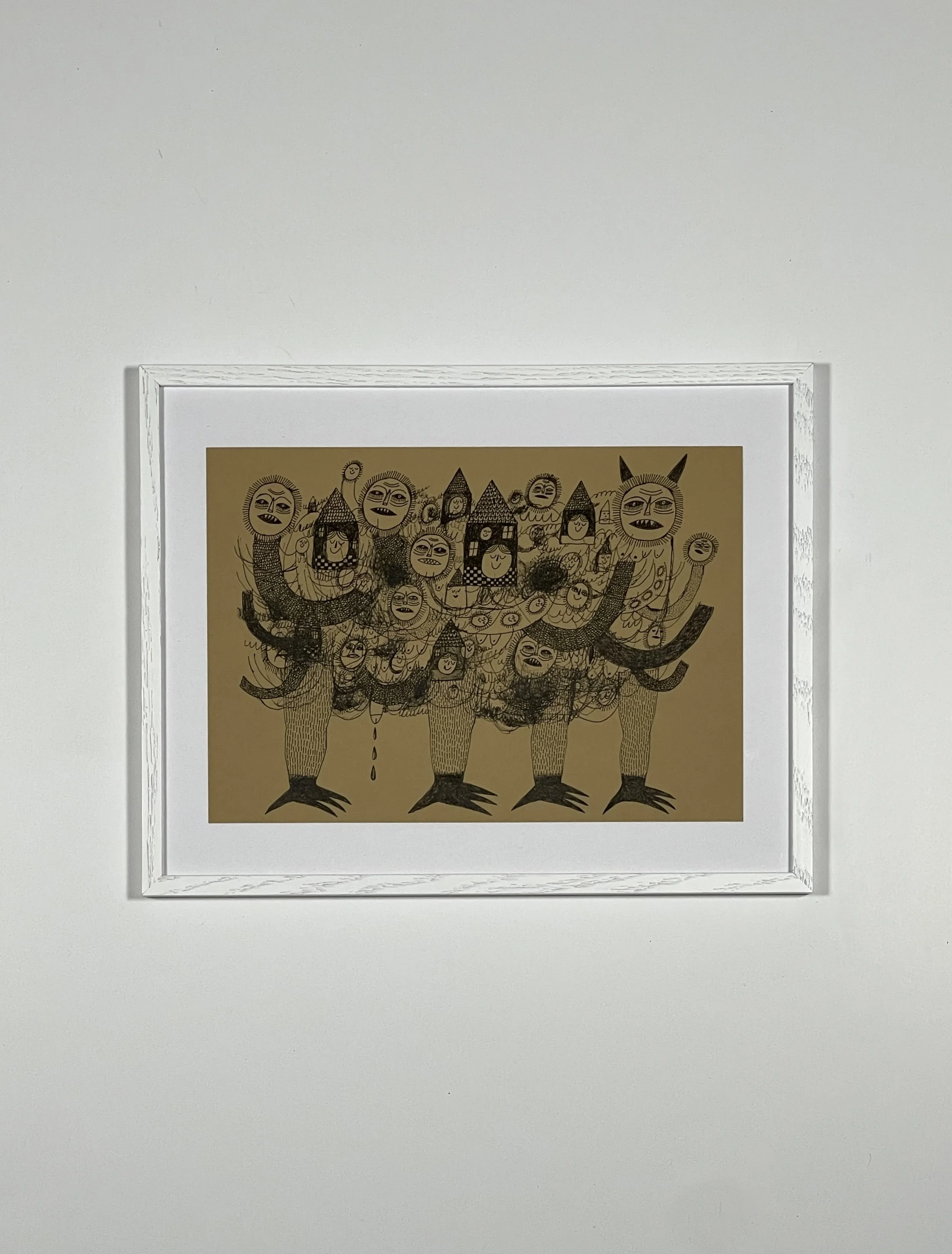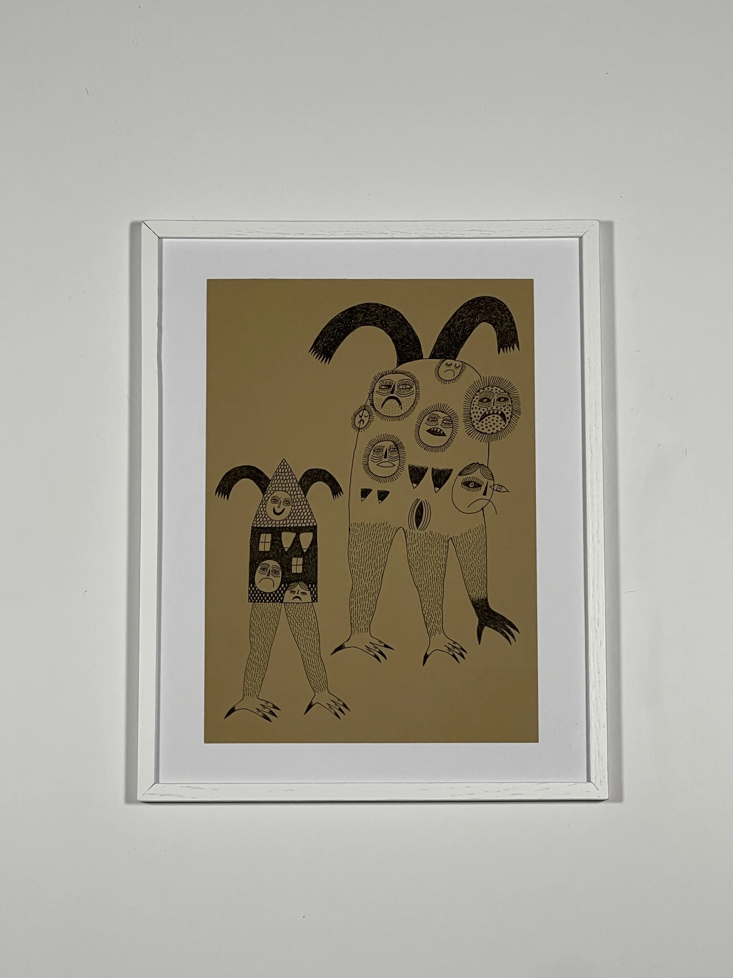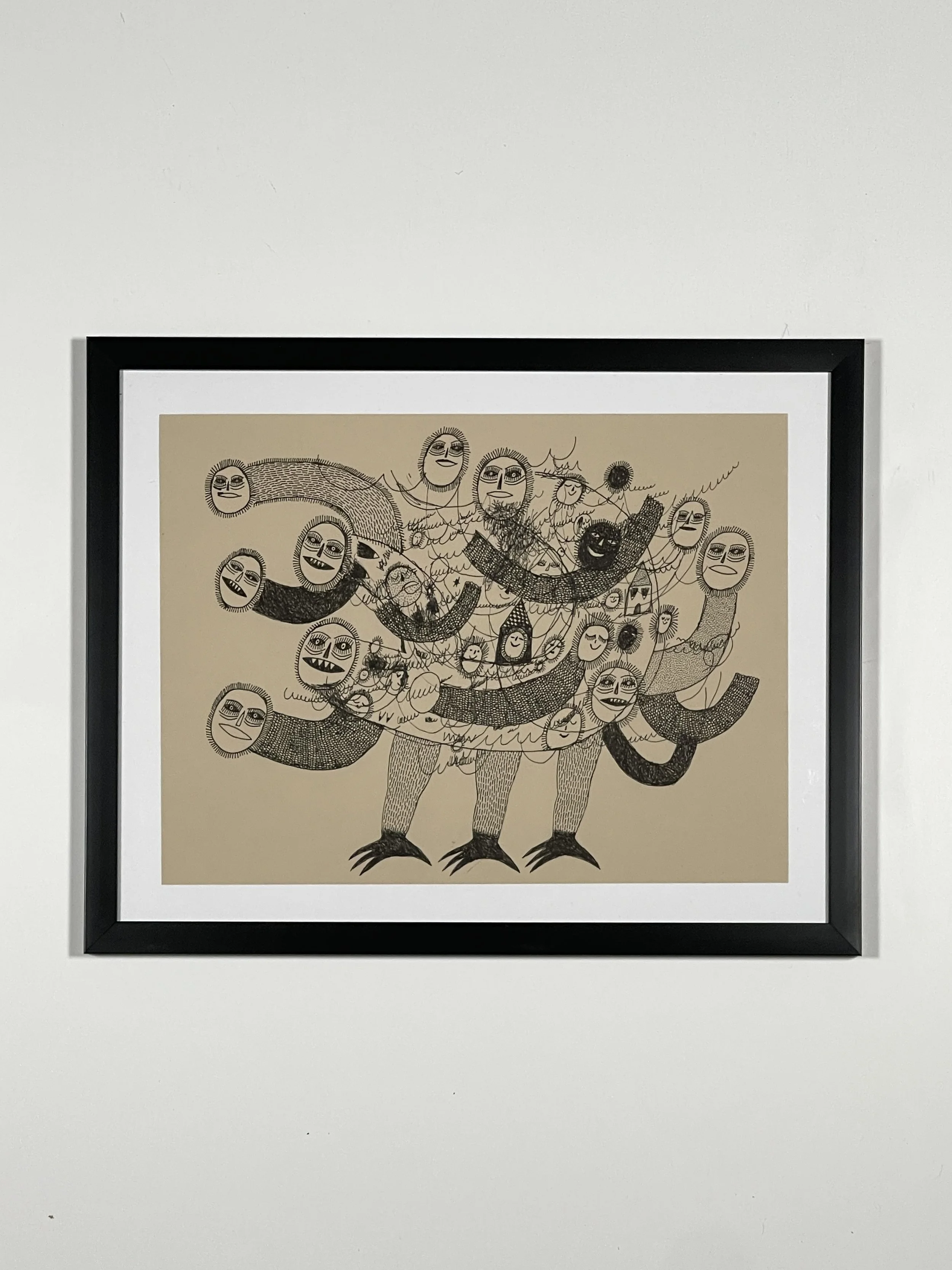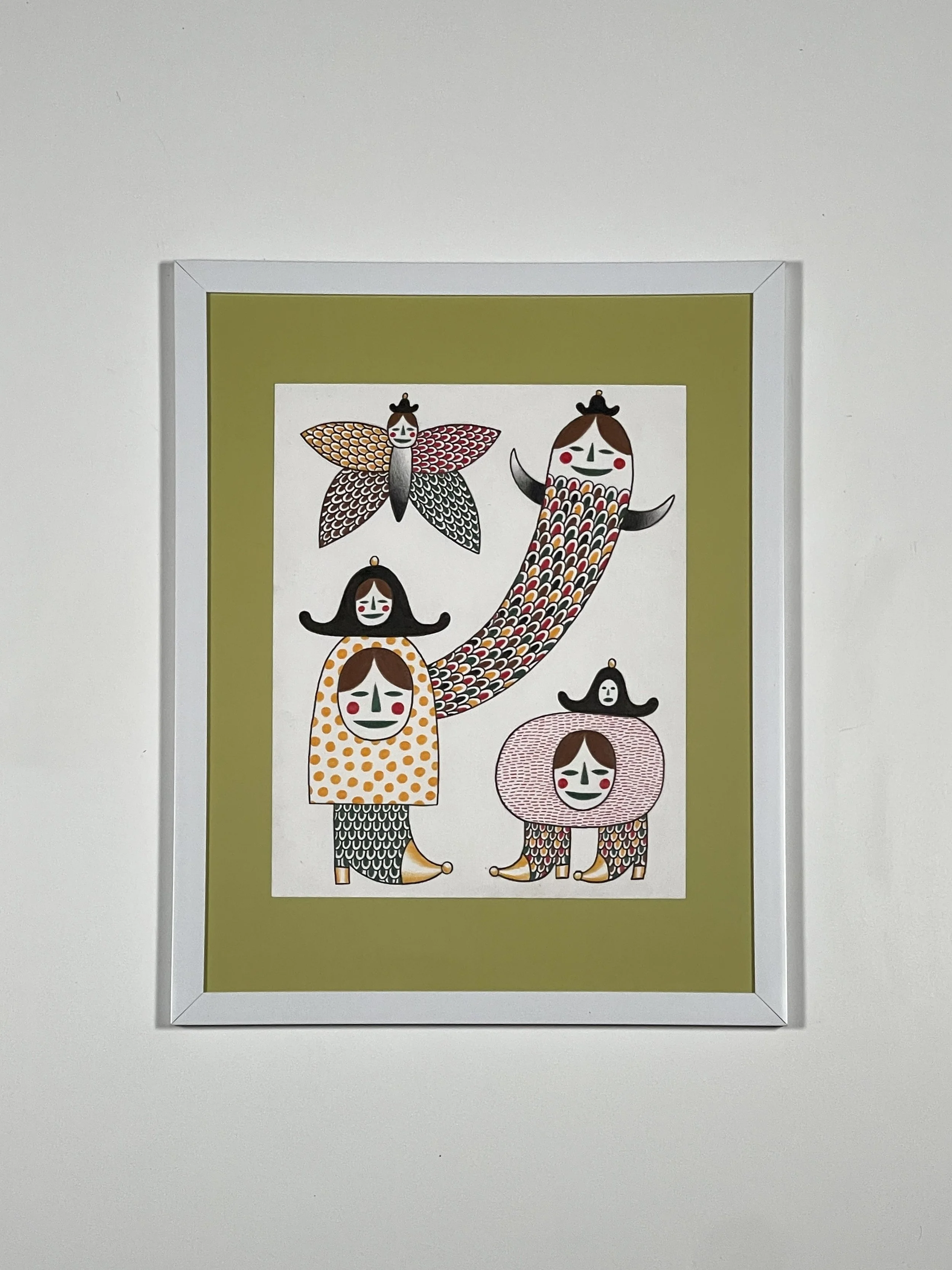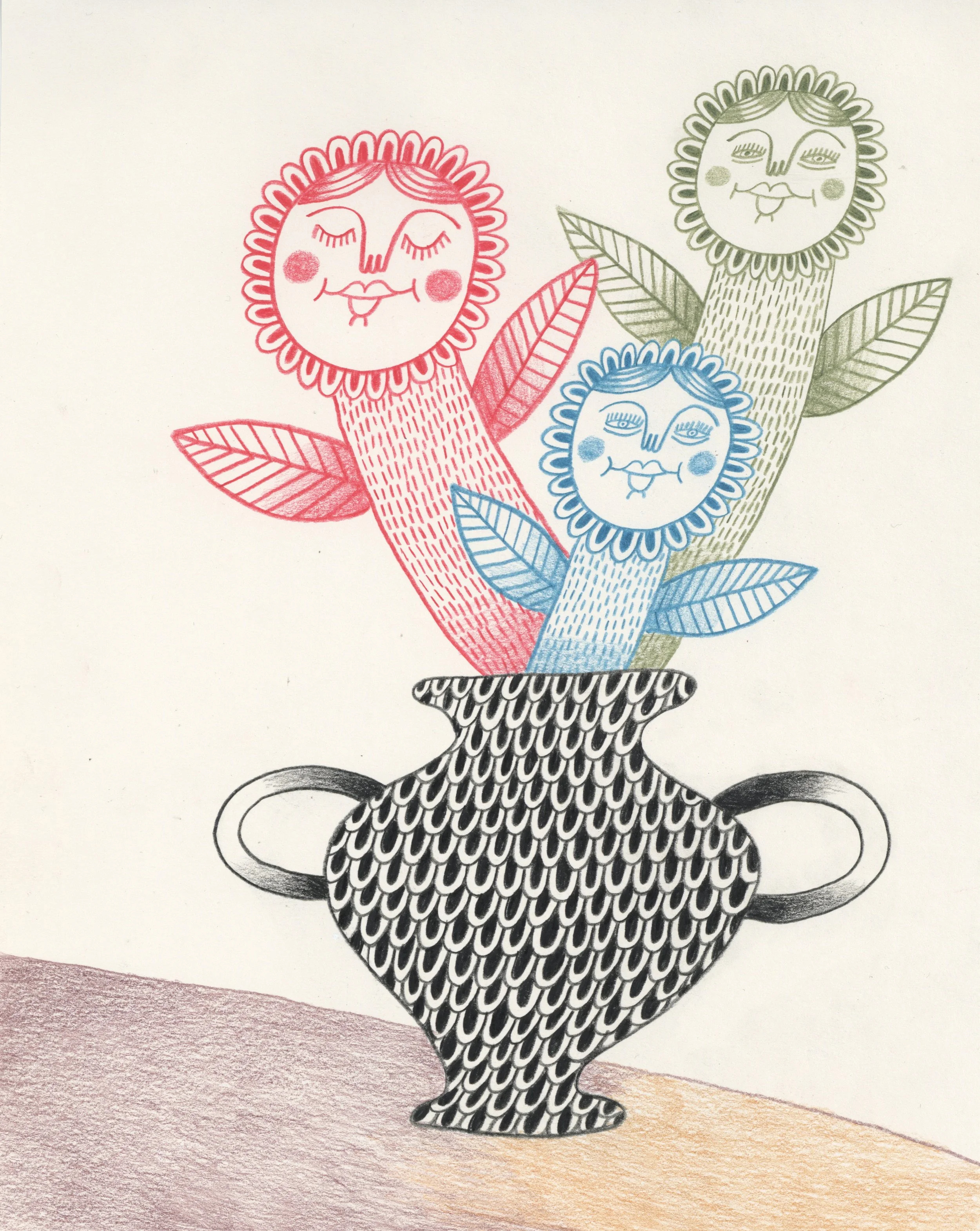 The title of the exhibit, "All The Little Things That Happened In Our Heads," is a testament to the communal effervescence that I feel is infused in the work—almost all of the drawings were created while sitting at the desk at Moth Belly, surrounded by ever-changing exhibits showcasing the thoughts, dreams, and ideas of artists in our community. It also reflects the creative process of making this work— over the past few years, drawing has somewhat taken on the role of journaling for me, giving me a way of both documenting my creative whims and impulses, as well as the happenings in my life and my relationships with people.