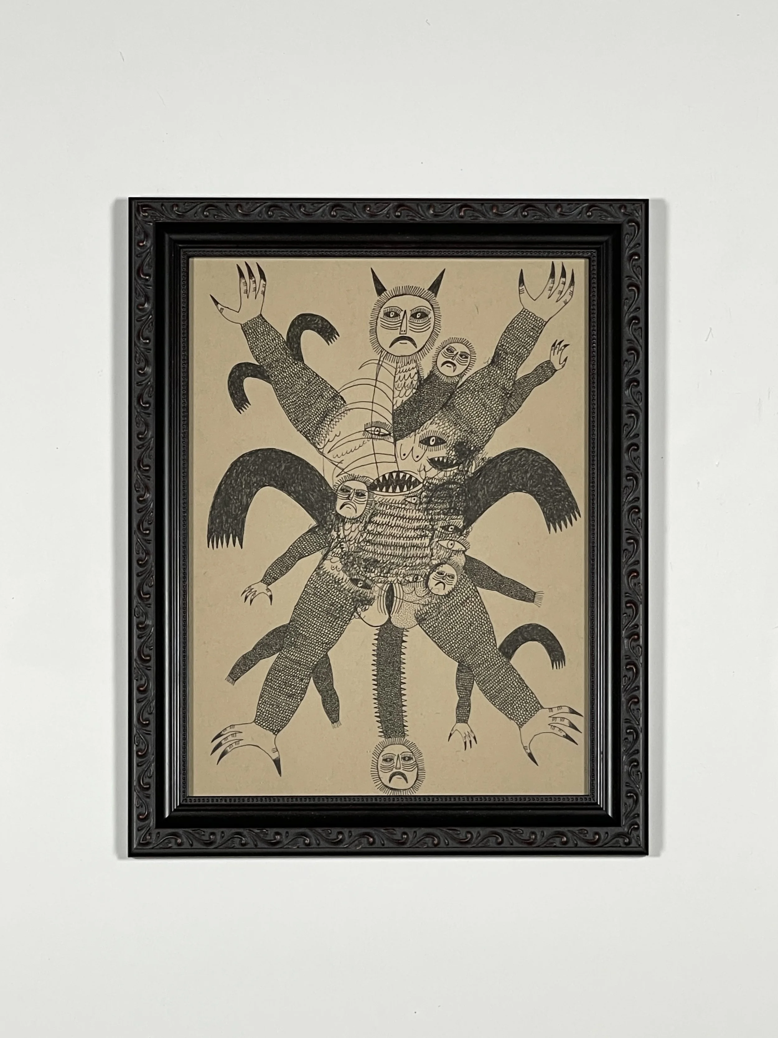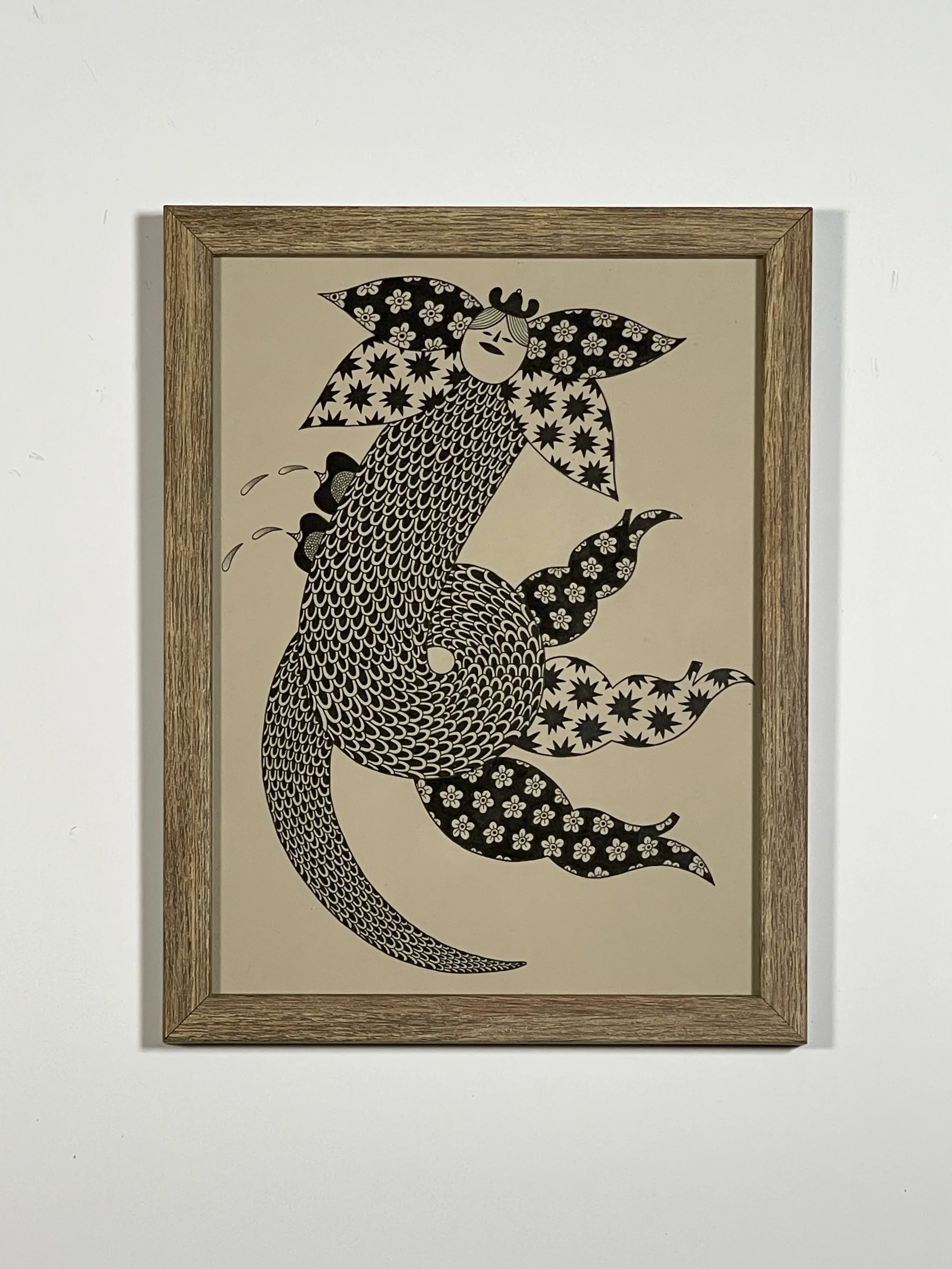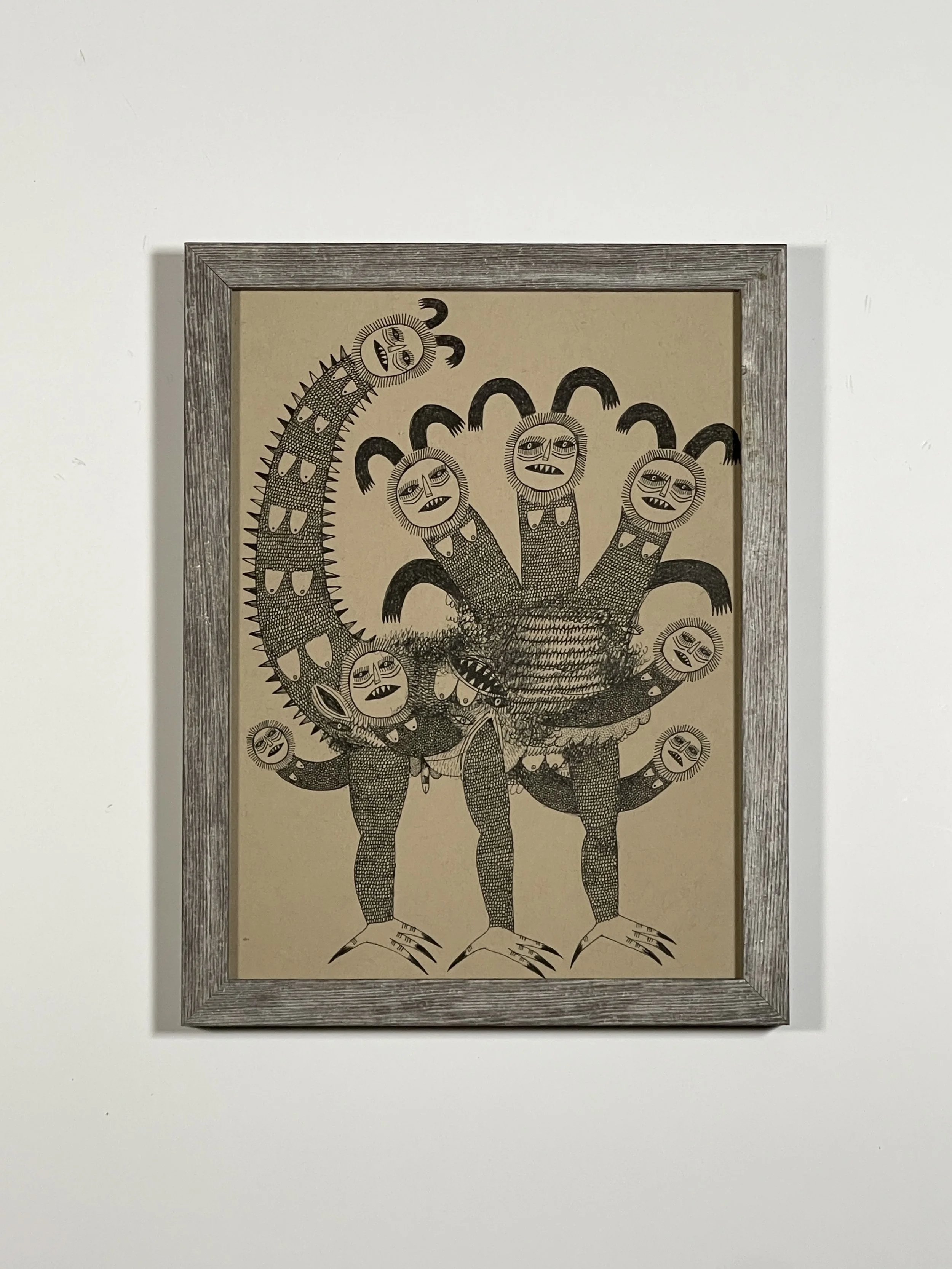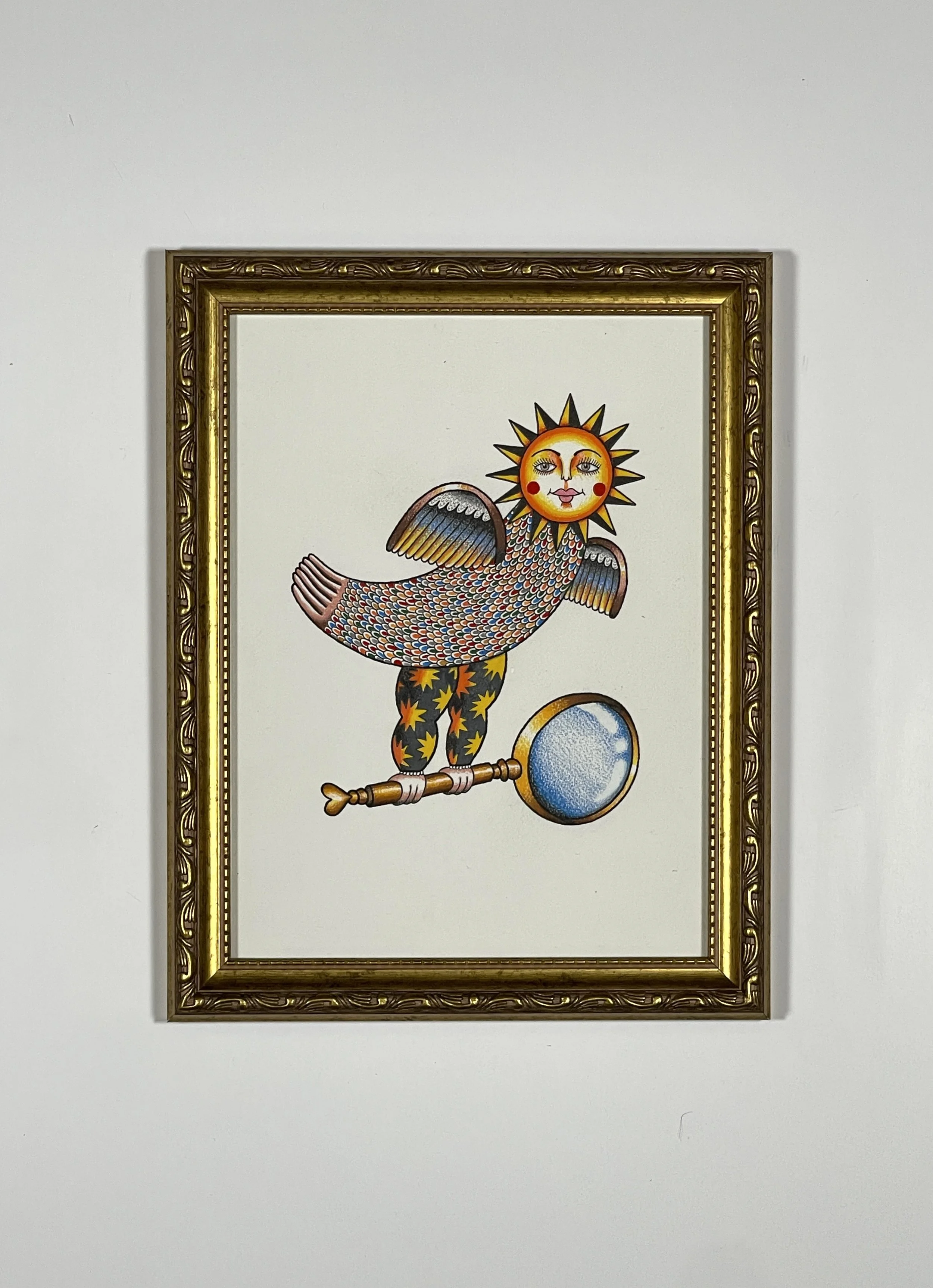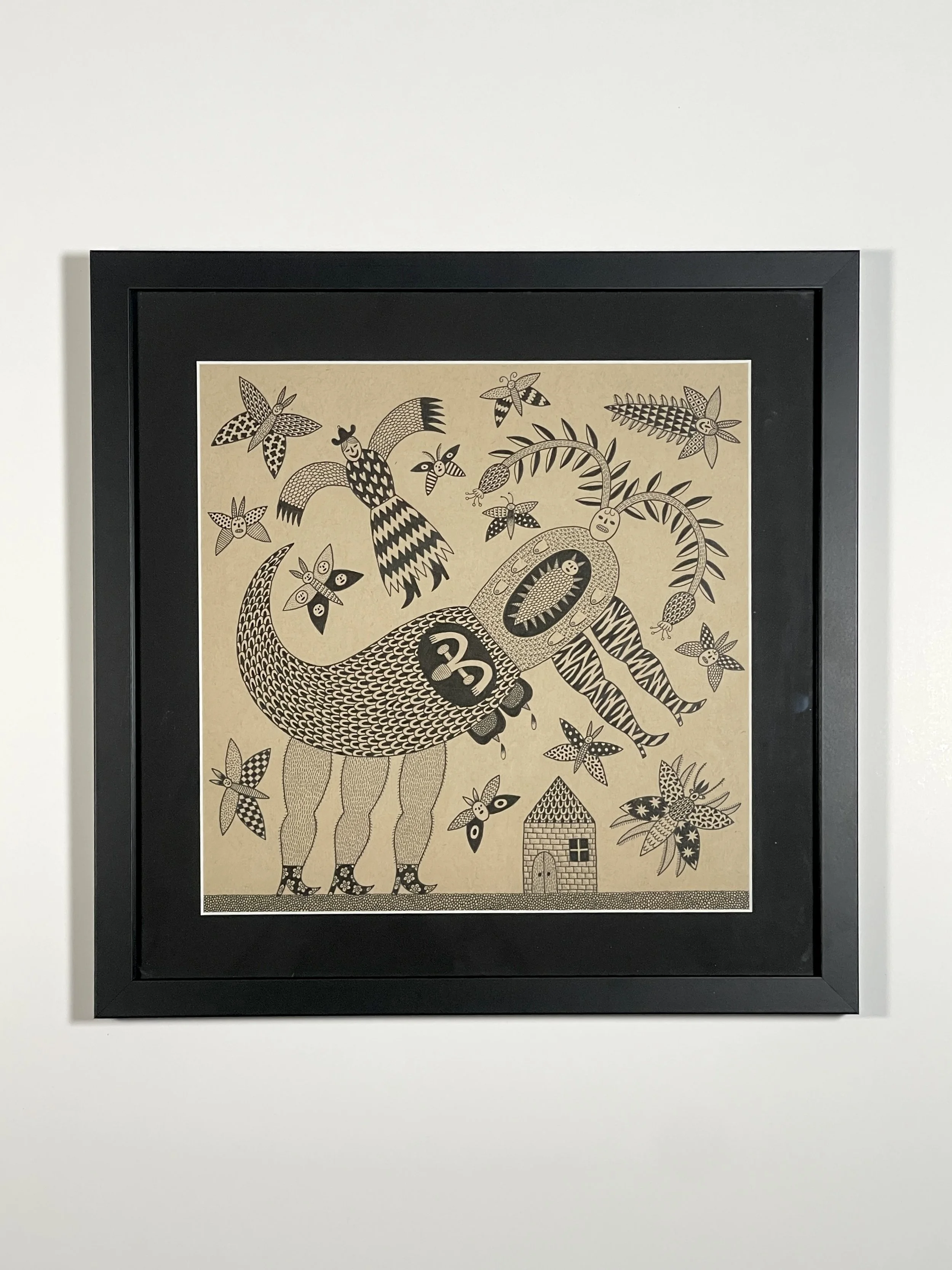 Starting in June 2021, I set aside my X-Acto knife indefinitely and began exploring drawing as my primary artistic medium. Working mostly with micron pens or oil-based colored pencils, the drawings in this collection were done over an almost three year period. They reflect my journey of self-discovery and the resulting creativity as I transformed into a new, different version of myself. The work gravitates between rotating styles, yet draws from a consistent visual language of patterns and motifs, as well as influences from my roots in surrealism, to folk and naive art, to the world of tattooing, which I worked in for three years until the pandemic in 2020.