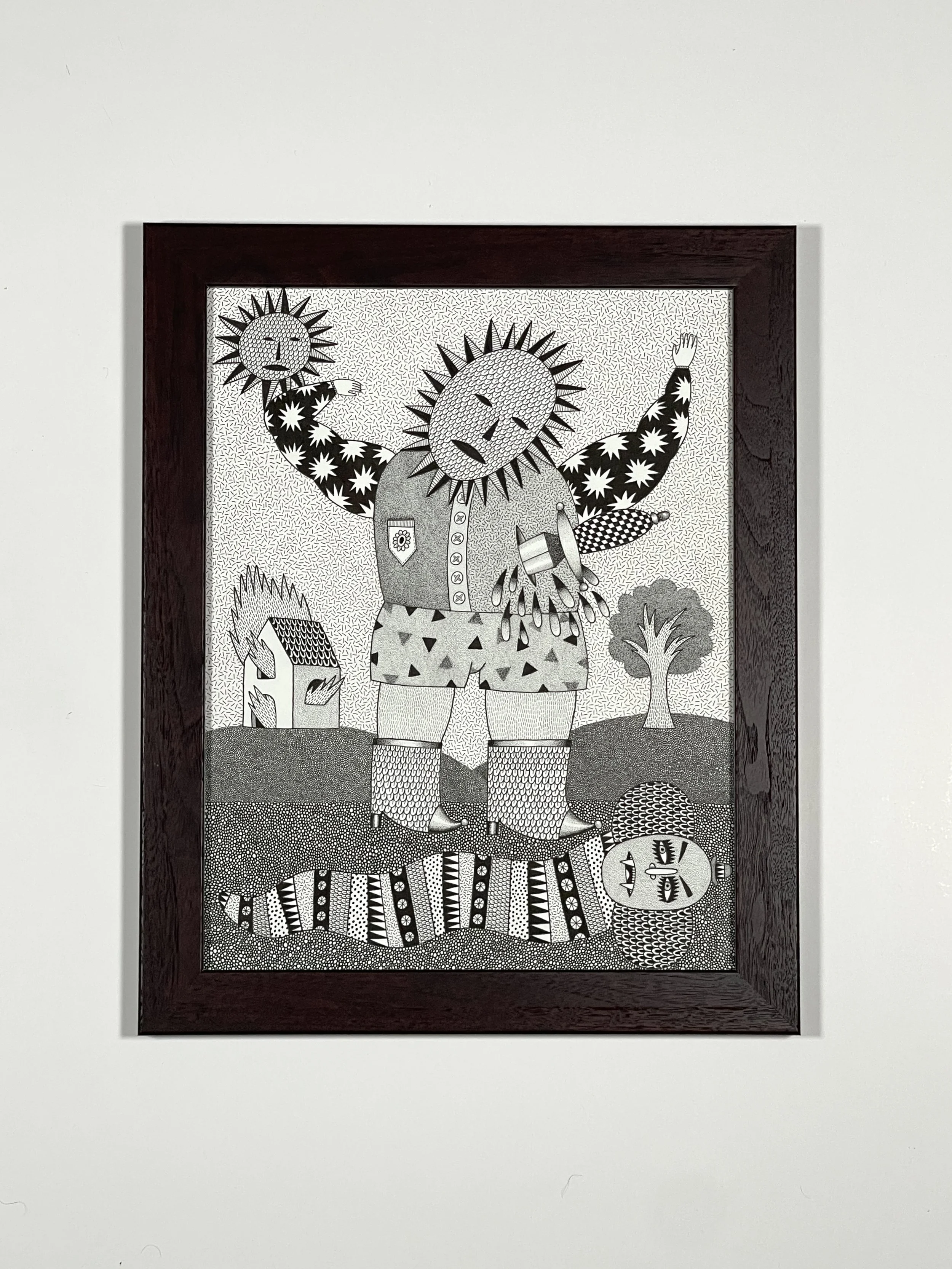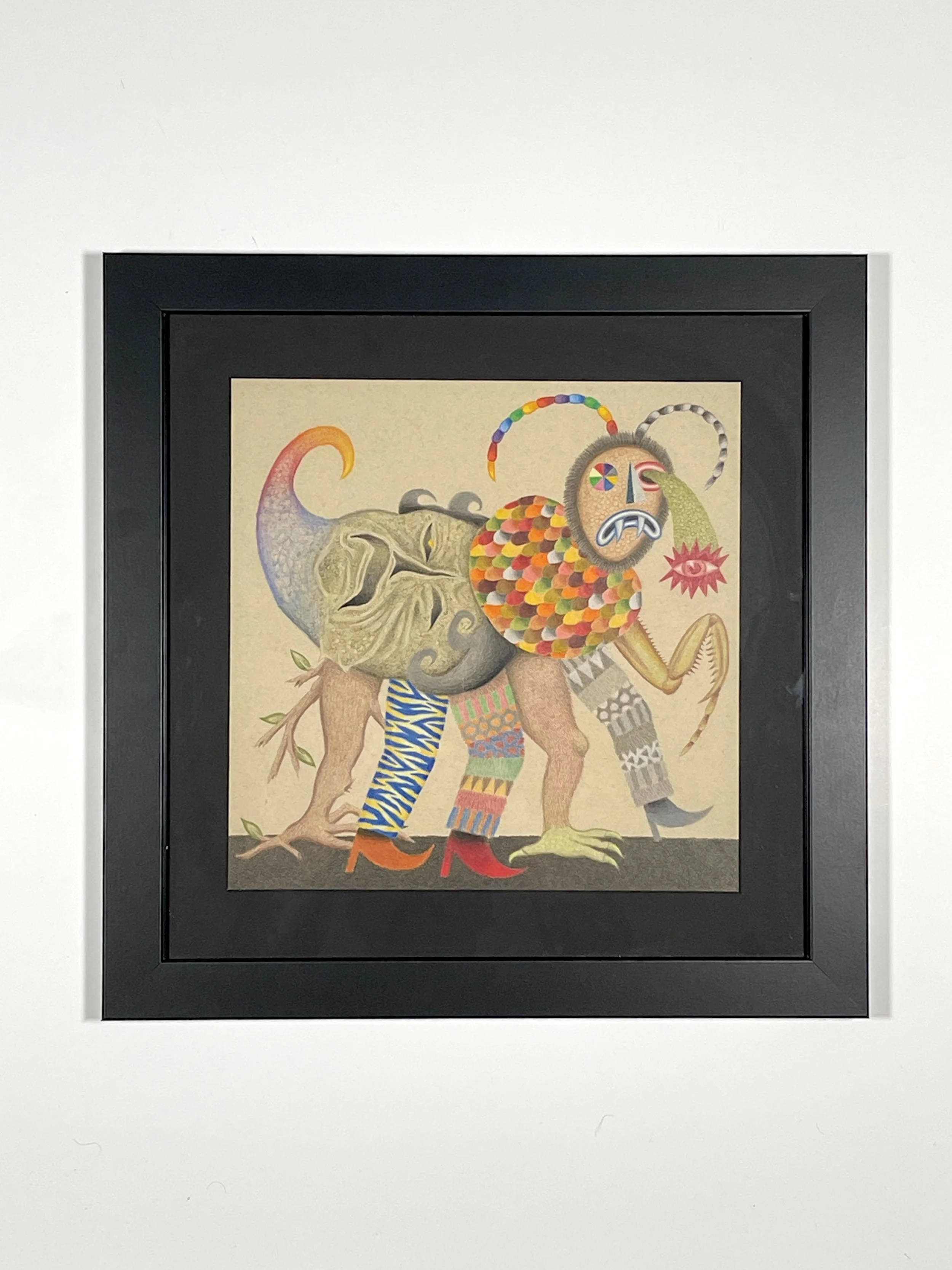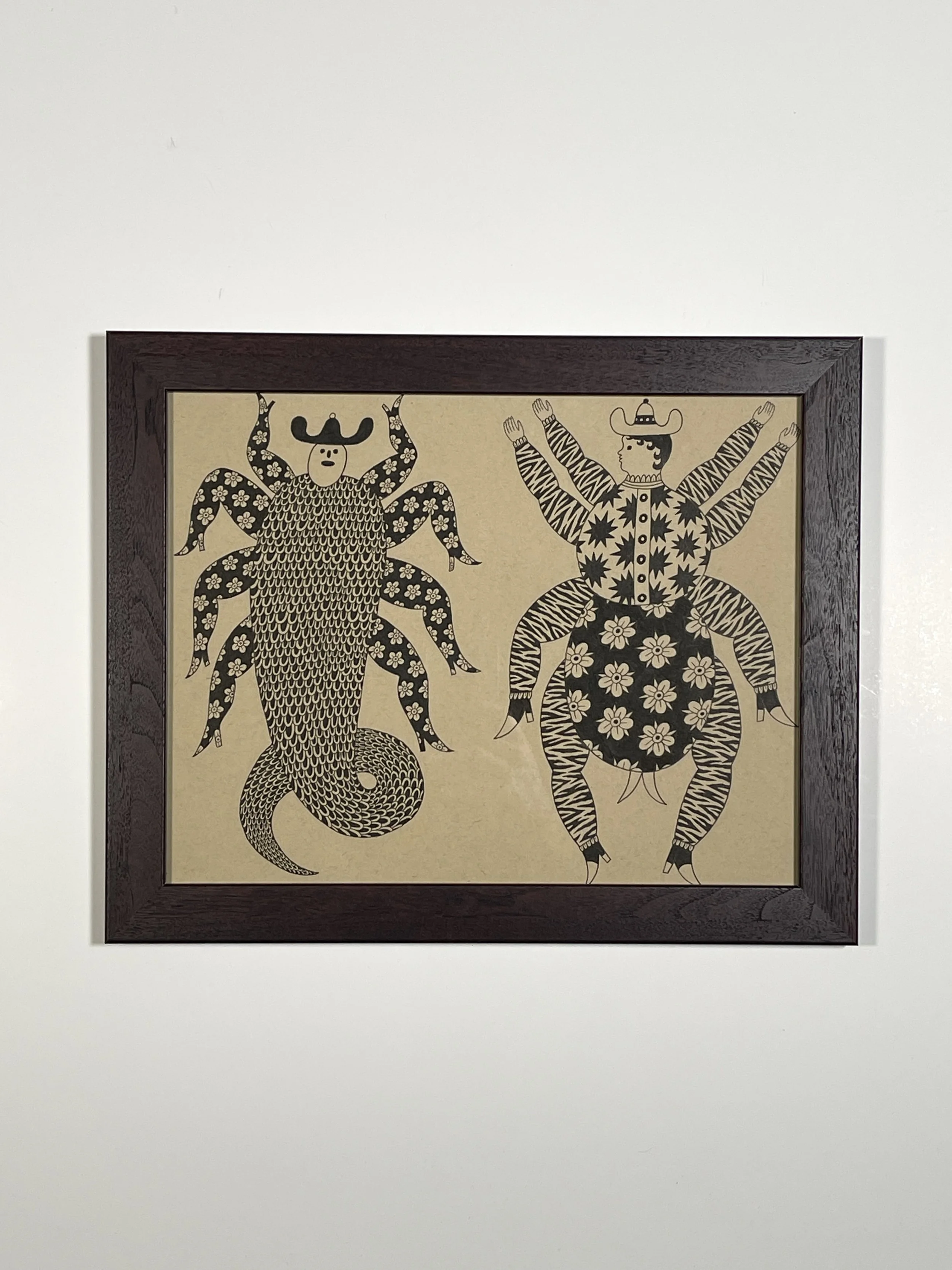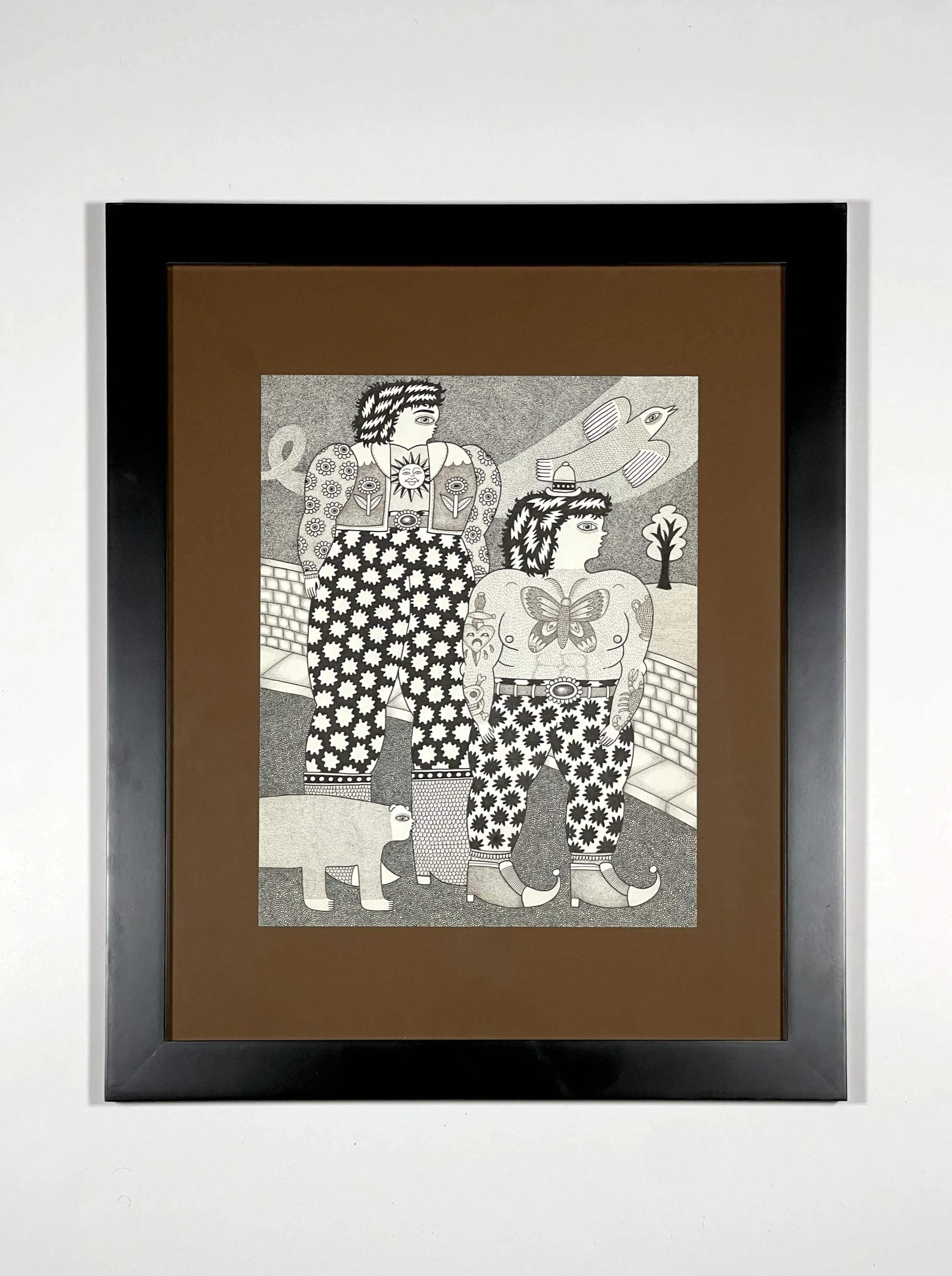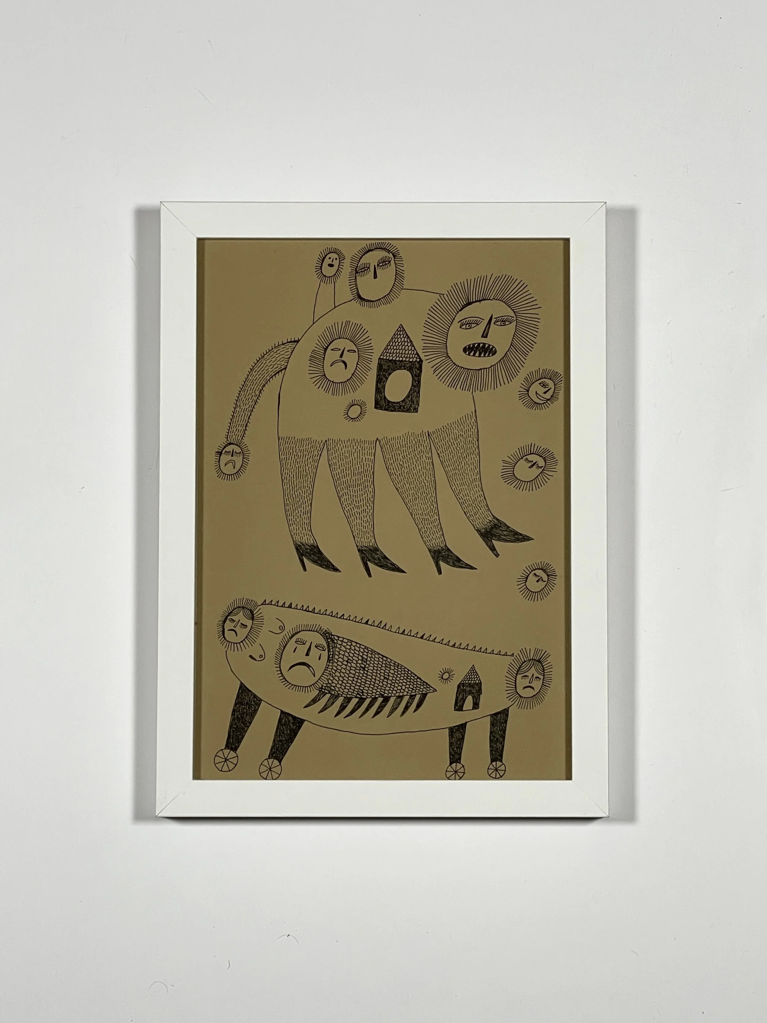 Starting in June 2021, I set aside my X-Acto knife indefinitely and began exploring drawing as my primary artistic medium. Working mostly with micron pens or oil-based colored pencils, the drawings in this collection were done over an almost three year period. They reflect my journey of self-discovery and the resulting creativity as I transformed into a new, different version of myself. The work gravitates between rotating styles, yet draws from a consistent visual language of patterns and motifs, as well as influences from my roots in surrealism, to folk and naive art, to the world of tattooing, which I worked in for three years until the pandemic in 2020.