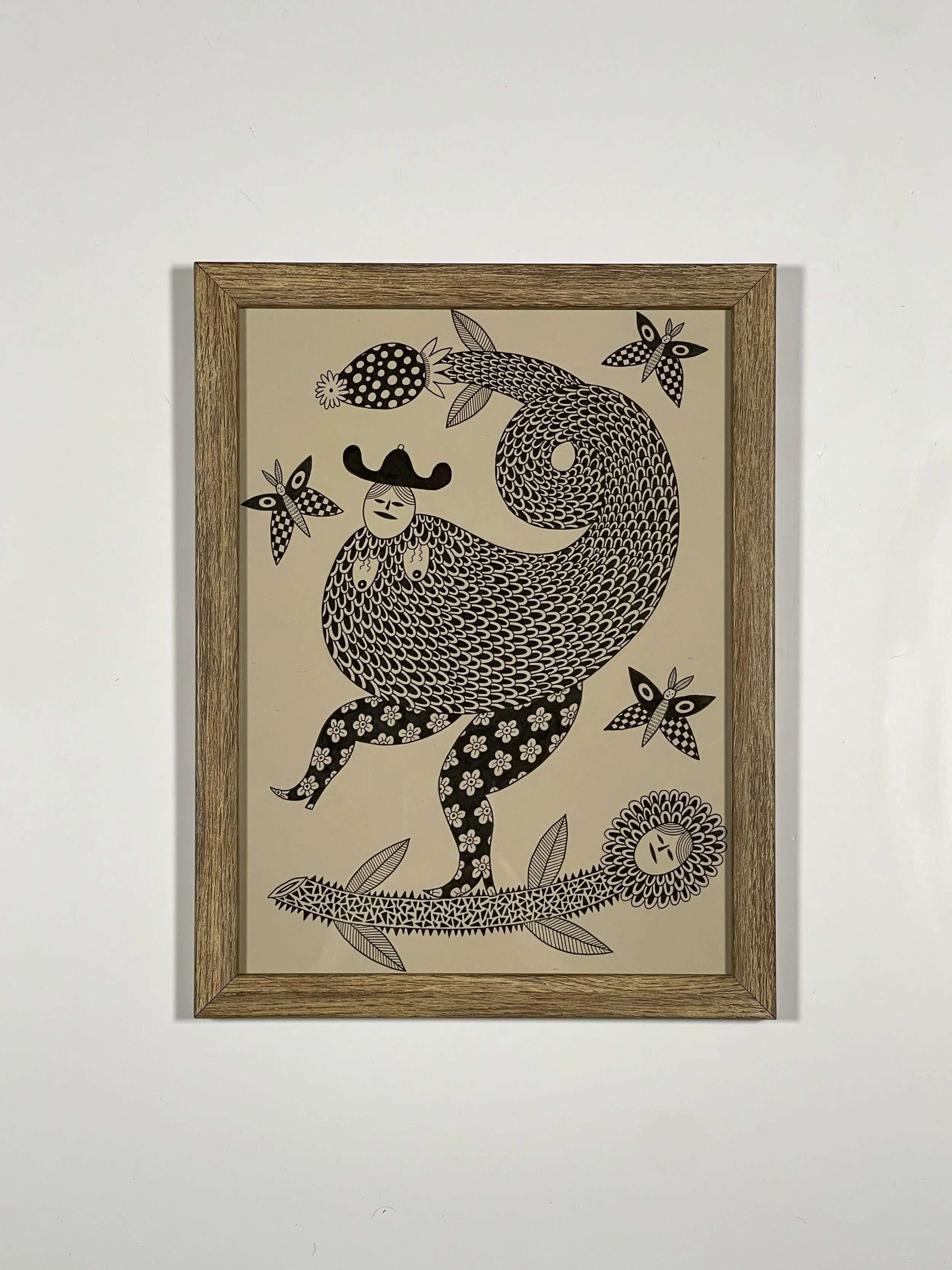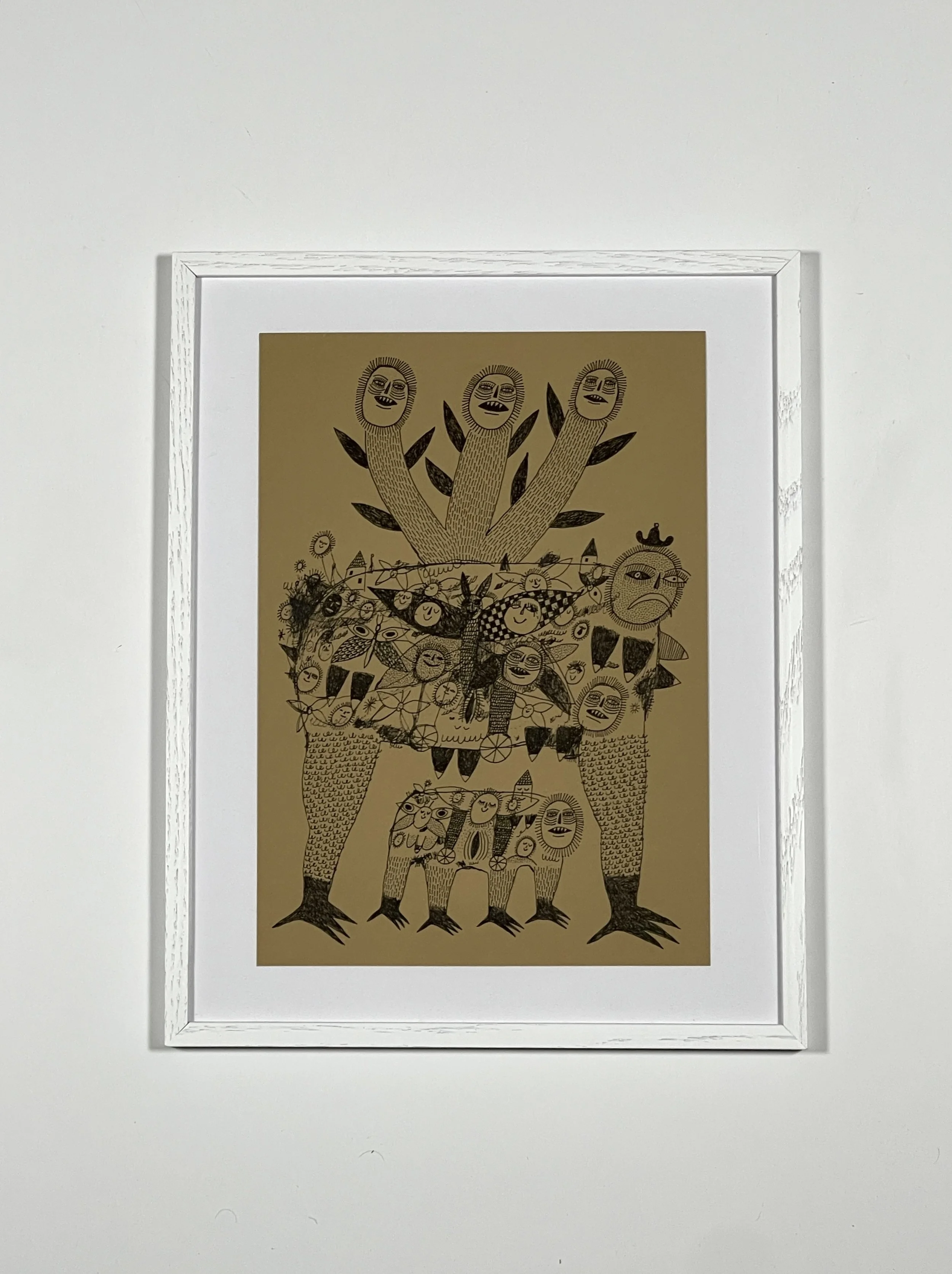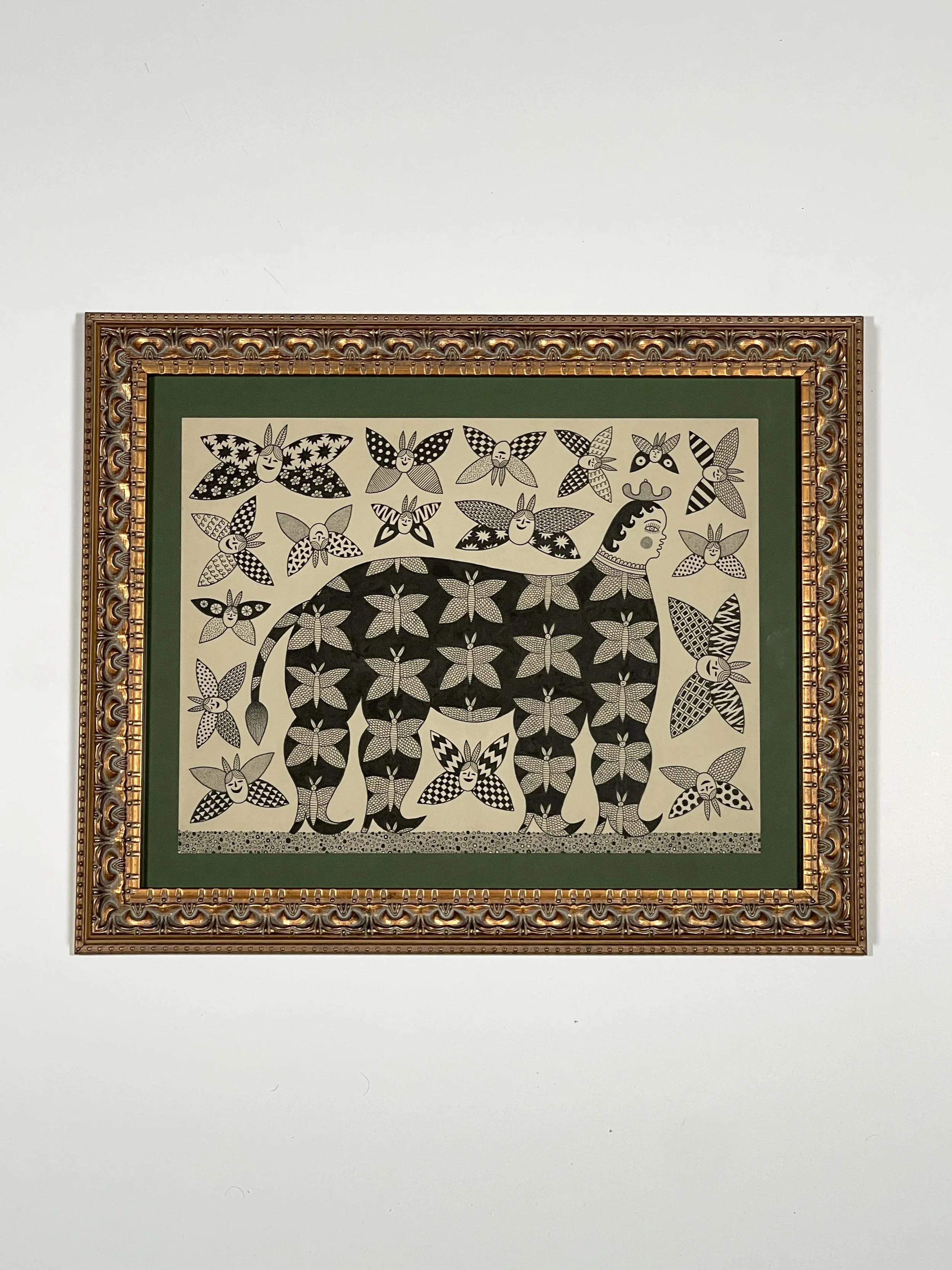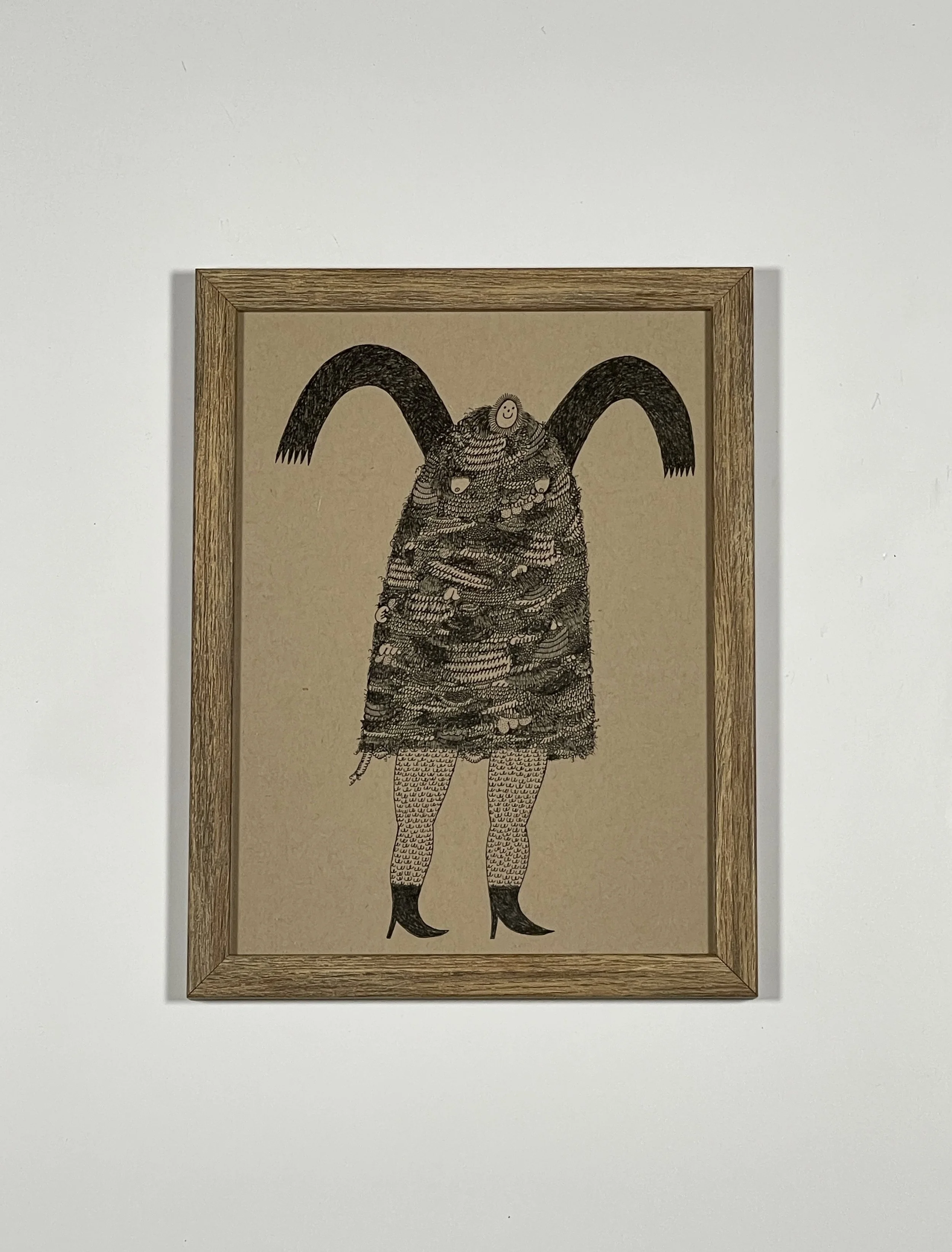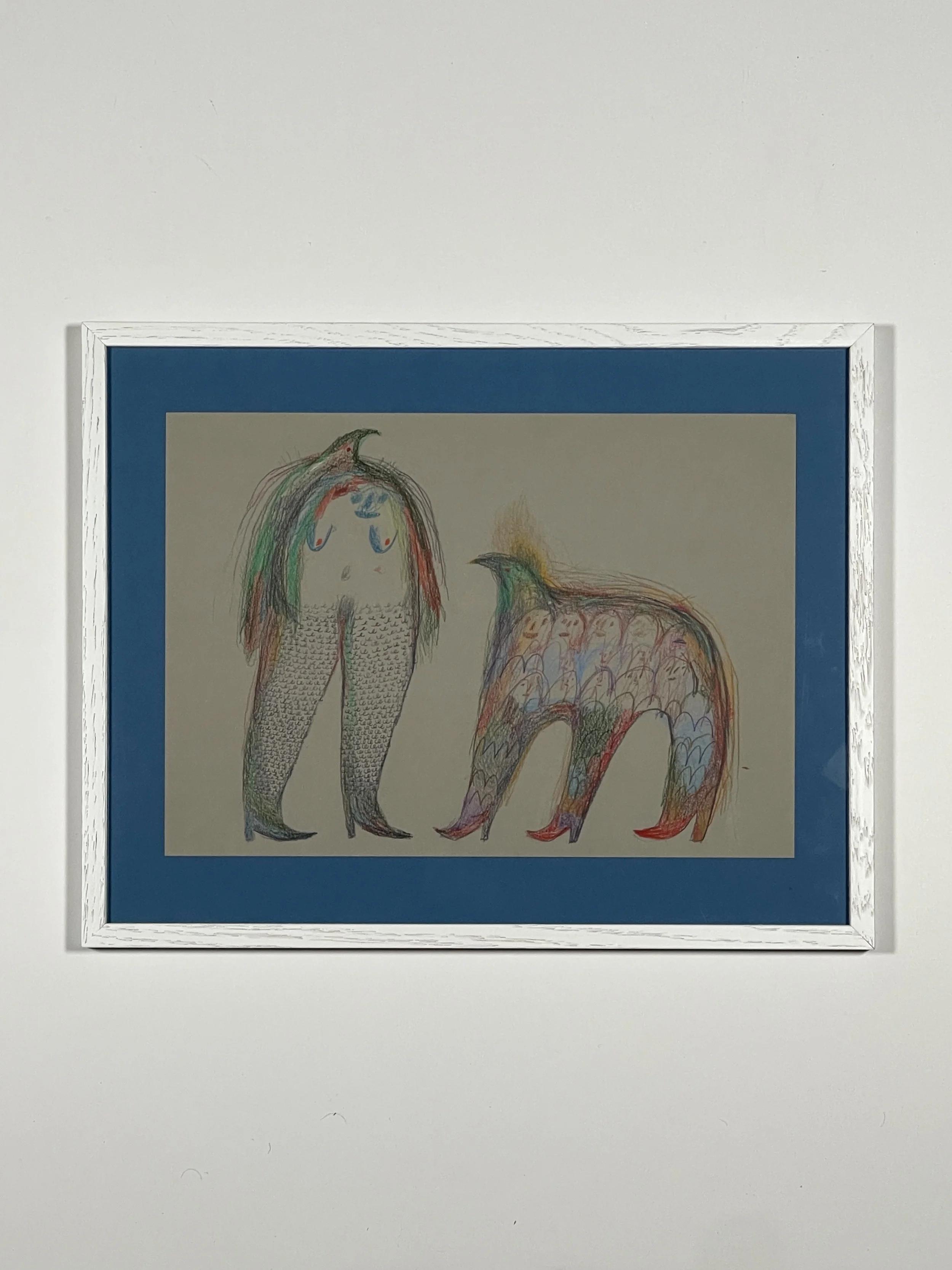 Starting in June 2021, I set aside my X-Acto knife indefinitely and began exploring drawing as my primary artistic medium. Working mostly with micron pens or oil-based colored pencils, the drawings in this collection were done over an almost three year period. They reflect my journey of self-discovery and the resulting creativity as I transformed into a new, different version of myself. The work gravitates between rotating styles, yet draws from a consistent visual language of patterns and motifs, as well as influences from my roots in surrealism, to folk and naive art, to the world of tattooing, which I worked in for three years until the pandemic in 2020.
