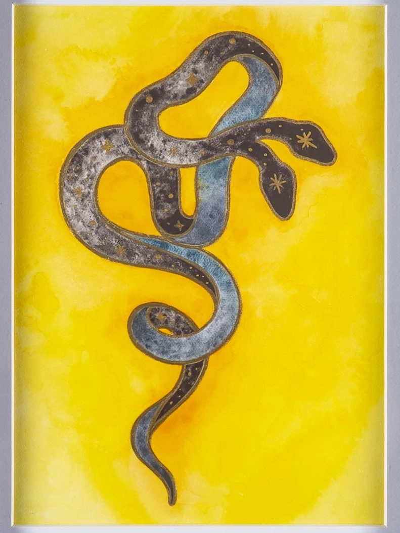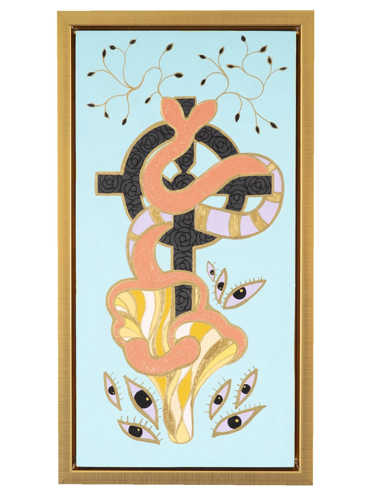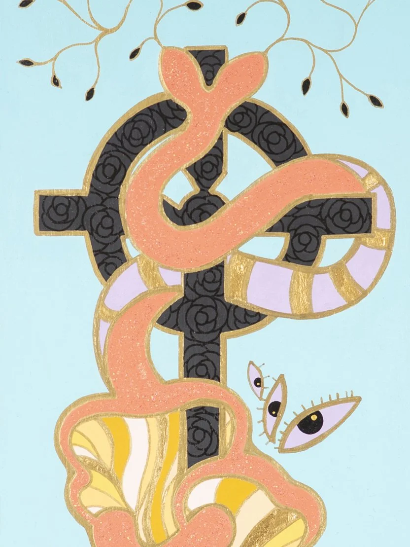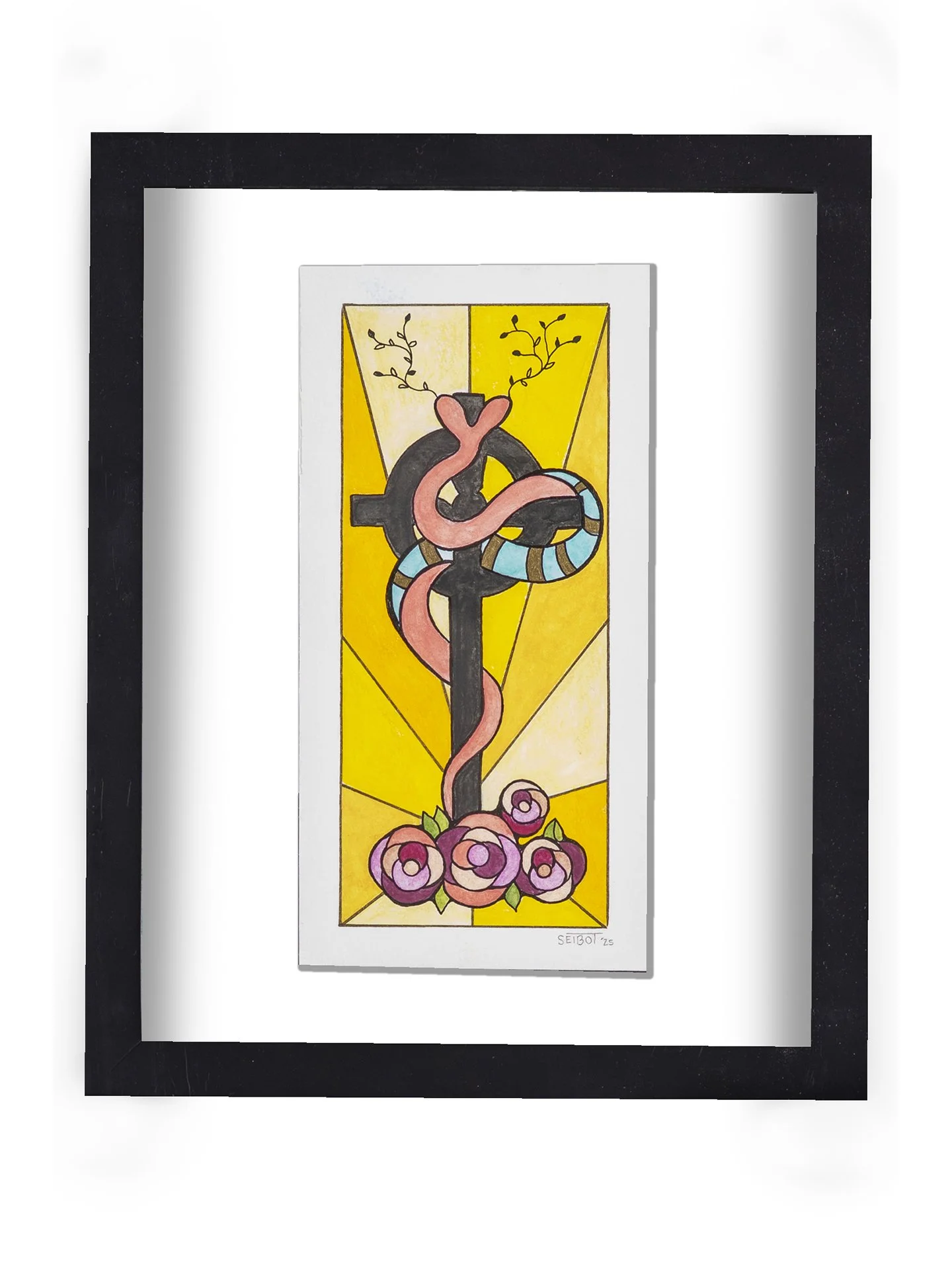 Each piece is a prayer, a process, a portrait of survival. Expect serpents, stars, sacred hearts, keys, and flames. Heavy themes, wrapped in radiant color.