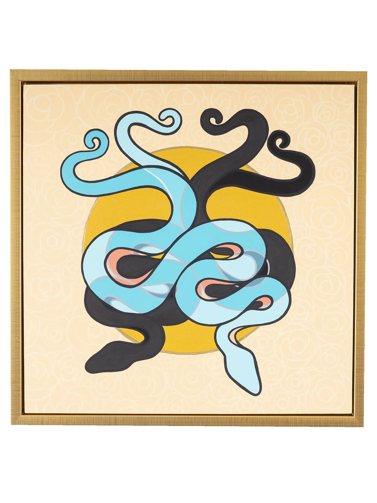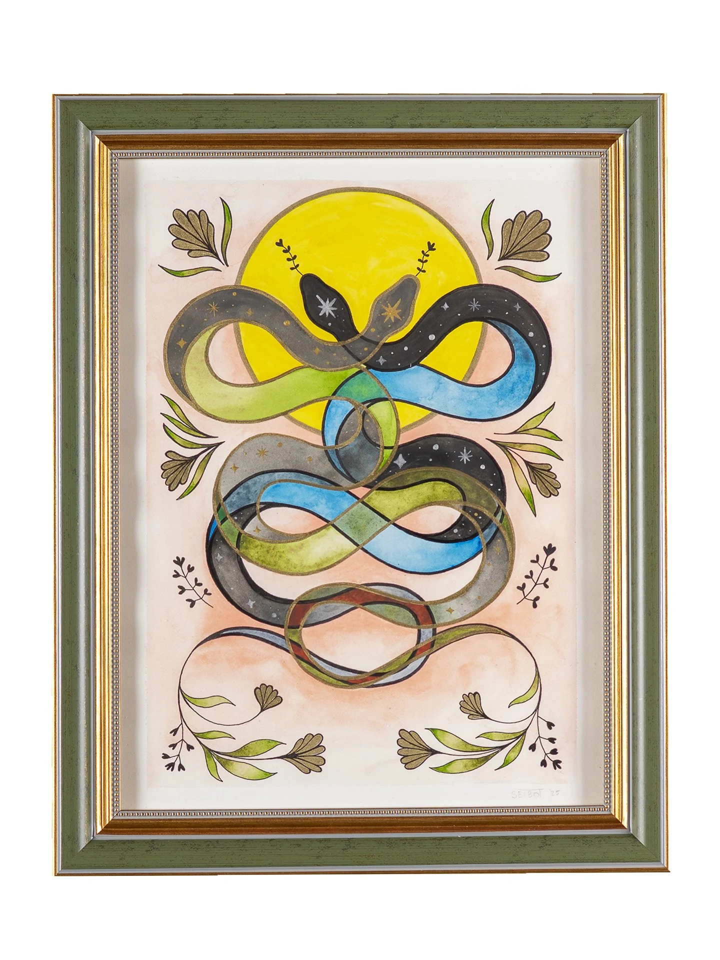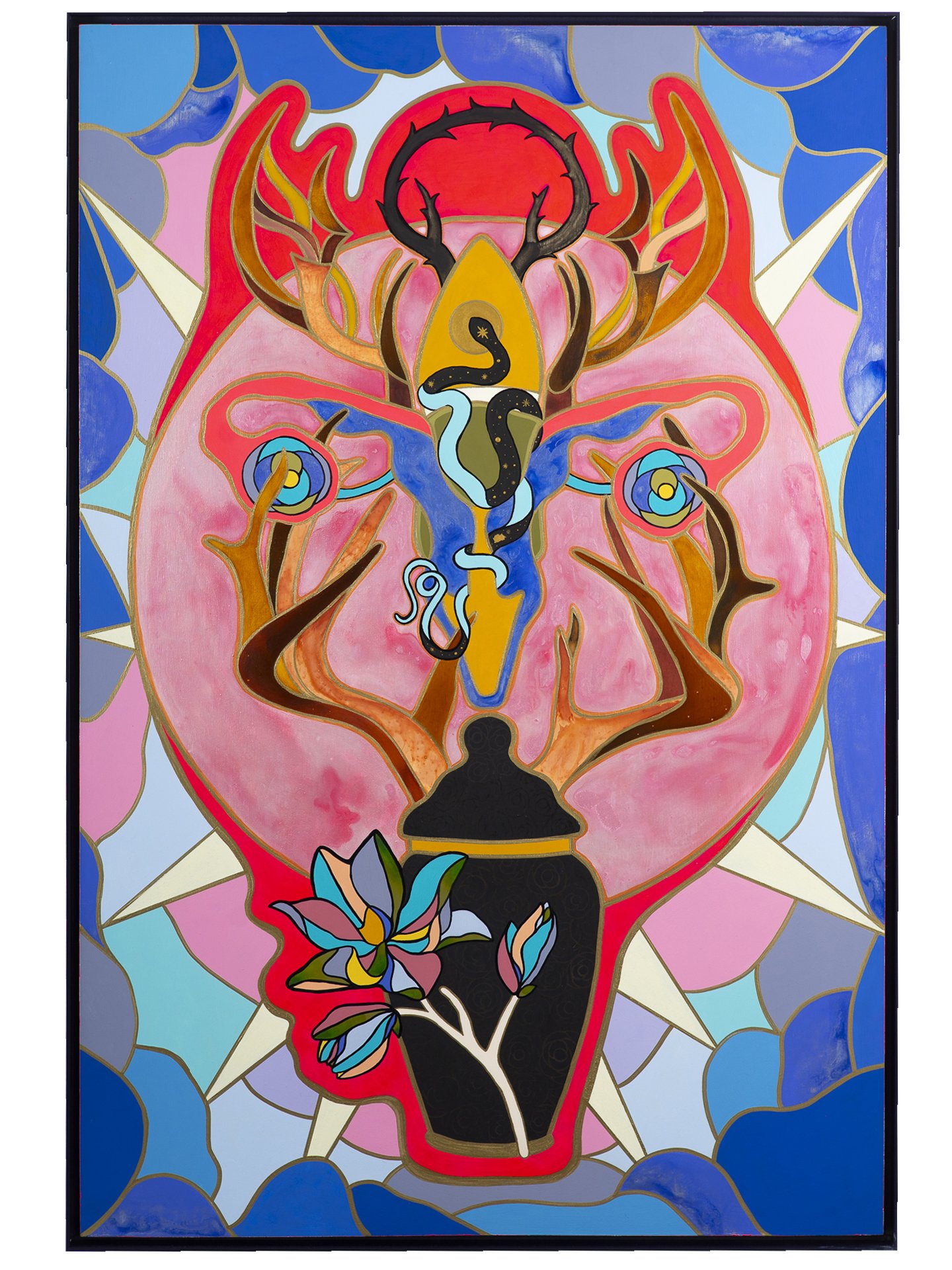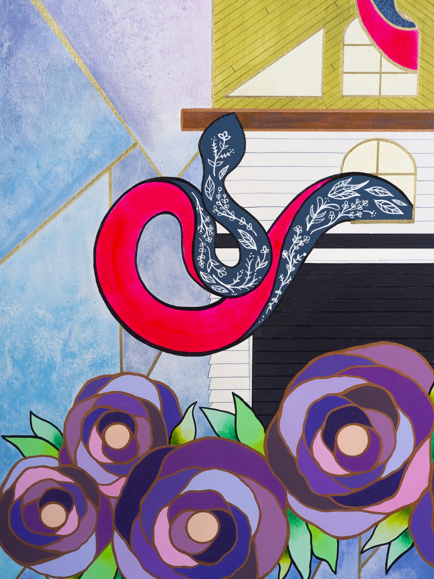 Each piece is a prayer, a process, a portrait of survival. Expect serpents, stars, sacred hearts, keys, and flames. Heavy themes, wrapped in radiant color.