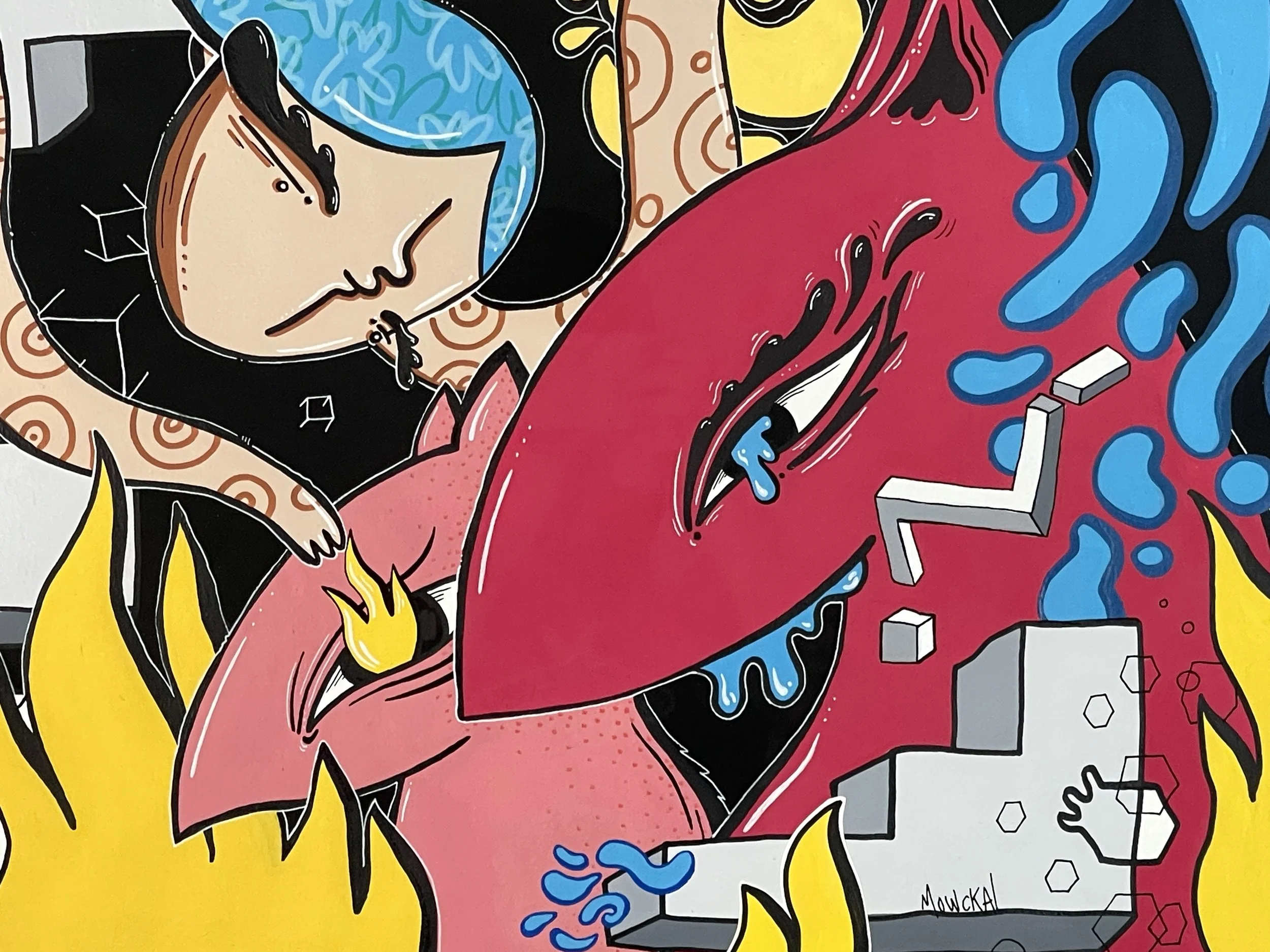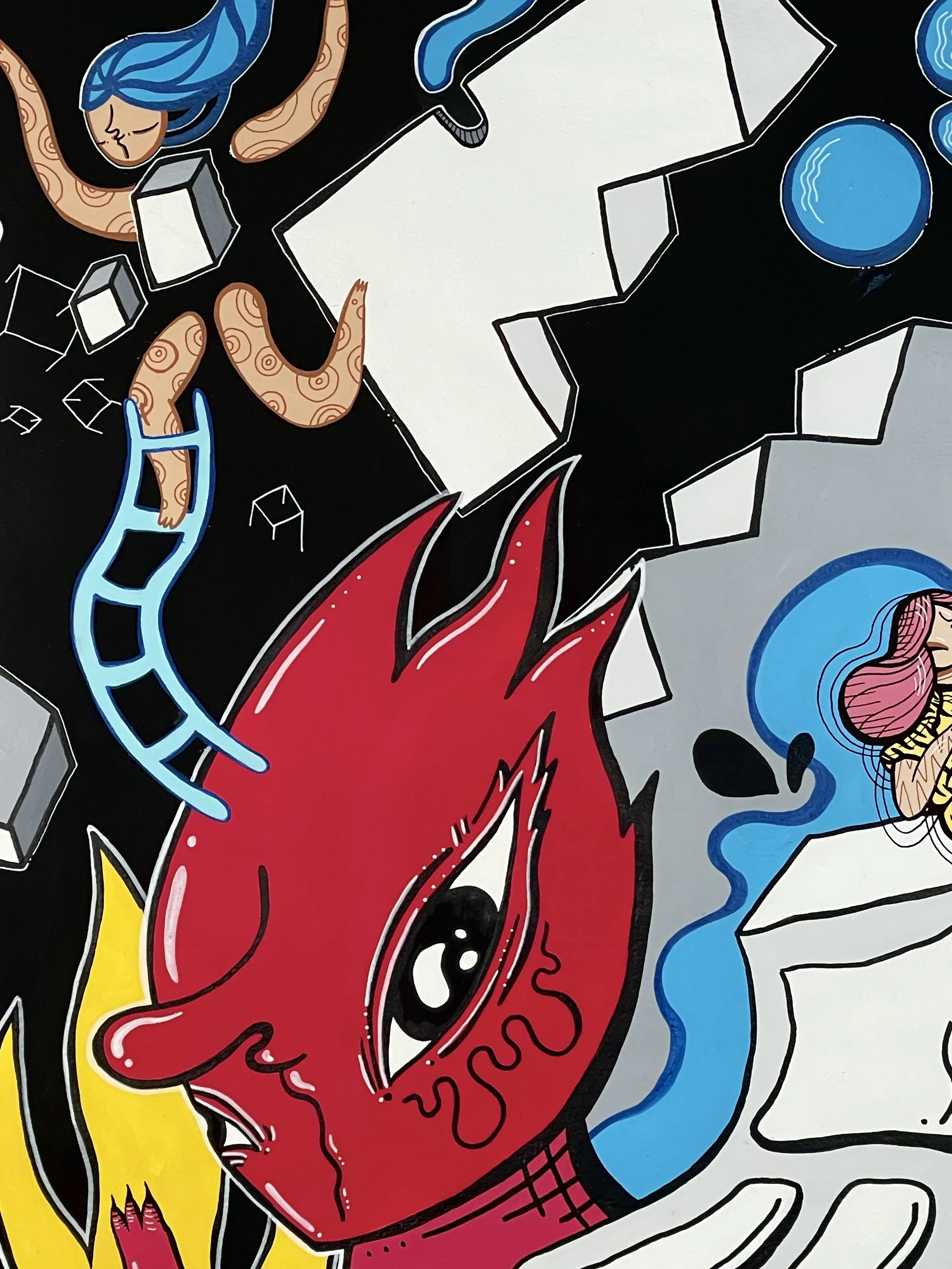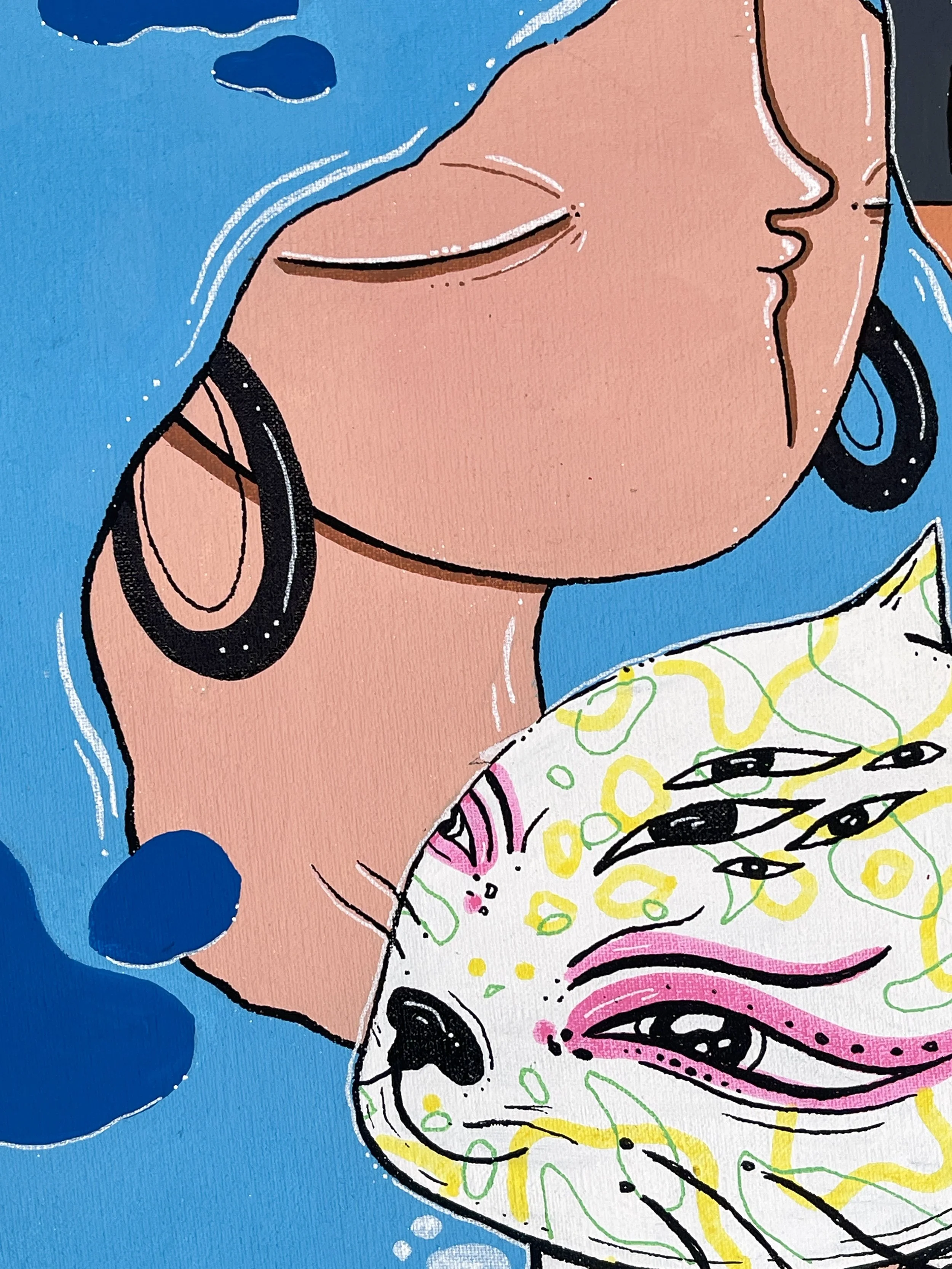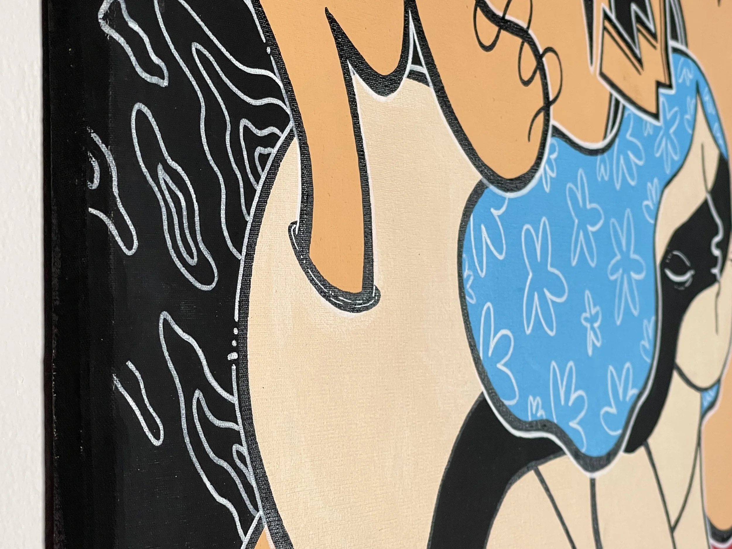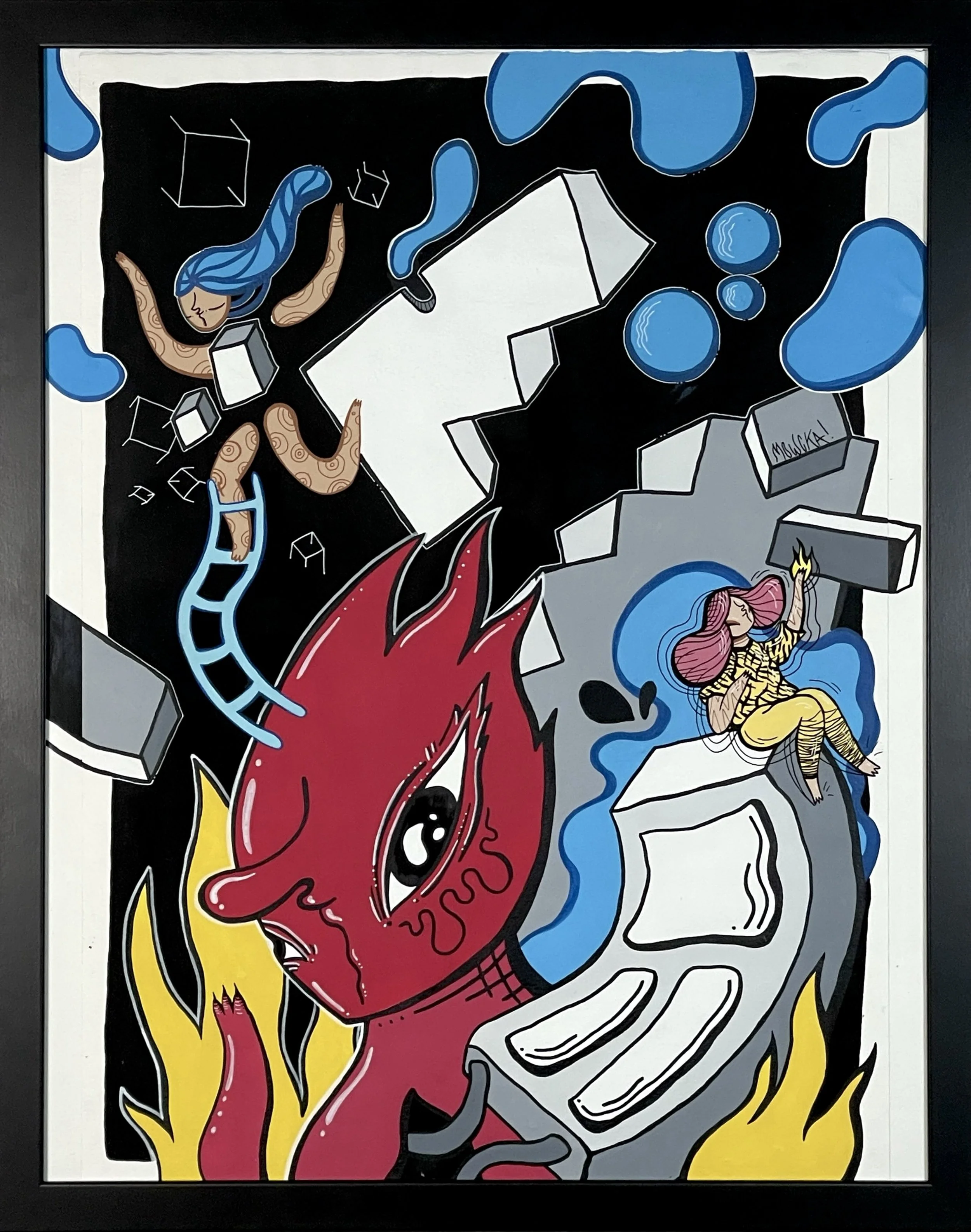 “Merging Pathways” brings the artwork of our dear friend and prolific international street artist Mowcka here to San Francisco, via our friends and neighbors Mini Mart Gallery who leant us their space to organize this exhibition. Born in Argentina, but living between Barcelona and London for the past 13 years, Mowcka has steadily established herself as one of the most prominent street artists in Western Europe and the UK. Now, after 4 months of travel in Argentina and Mexico, she has concluded her journey here with us in California with a new body of work featuring several new pieces made over the course of two continents, and some of which were finished or created entirely here at Moth Belly Gallery in the days preceding the opening. The work explores the importance of dreams, the inevitability of fate, and lastly the artist’s ongoing conflict between being a metropolitan artist yet constantly yearning for a return to nature and the natural world.