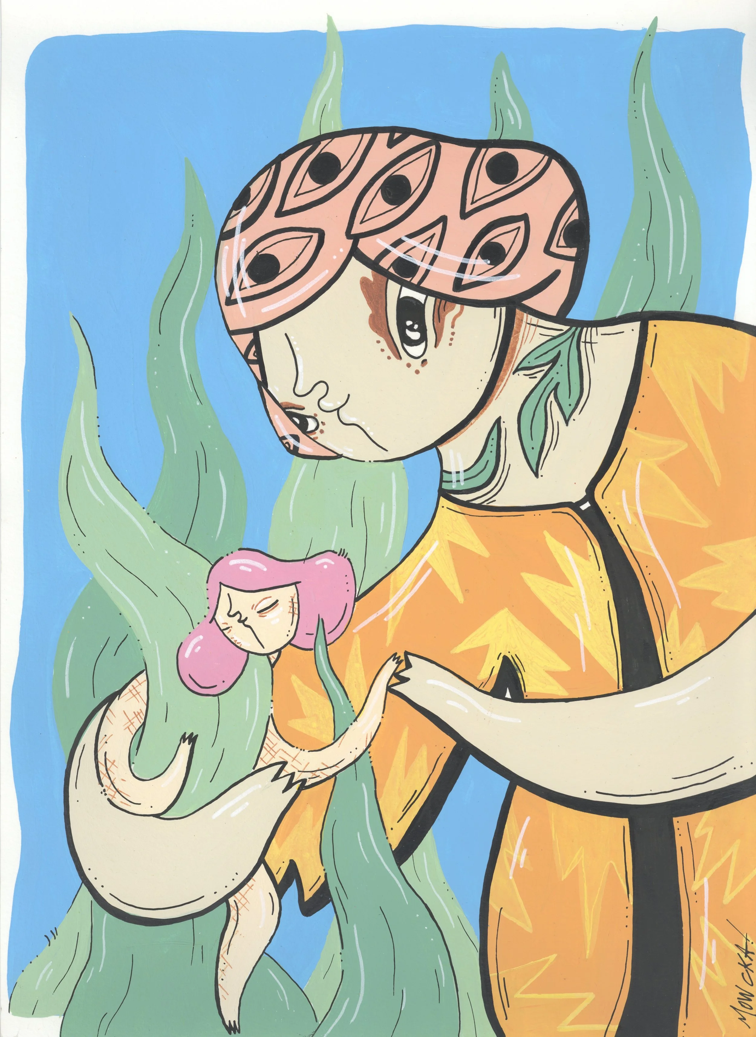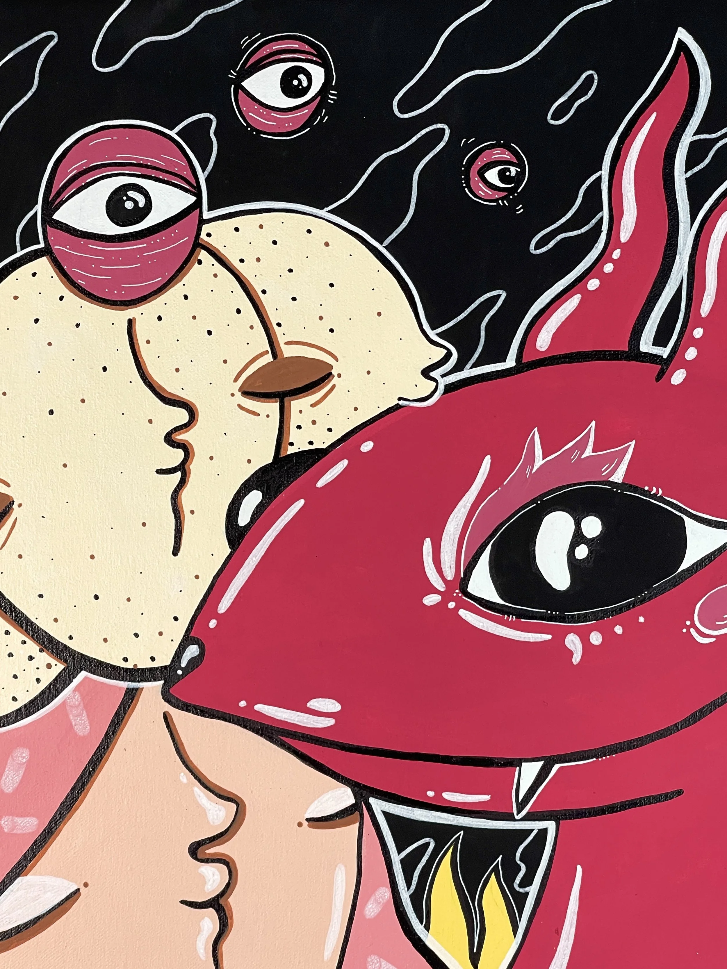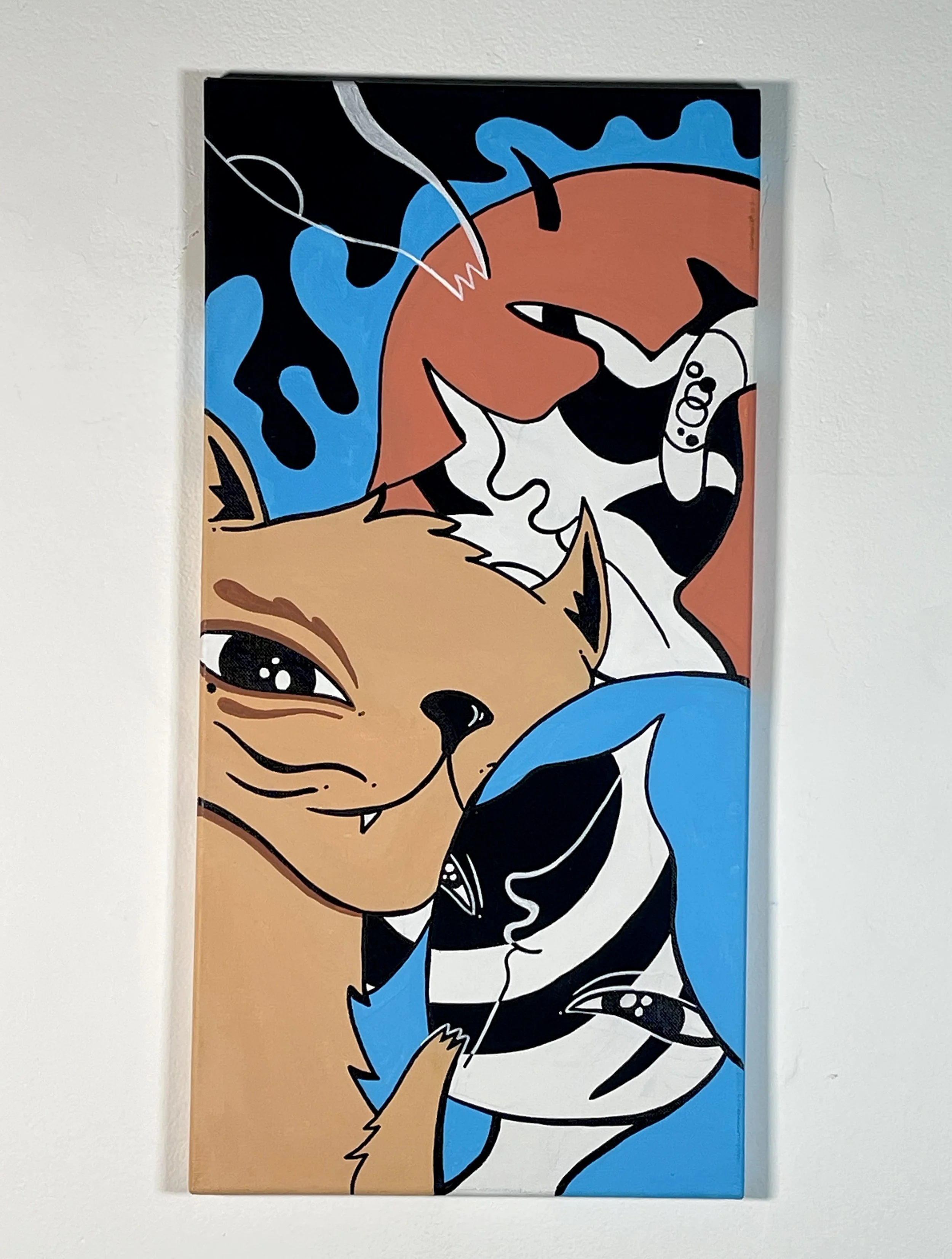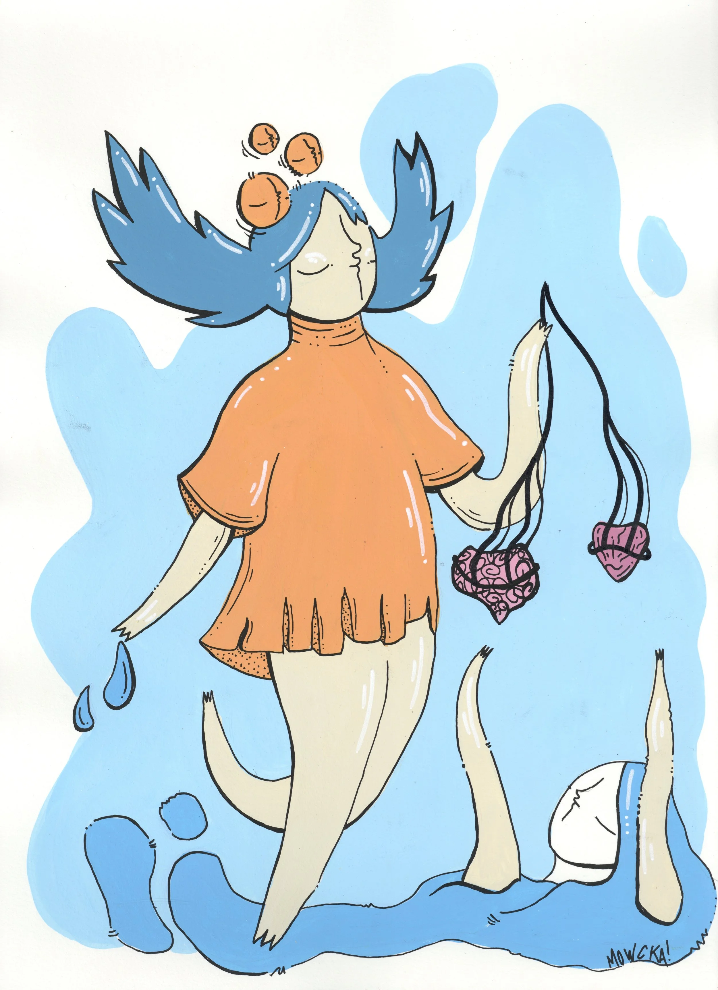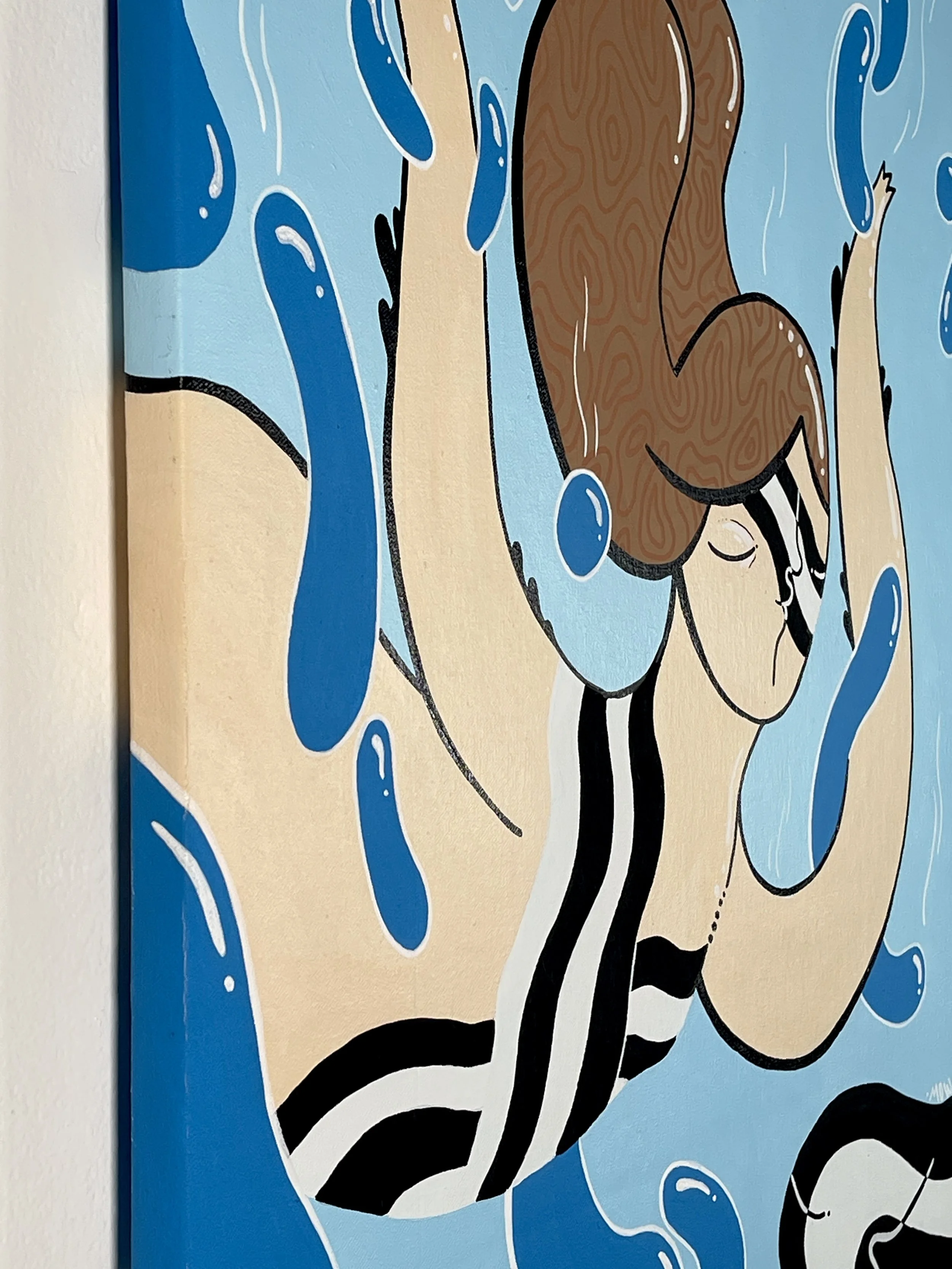 “Merging Pathways” brings the artwork of our dear friend and prolific international street artist Mowcka here to San Francisco, via our friends and neighbors Mini Mart Gallery who leant us their space to organize this exhibition. Born in Argentina, but living between Barcelona and London for the past 13 years, Mowcka has steadily established herself as one of the most prominent street artists in Western Europe and the UK. Now, after 4 months of travel in Argentina and Mexico, she has concluded her journey here with us in California with a new body of work featuring several new pieces made over the course of two continents, and some of which were finished or created entirely here at Moth Belly Gallery in the days preceding the opening. The work explores the importance of dreams, the inevitability of fate, and lastly the artist’s ongoing conflict between being a metropolitan artist yet constantly yearning for a return to nature and the natural world.