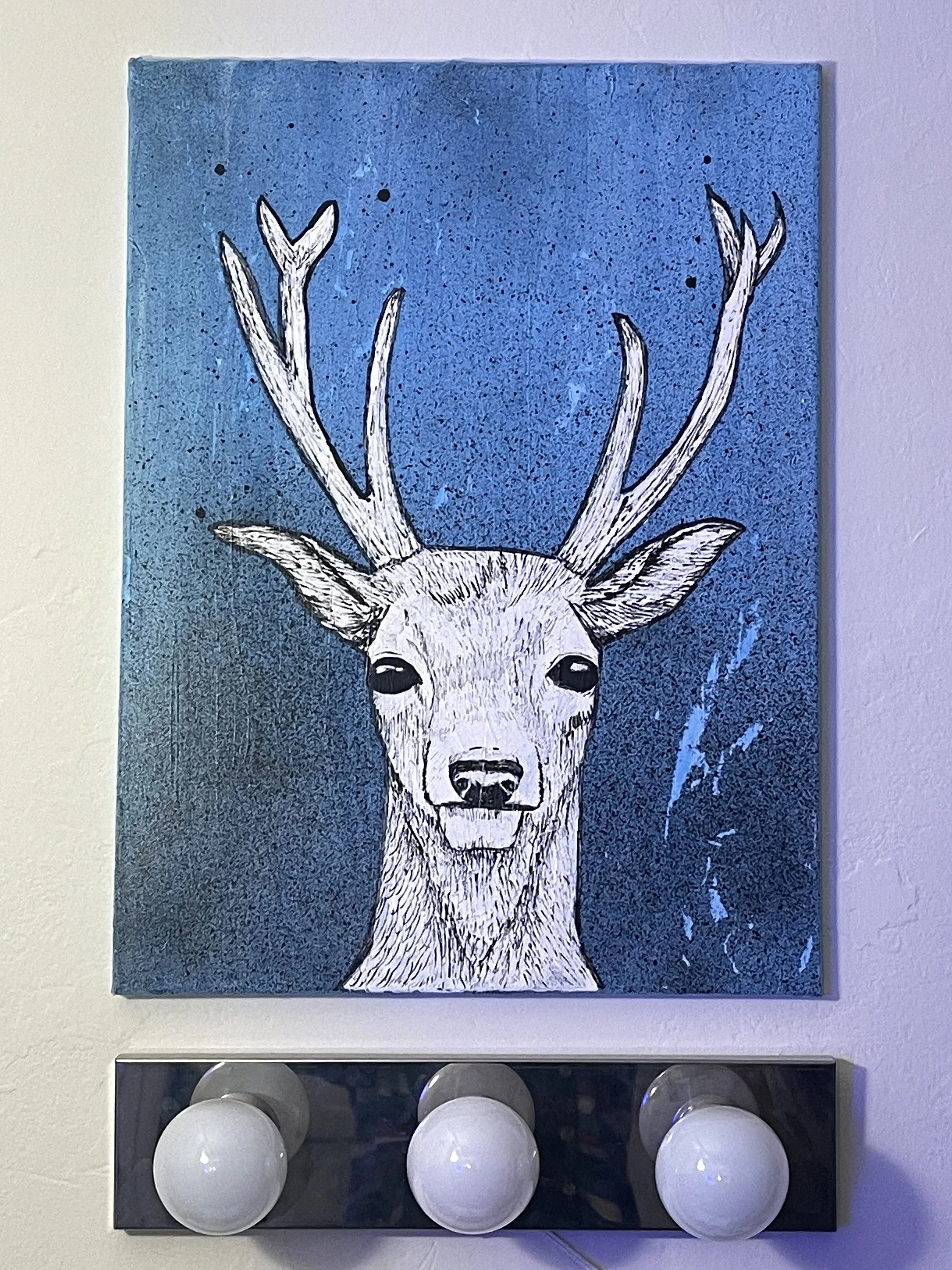 I like to paint and sculpt, and I've been doing a lot of 3D paintings the last few years. Most of my subject matter is dada, animals, or dream interpretation. My visual art, much like my life, suffers from the desire to do it all. I'll get an idea in my head and just go with it without necessarily thinking about how it fits in with everything else I've ever done. It's usually oversimplified or overcomplicated. Lately I've been focusing more on performance art: acting and doing drag, which I think is a lot better than my paintings. Ha. It's hard not to be influenced by traveling or other artists, which is why I try to keep my subject matter to something either so random or so deeply personal that I know it's mine.