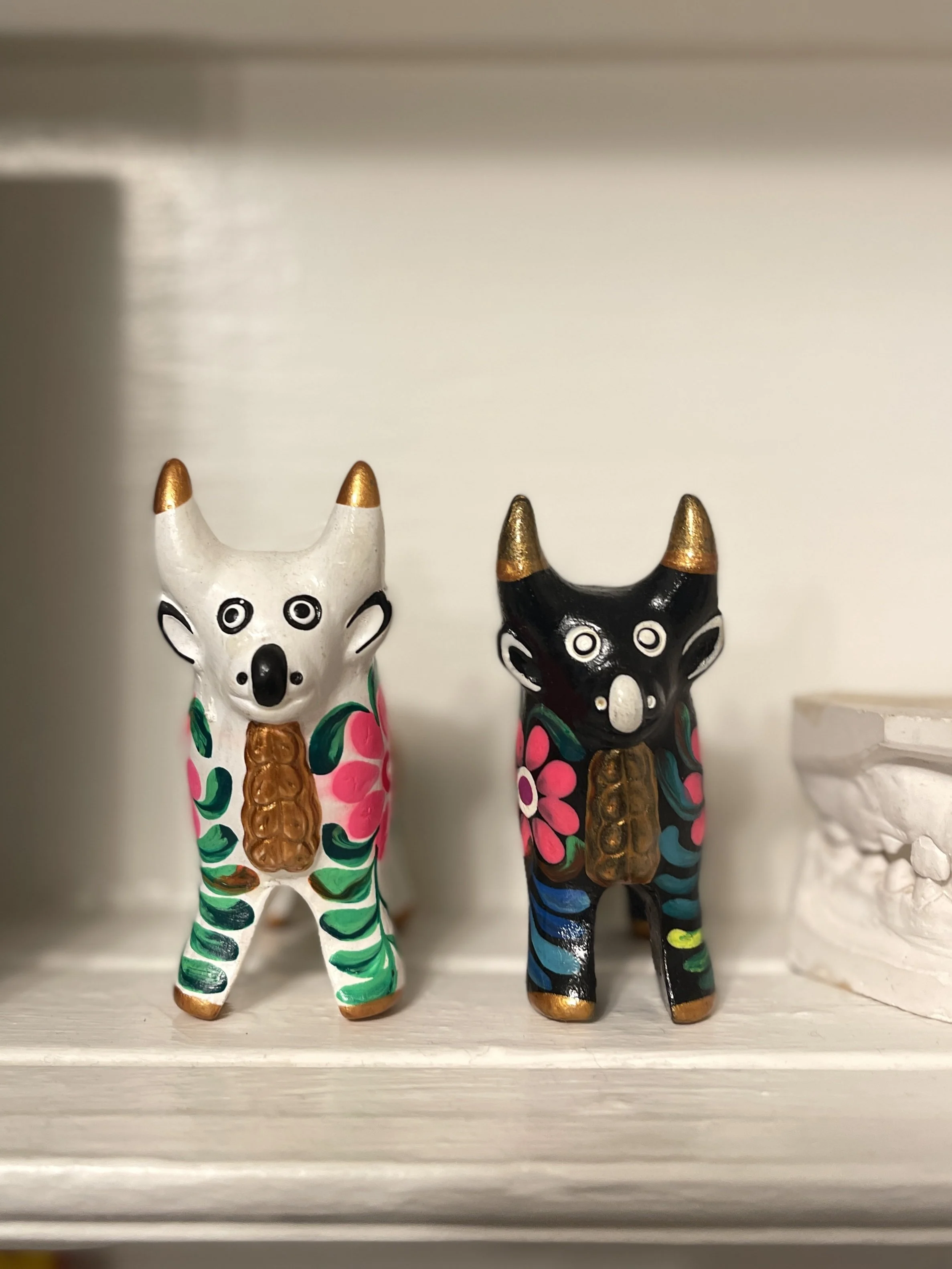 My best friend from high school is Allison Sommers, and I love everything they do. We became friends when our history class took a summer field trip to Germany and we discovered we had the same weird taste in music. I have some of their prints, zines, tiny paintings, tchotchkes, and embroidery. They’ve introduced me to some amazing artists who have become friends too including Vahge and Zoe Williams. John Vochatzer and I have been friends since college, and I am probably his number one fan. I love the endearing surrealism he creates in his work and the passion with which he promotes all things art and outsider art. There are lots of awesome folx over at The Bakery, The Goat Farm, and Sleepyhouse Gallery in Atlanta that I call friends, and I've collected a handful of pieces from each of them. Having so much art made by friends is like being surrounded by a warm hug whenever I am home.