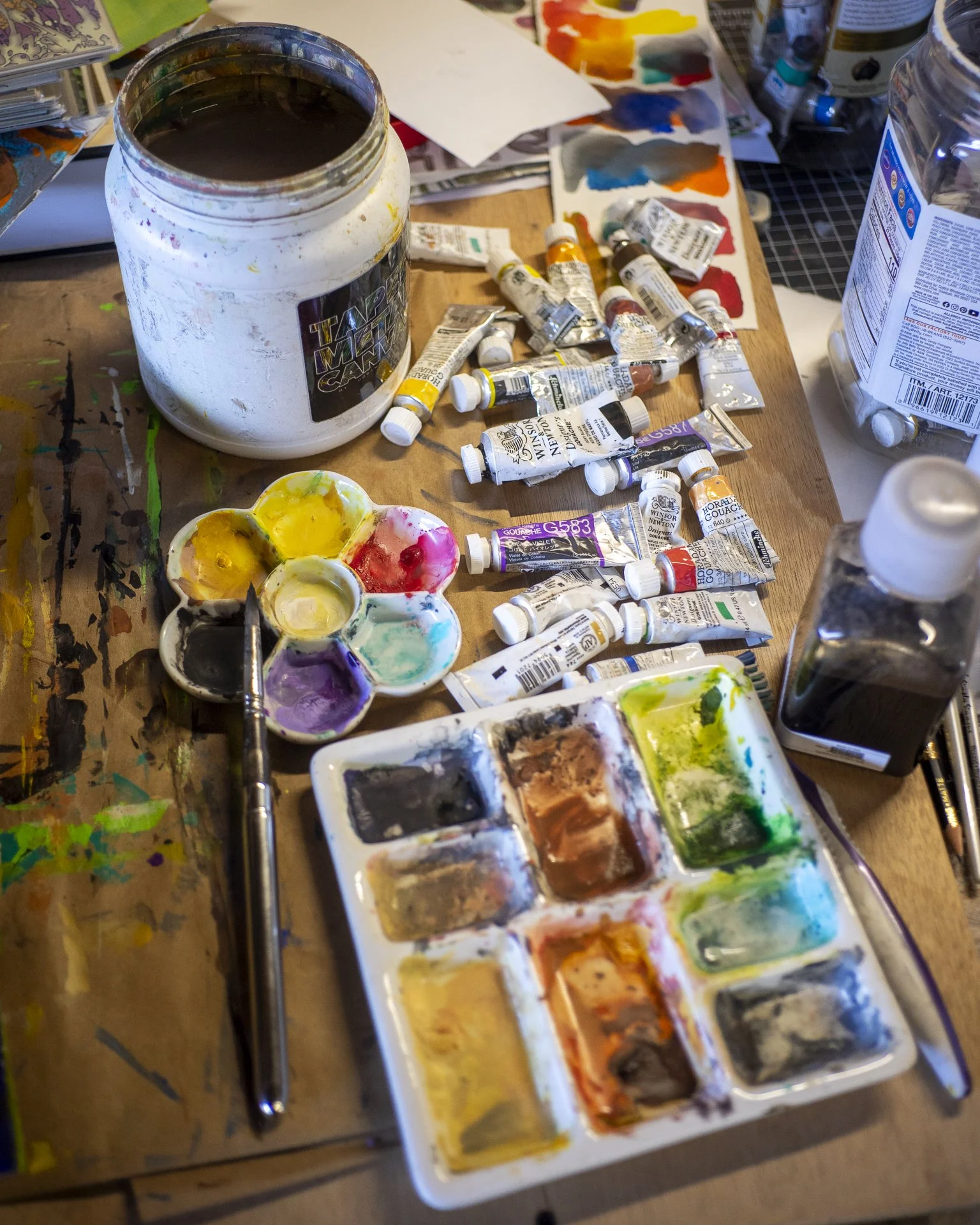 Whatever medium I’m using at the moment is my favorite. Oil is my baby, acrylic is my baby, watercolor and gouache are my babies, casein is my baby, those little Caran d’ache neocolor pastels are my baby, colored pencils are my baby, graphite and charcoal are my baby, ink is my baby, copperplate etching is my baby, etc. It’s like someone who writes books should know different words, an artist should know different mediums. But I love how people go deep with one medium forever too, that’s cool too.