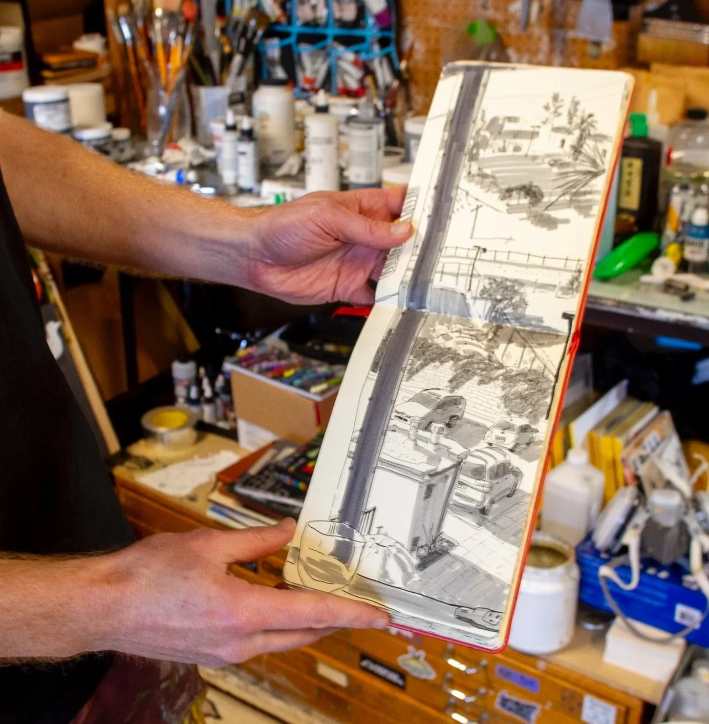 At the end of 2021 I had been painting every day for two years but hadn’t actually met another artist. My partner, Beth, is the one who encouraged me to get outside of the house with my art. One month we didn’t have enough to make rent and she signed me up to set up a table at a neighborhood art/craft fair at the old fire house on Brazil Street in Excelsior. I sold enough to make rent but more importantly I met local artists for the first time and that eventually led to me being a part of two different artist cooperatives. I think wherever an artist lives we need to find those birds of a feather for mutual encouragement. I also do figure drawing in the community regularly with Sketchboard and highly recommend it. We should invest in all these DIY, volunteer-run art communities. Art is actually one of the key pillars of society and culture. If that gets lost everything suffers. Expression of creativity is an inherent human need.