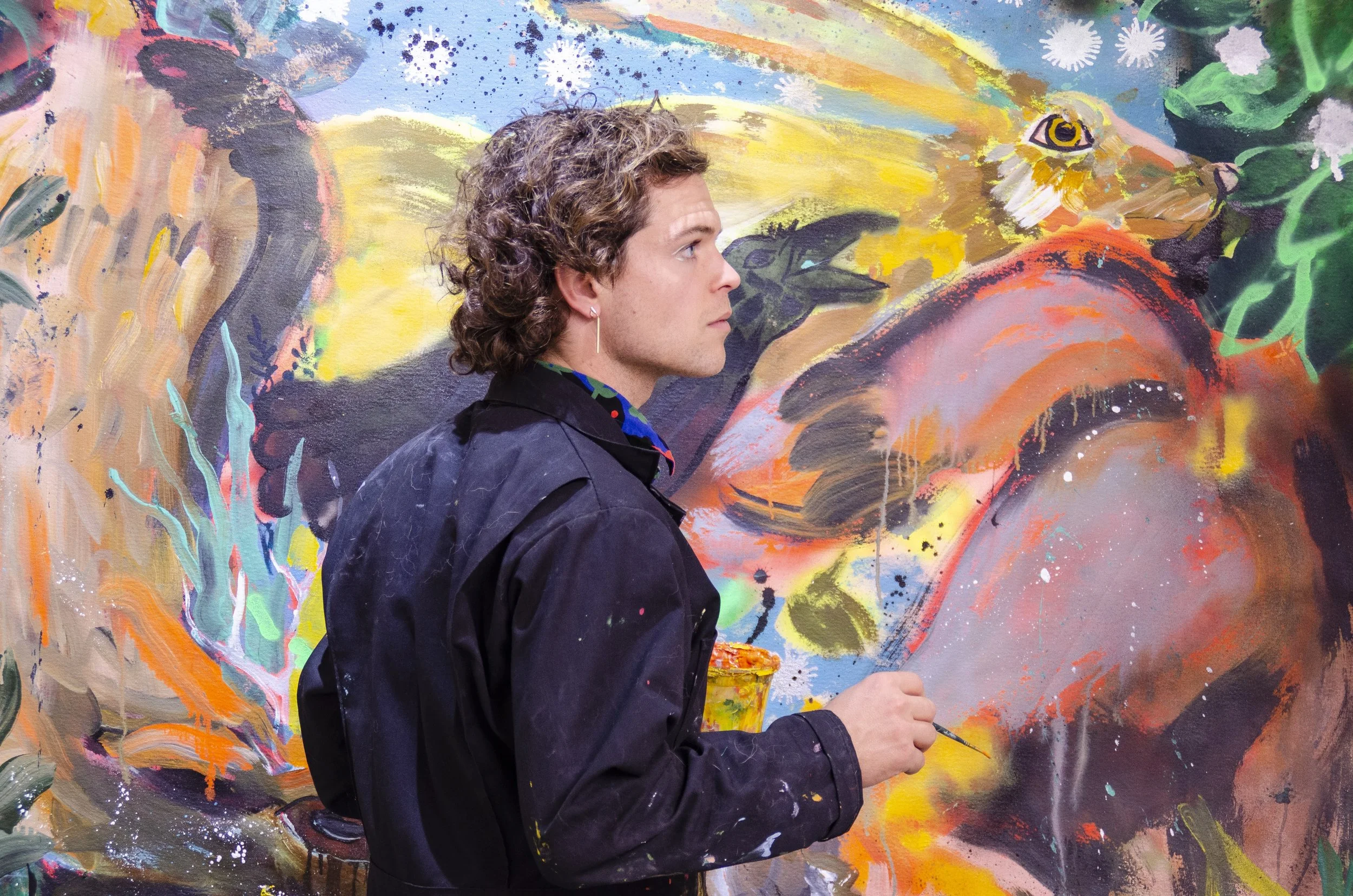 While visiting their studio, a coyote walked into the yard and approached the window. The whole scene reminded me a bit of one of their paintings: a bit magical and unexpected. I appreciate the vulnerability some of their newer work takes on and feels a bit transformative to those that knew them before moving to the Bay Area.