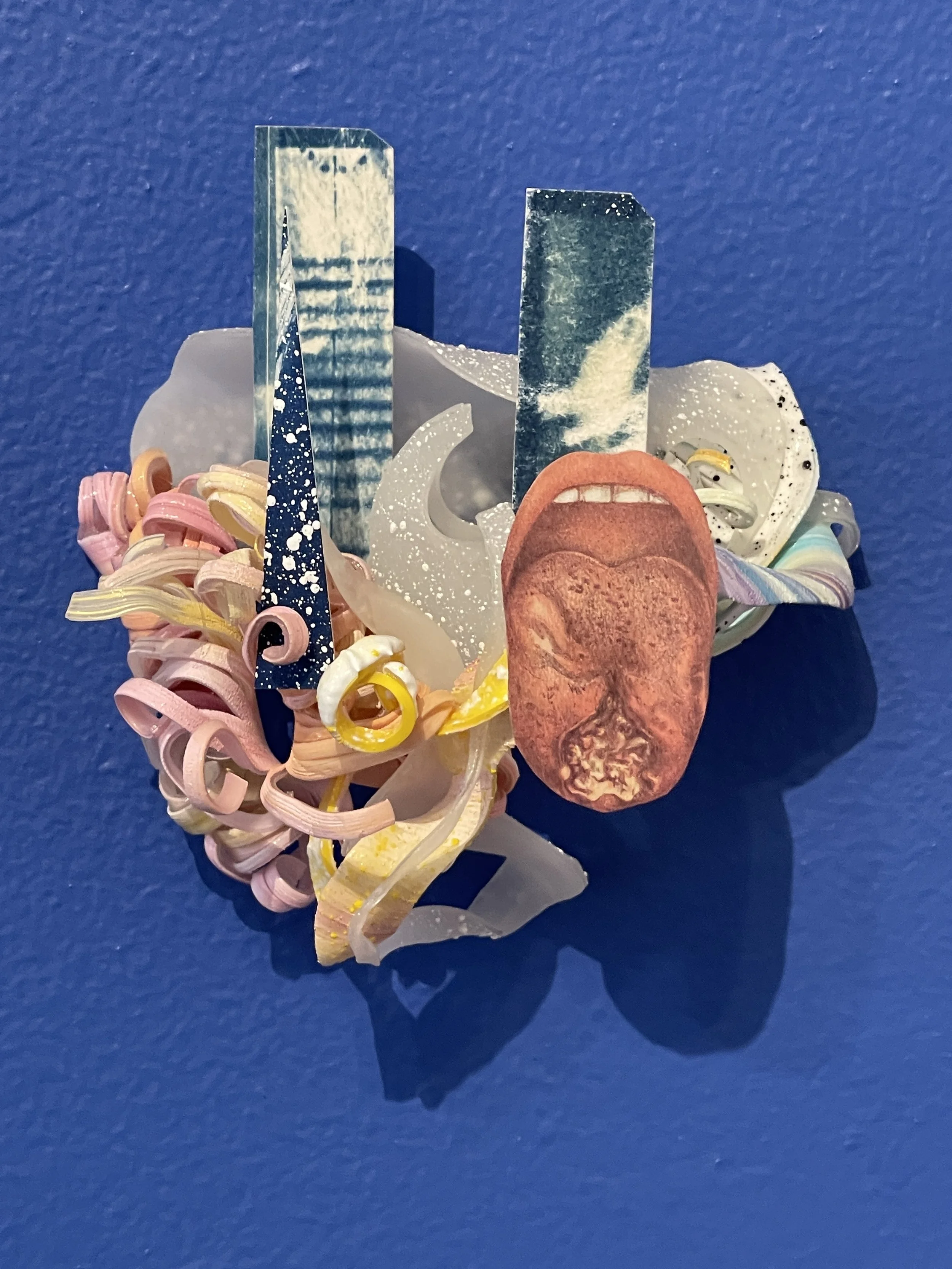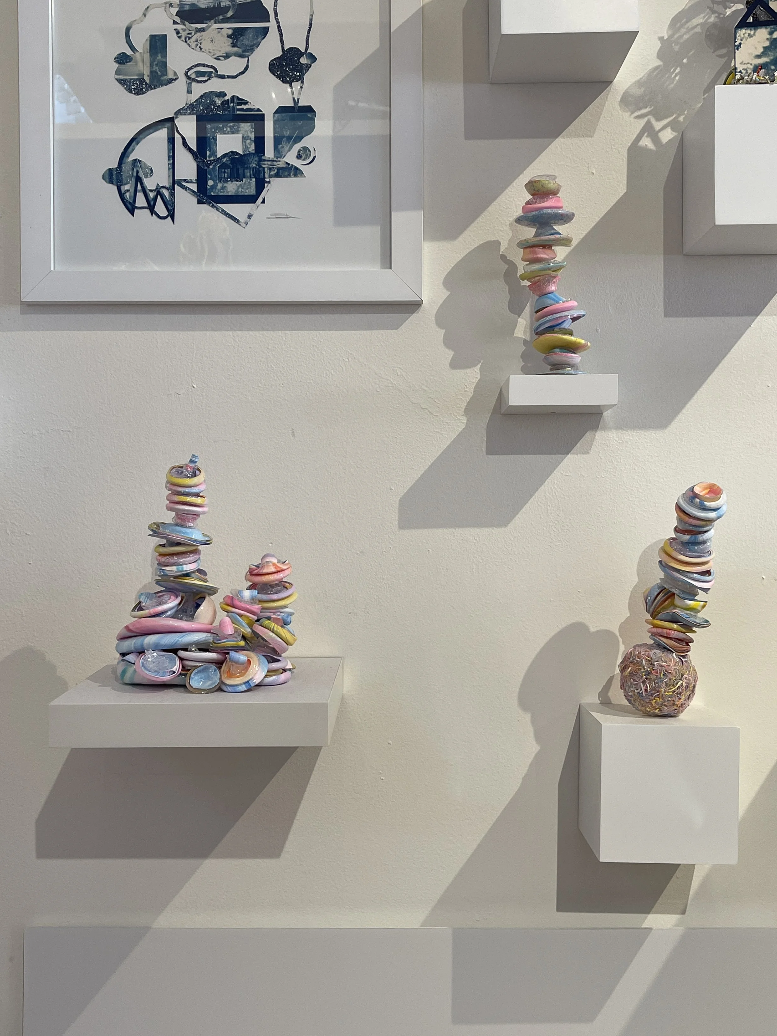 For example, I had a period where I would create nothing but cyanotype collages that were very monochromatic in nature, which are now positioned next to the most colorful, chaotic Shrinky Dink sculptures, next to mixed media paintings with multiple layers that you can really dive into.