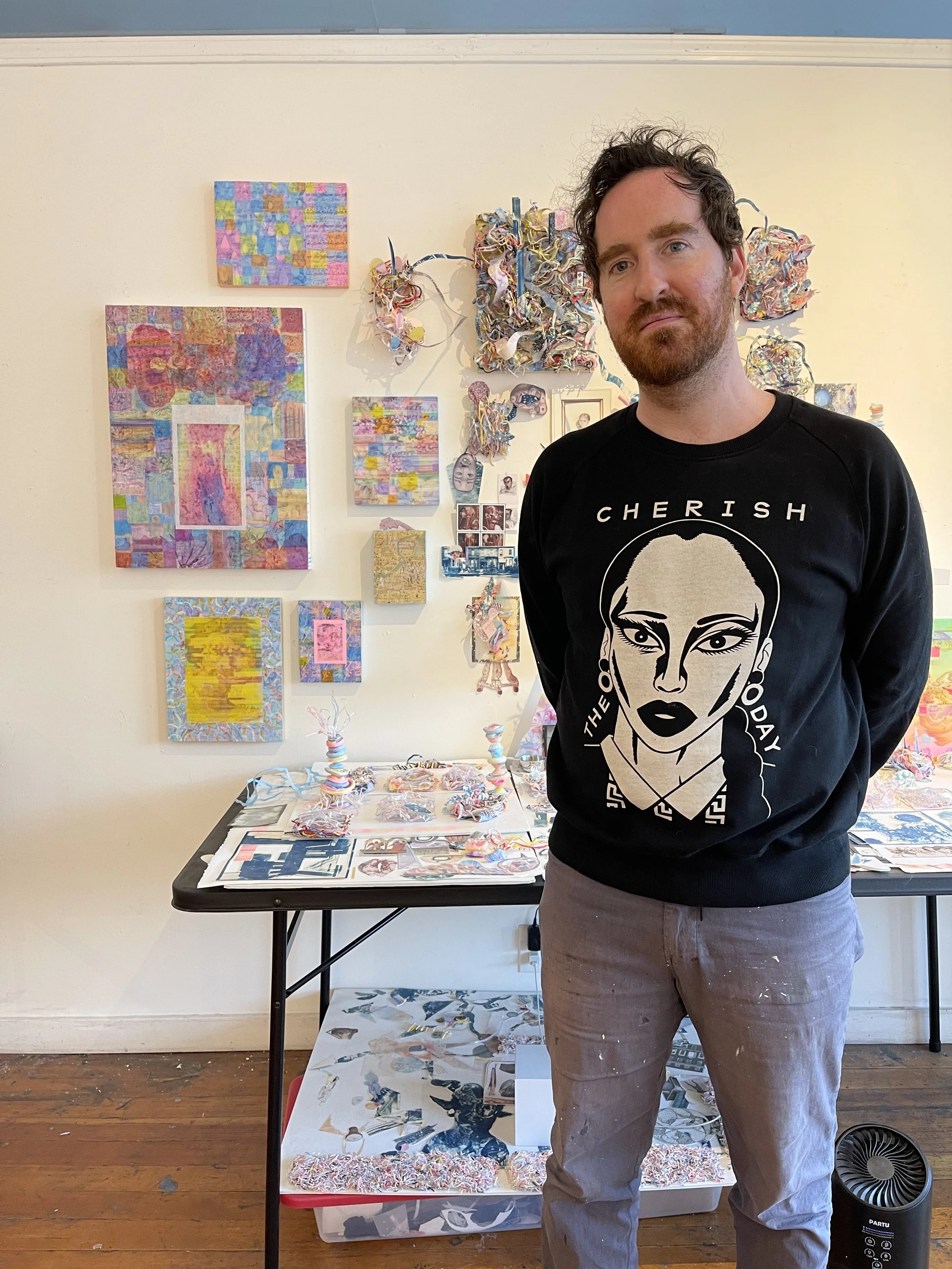 Although I haven’t known him for very long, my new friend Brent Hayden is someone with whom I have plenty of things to talk about. Aside from us both being mixed media maniacs with emphases on collage, we’re also both co-parents to our own artist-run gallery spaces here in downtown San Francisco. Along with his partner Sarah Choe, Brent opened Soft Times Gallery where they held their very first exhibit just weeks ago to great success. Founded on premises of inclusivity, accessibility, and community involvement much like our own, I consider Soft Times a very welcome addition to our neighborhood art scene that seems to be newly budding after being nearly wiped out by the pandemic.