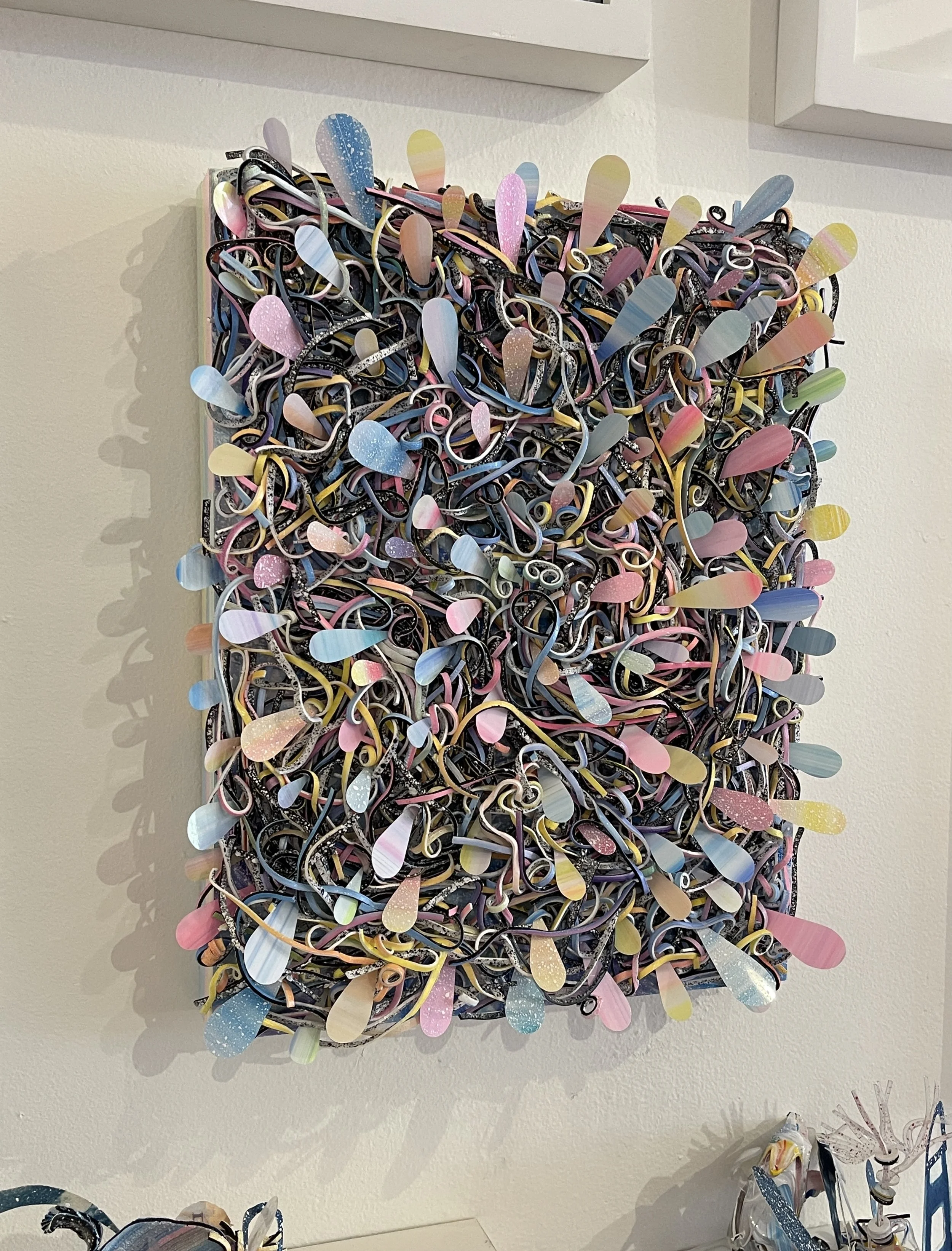When the pandemic hit everything just stopped, I actually had time to make art, and honestly it kept me sane during the beginning because like the rest of us, we thought it was Armageddon. After a couple of months I had 55 sculptures made from mostly Shrink Dinks in my living room which made it impossible to walk through. Soon after, I moved all my work into ARC Gallery & Studios in Soma where I currently work out of. I would bake the materials in my apartment, then assemble all the work in the studio. Being aware of the materials I was using, I would donate 10% of sales through the galleries I was exhibiting out of that would help battle climate change, as well as directly give proceeds to local organizations focused on helping feed the community.