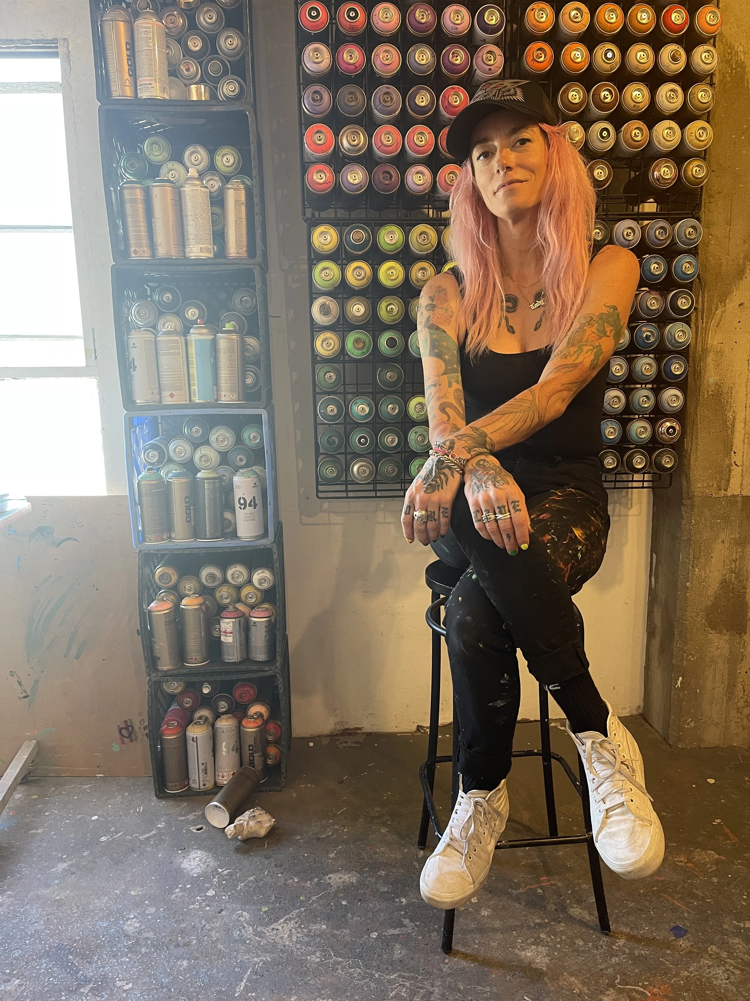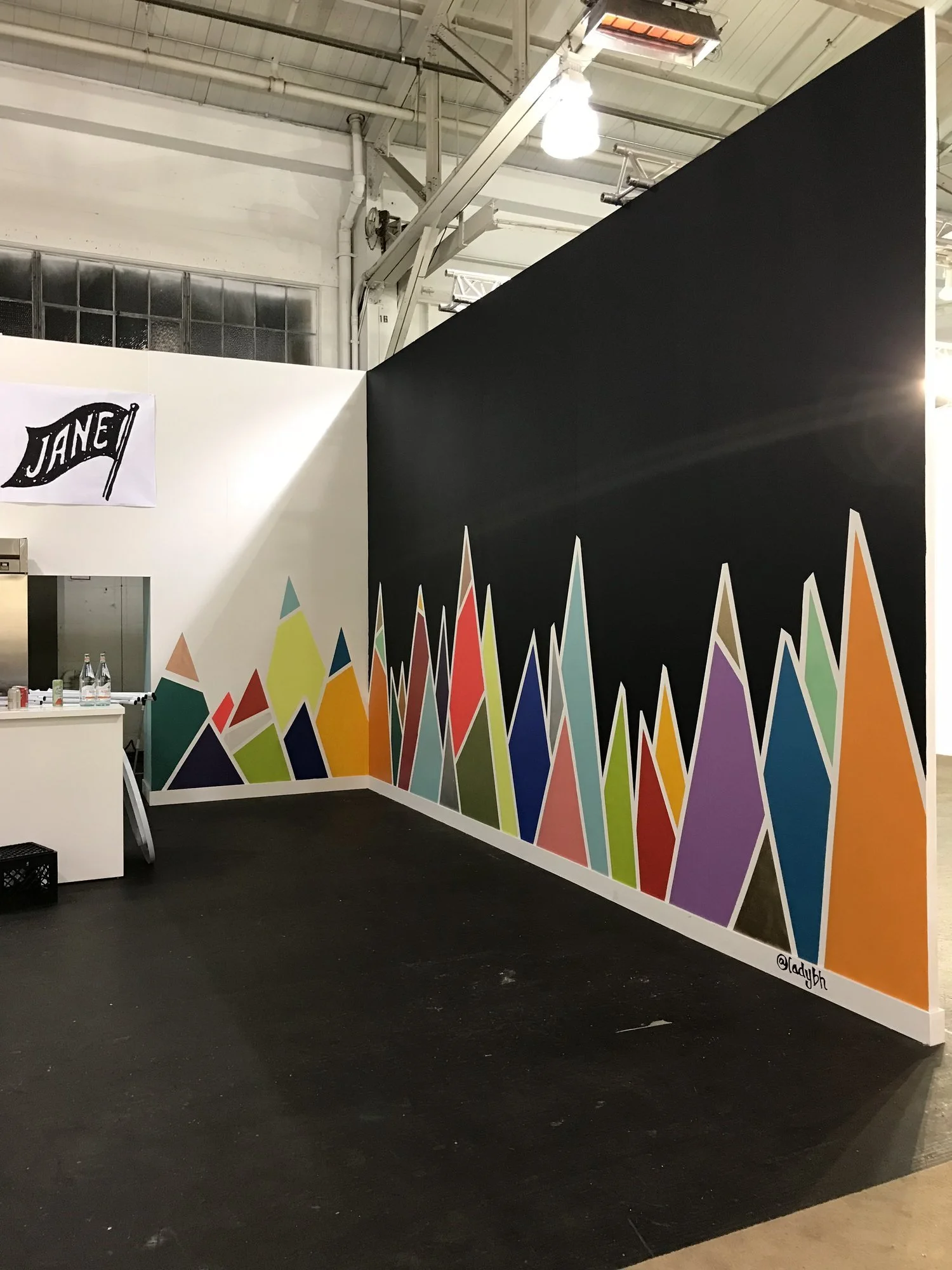 Four years after, another special woman, Amanda Michael, gave me my first wall. I hadn't made art in at least ten years prior, and I was afraid I couldn't anymore, quite frankly. And I was hooked. First time using spray paint, first time painting large. It's where my 'mountains/triangle' style was born and it will always have a special meaning for me. I only get to create because I am sober. When I'm not, there's no joy, no community, no love, only blackness. And I talk about my sobriety mainly because I genuinely didn't know that option existed. Which sounds insane, I know. But there's a lot of creatives who suffer from addiction and mental health issues—I feel like we make up a large portion of the people who become addicts. And so on the chance that I give someone some hope, or can lend a hand, I speak about it. And now my art is about those things I couldn't access while fucked up: joy, community, love, fun.