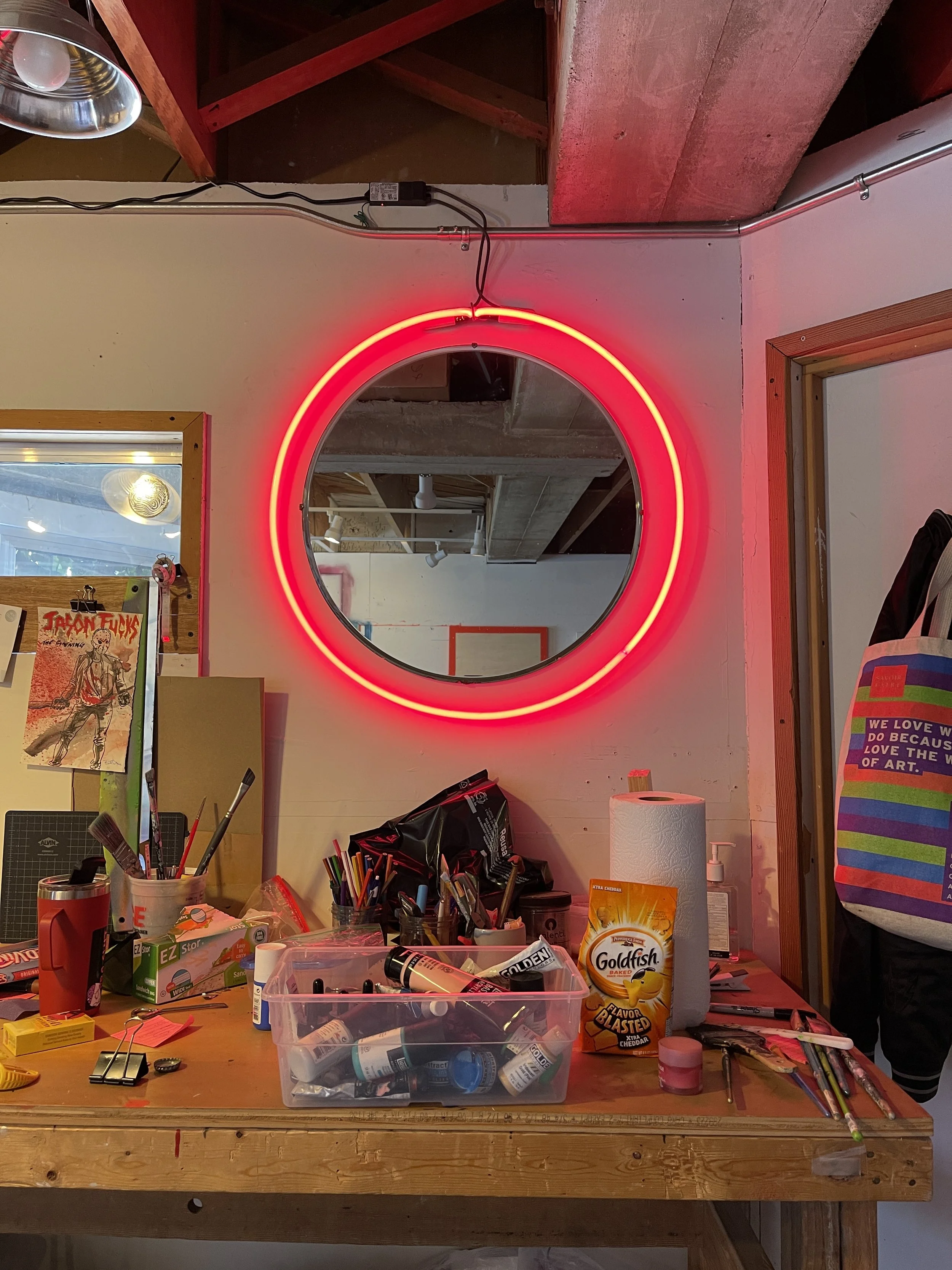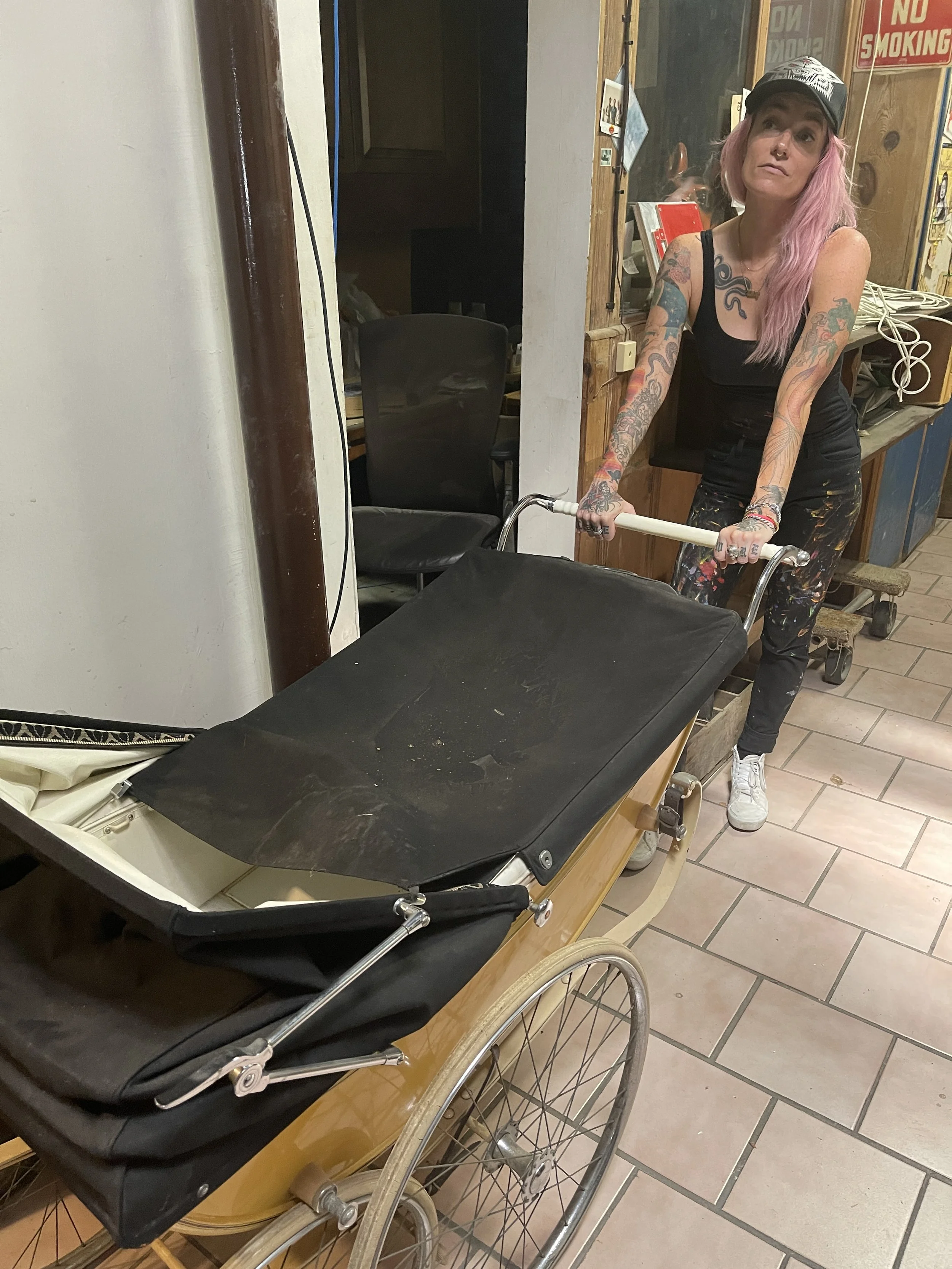 Hah it is actually a warehouse that used to sell/store baby furniture. "Haunted baby factory" is hilarious but not entirely accurate. There's a lot of stories about the place and I wish I could share them here but they're not mine to tell, and it also just lends to the aura of intrigue around the space. The gentleman who owns it- we owe him a debt of gratitude. It's not many who will rent an entire space devoted to studios. Not when he could have sold it for a bajillion bucks. The carriages—dare I say “prams”—are haunted af and the stuff of nightmares. As is the whole warehouse at night, quite frankly. It's perfection. And to be surrounded by so much talent—it's totally badass. Every single artist there is someone whose work I admired before I arrived. It's highly motivating to be around legends.