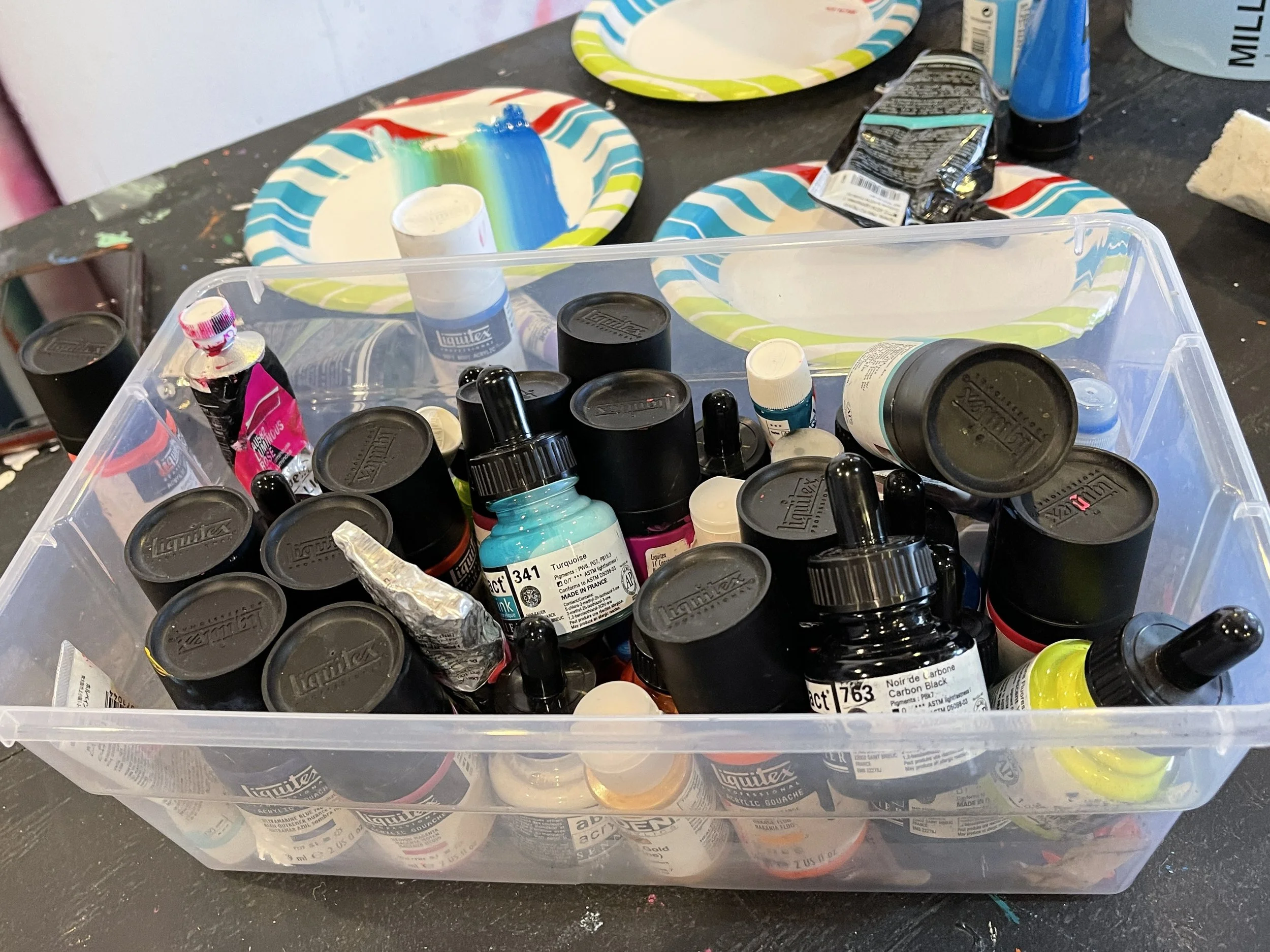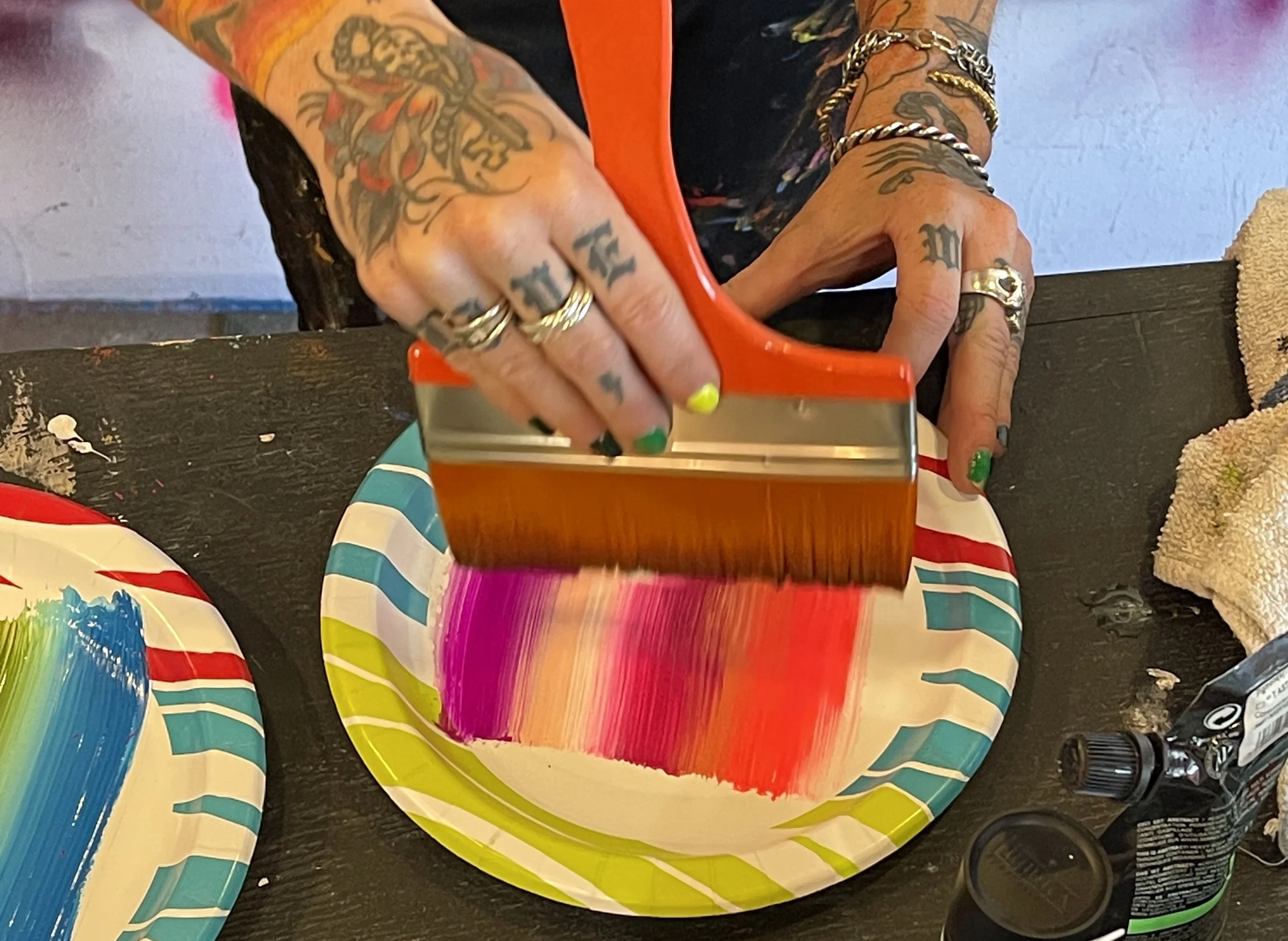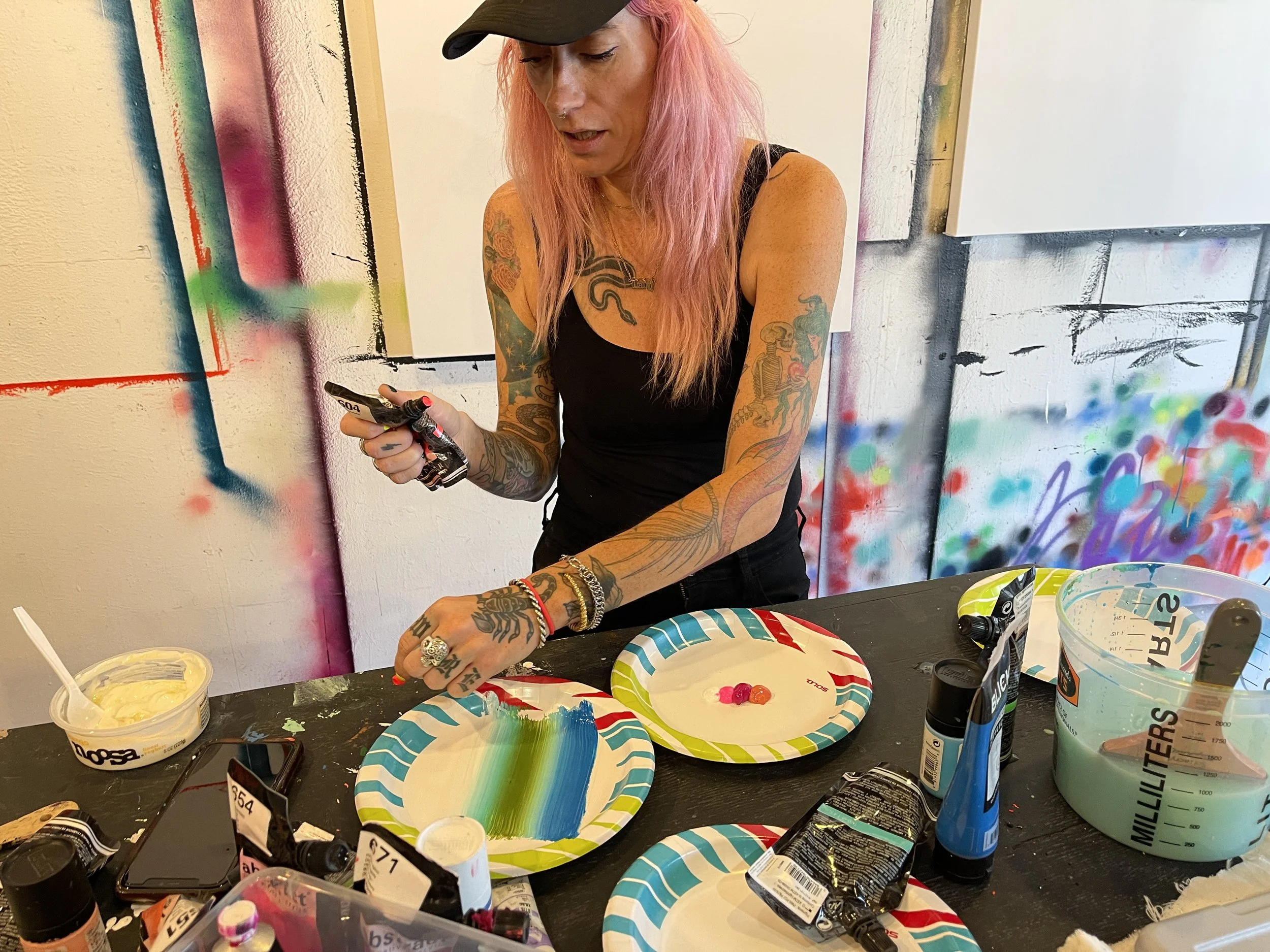 How to word this...I get high on color now :) I don't know how to speak about how excited I get picking out spray paint. Or watercolor. Or pastels. Or whatever. If it comes in a wide color selection I'm a kid in a candy store and I have no restraint...unsurprisingly. The patience the people at Blick and 14th Street have with me is unending. Because I often work in gradients I'll have all the cases open and I'm lining up the colors on the ground and just creating a ruckus (Blick). 14th Street Supply—I’m always "emergency" calling with my pants on fire about some color I can't find. You saw how big a smile I cracked when I showed you my new box of Edding spray paint. UGH the colors, the choices, the unending combinations!!!! Again, I'm trying to convey sights, smells, memories, vibes through non-representational art. So I'm specific about color choices. And so far, I don't paint about the bad shit. And as someone genuinely happy to be alive, my palettes reflect that.
