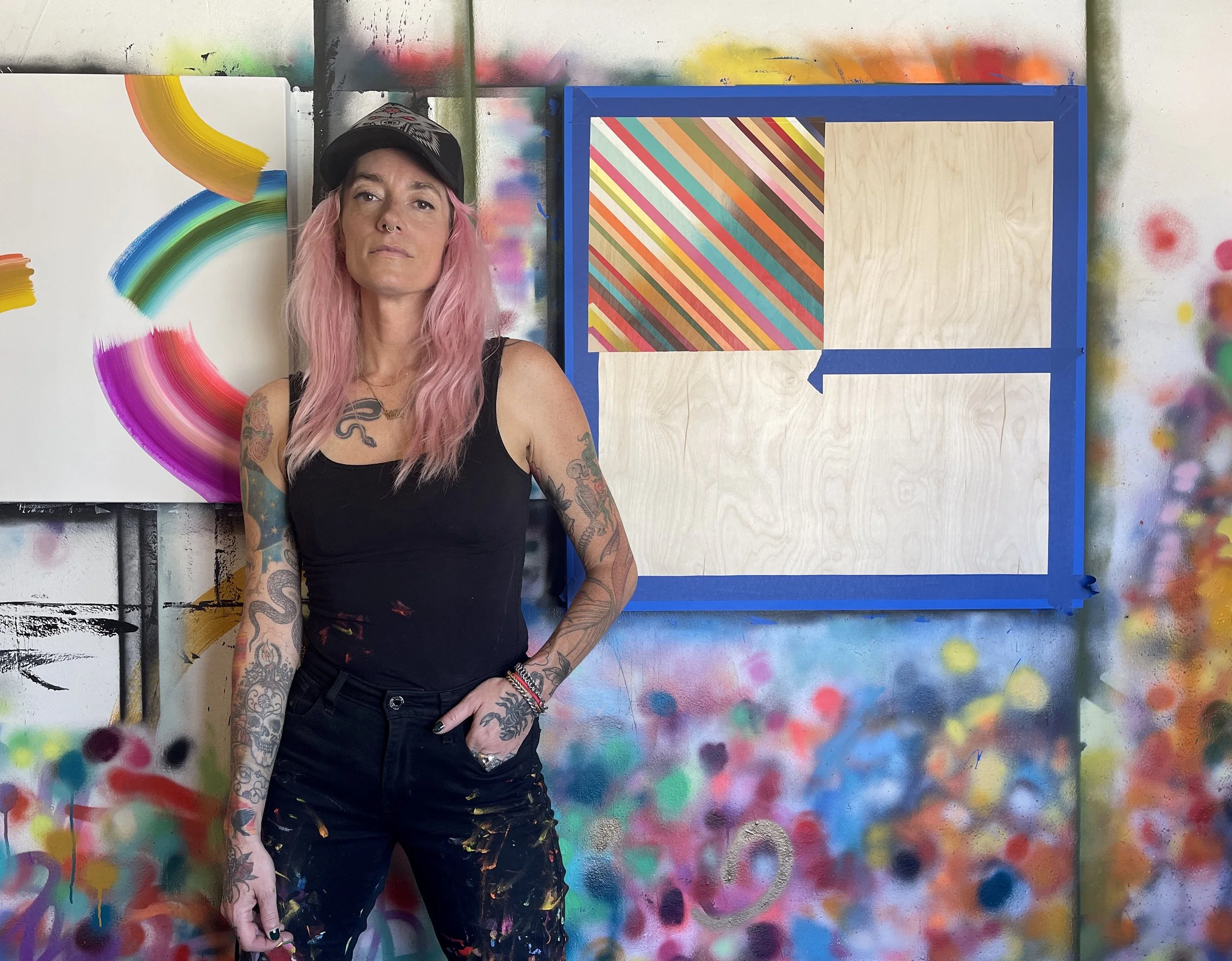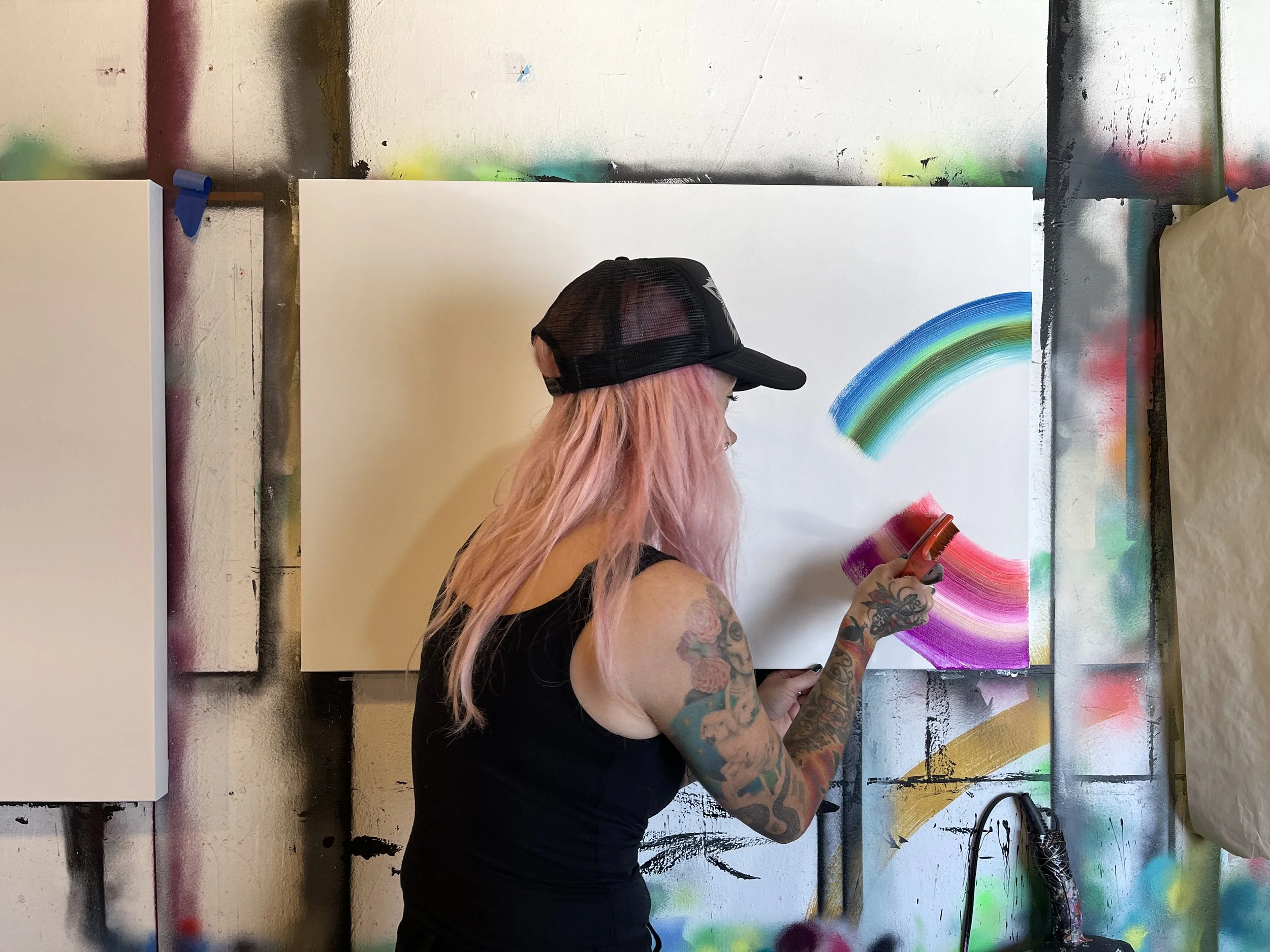 Also known as Lady Henze (pronounced Hen-zee—and I bring this up because it seems to be a point of constant debate), Britt moved to San Francisco from Colorado in the Spring of 2013 in an attempt to start over and change some of her self-destructive behavior. Far from succeeding, the following year she saw some of the lowest lows of her life which culminated in near-death liver failure and her family checking her into rehab; a move that unquestionably saved her life. Amongst the myriad of positive and necessary changes along the road of recovery, in 2016 Britt began making art again after nearly a 12 year hiatus. Like a polychromatic, 90s-nostalgia-infused phoenix, her ascent as an artist ever since has been powerful, radiant, and above all else brightly colorful.