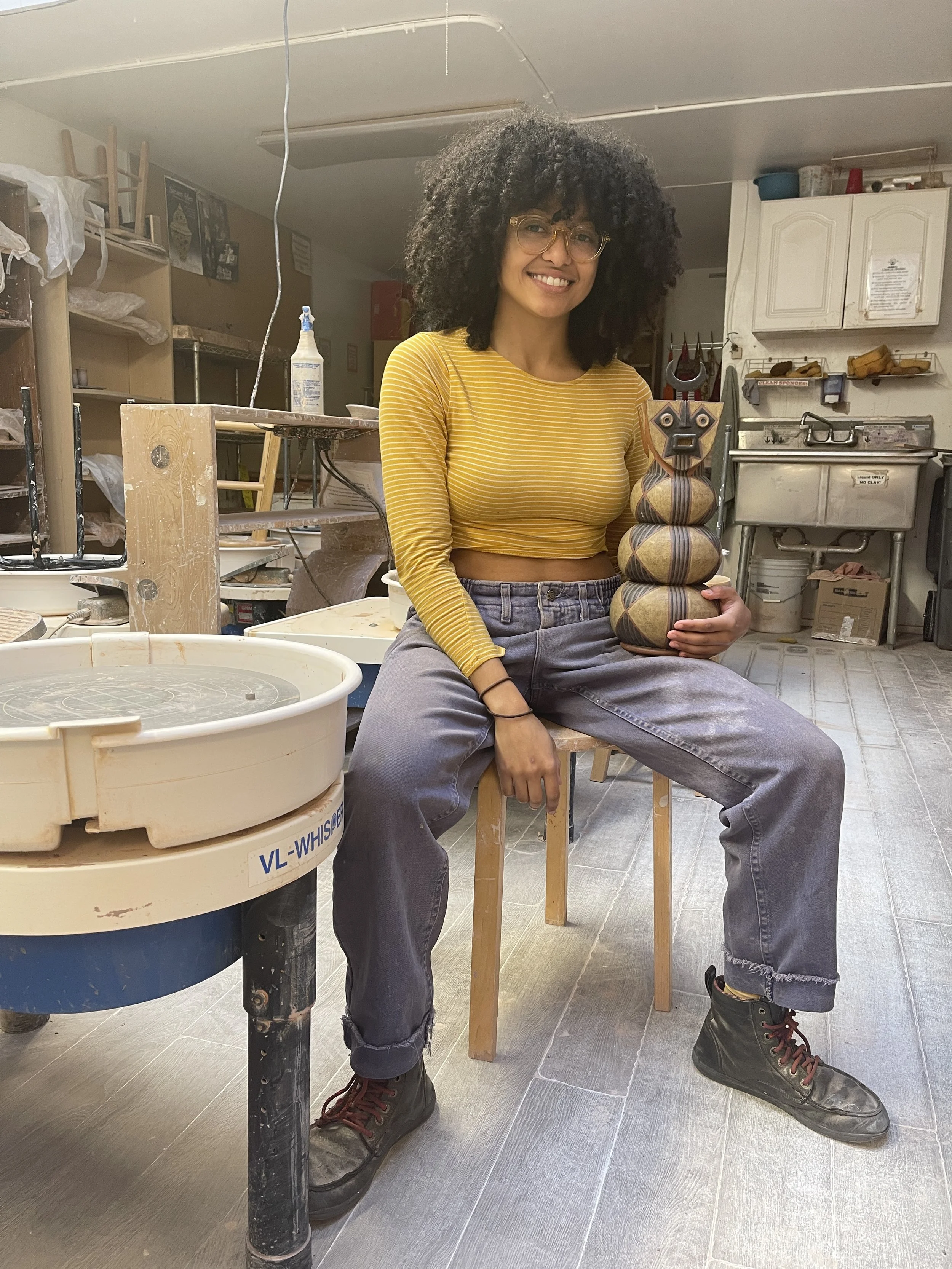 I’m currently living and working out of my studio in San Francisco. I create ceramic sculptures centered around my spirituality and give honor to deities and spirits originating from West Africa, Caribbean, and Black communities. I also create functional pieces used in spiritual practice such as incense burners, offering bowls, planters, and pots.