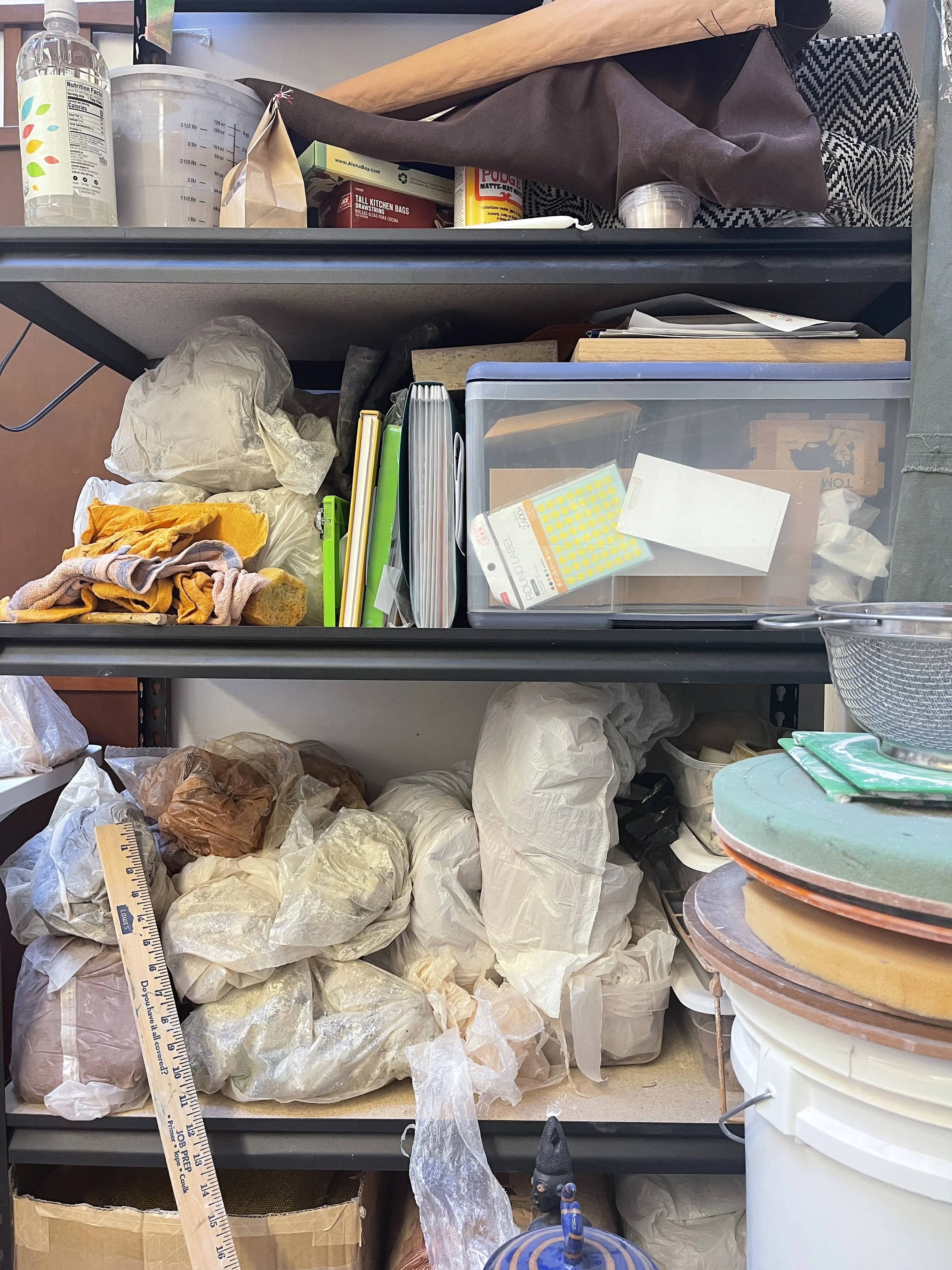 Yeah fasho, so I've been at my studio for six years now since I moved here in 2016. What I love about this ceramic studio is that it's one of the only ones in SF that allows for artists to have actual floor space and our own desk to do what we want with. When I first began, I only had a cubby in the basement level. Over the years I've went from a cubby, to a small space downstairs, to then moving upstairs and having one of the largest spaces in the studio. I'm extremely grateful for how far I've come along. I feel like the more I physically expand my space, the more motivated I become to branch out and create larger pieces, create more work, and even one day run my own ceramic studio.