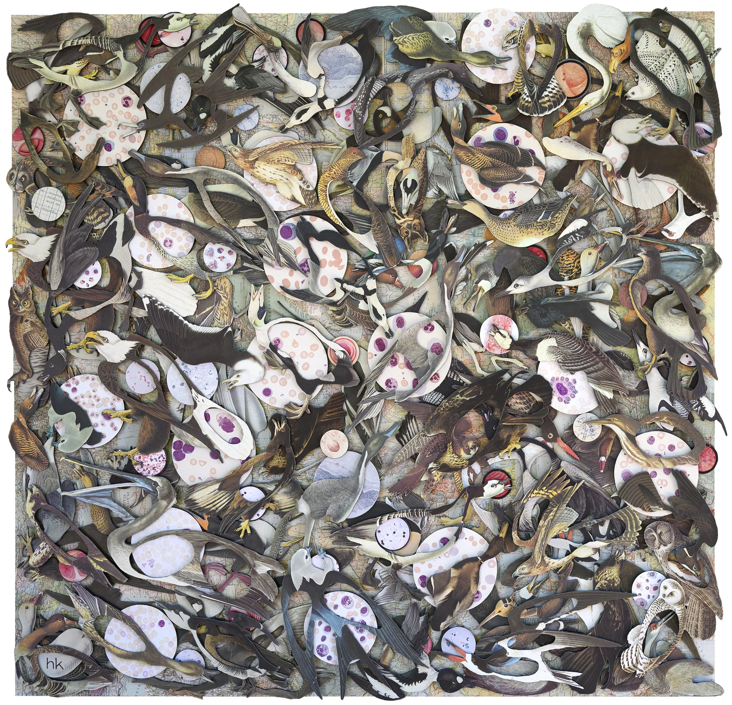 “Aviary” 48”x46” collage by Hope Kroll for Constant Variables.
