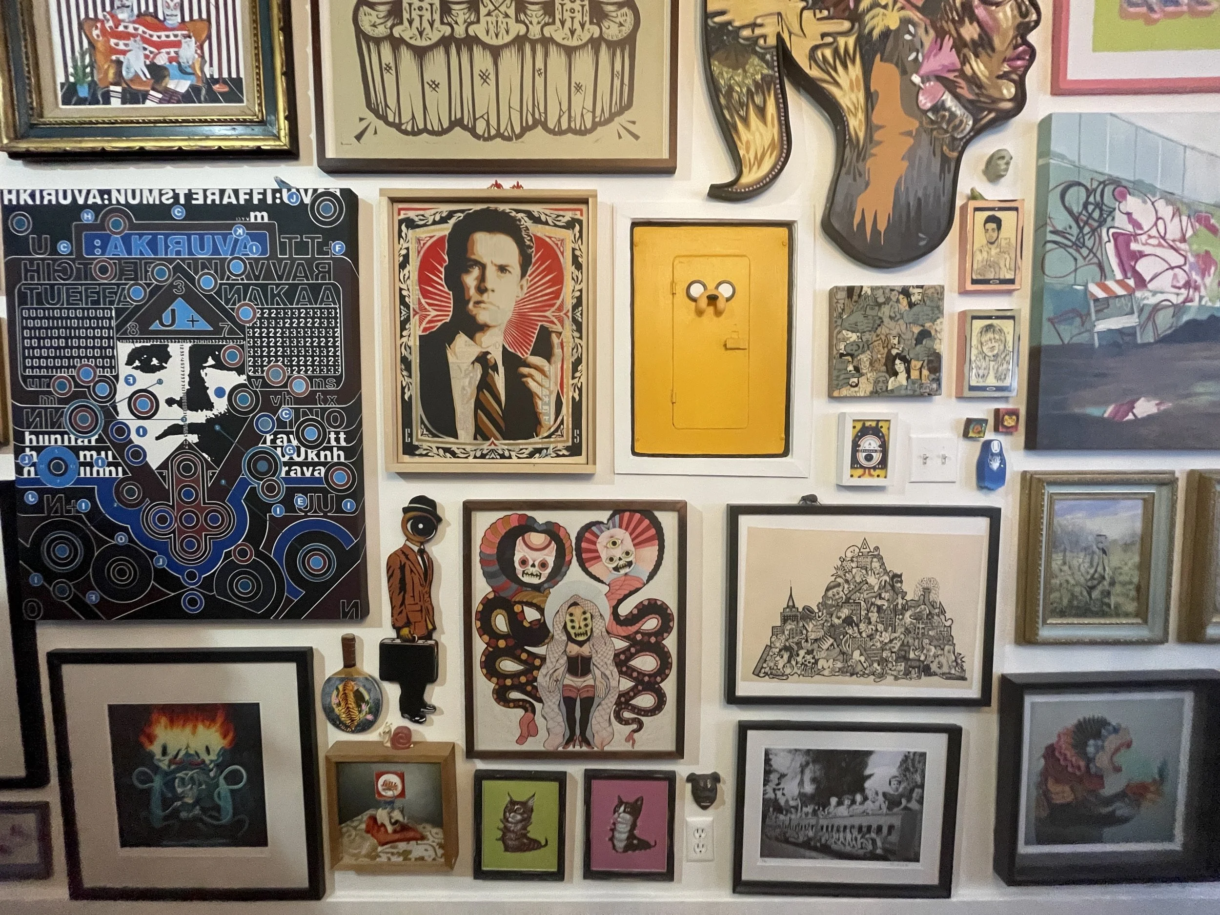 Awww. Thank you. Well it's really just me taking an interest. I make art, why not buy some art? I gravitate towards things I cannot make myself. I appreciate lots of other styles and materials and my taste in art is as eclectic as in music, just….all over the map. I want to surround myself with things that inspire me. Collecting reminds me of my peers, my community, of all the other creative weirdos out there trying to make a go of this “art” thing. And with that said. Artists need your support and patronage. An ongoing and successful career in the arts, specifically in the fine arts, is a very tough road indeed. Show a little love, buy a little art.