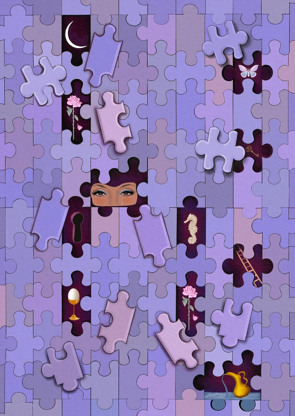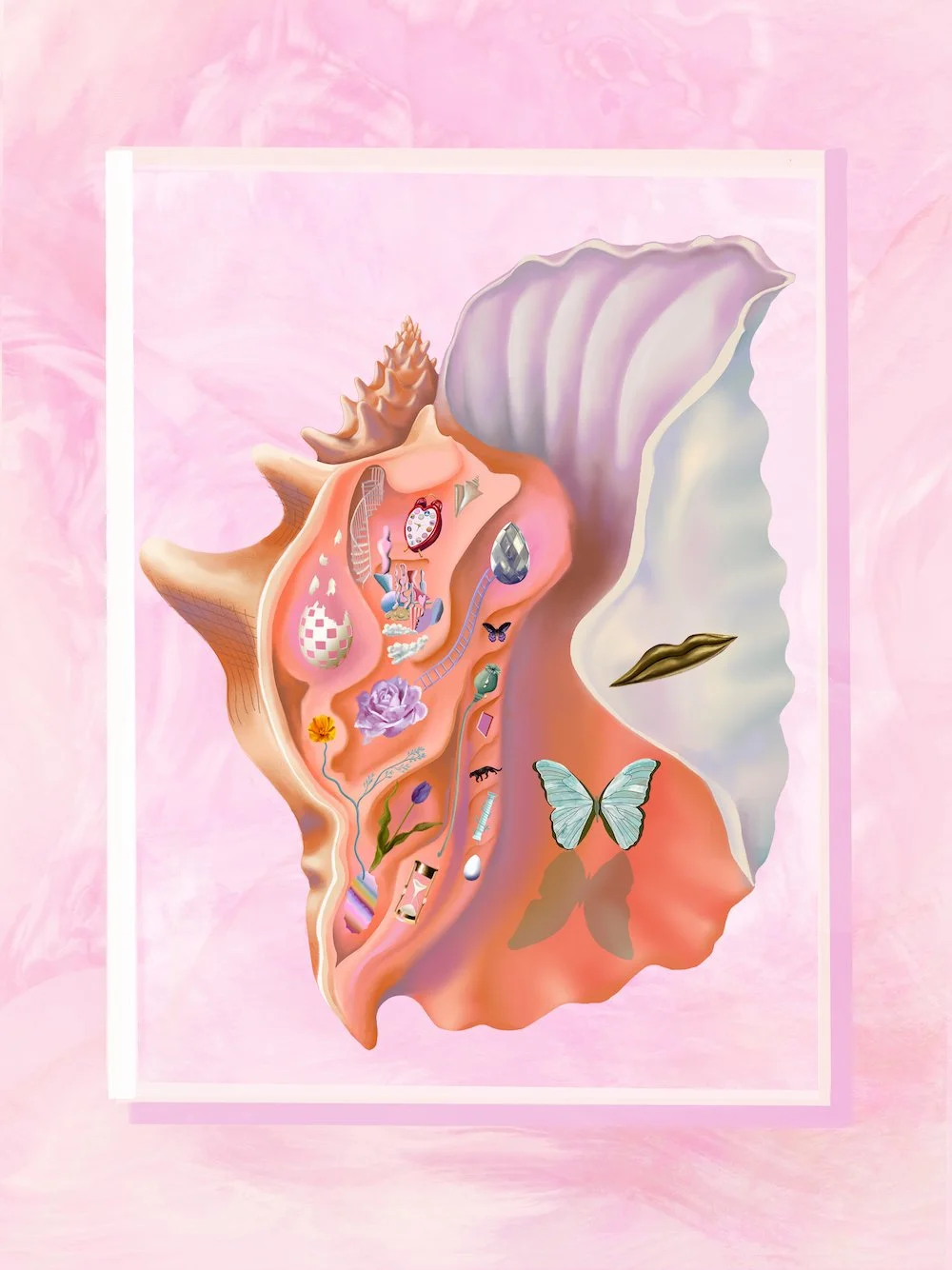 I love piecing together different image references from wildly different sources. Not that it’s intentional to do so but it’s usually what naturally results from being guided by feeling. I am a vintage paper ephemera collector so some of my images come from vintage books, ads, and magazines in my collection. Many of my images come from various internet sources and I feel an underlying aspect of my work is exploring and sending up internet lore as an extension of our collective consciousness.