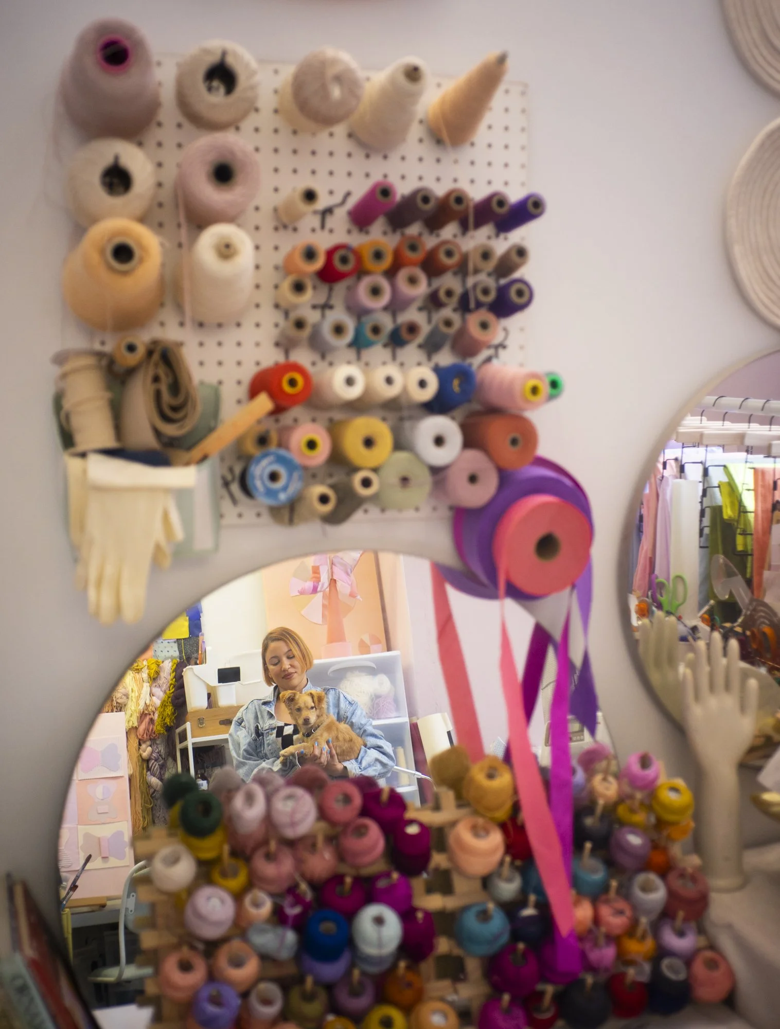 Your studio is a collection of materials in a very nuanced palette from the orderly stacks of fabrics to the color swatches on the walls, what influences your choice of color palette in your art?