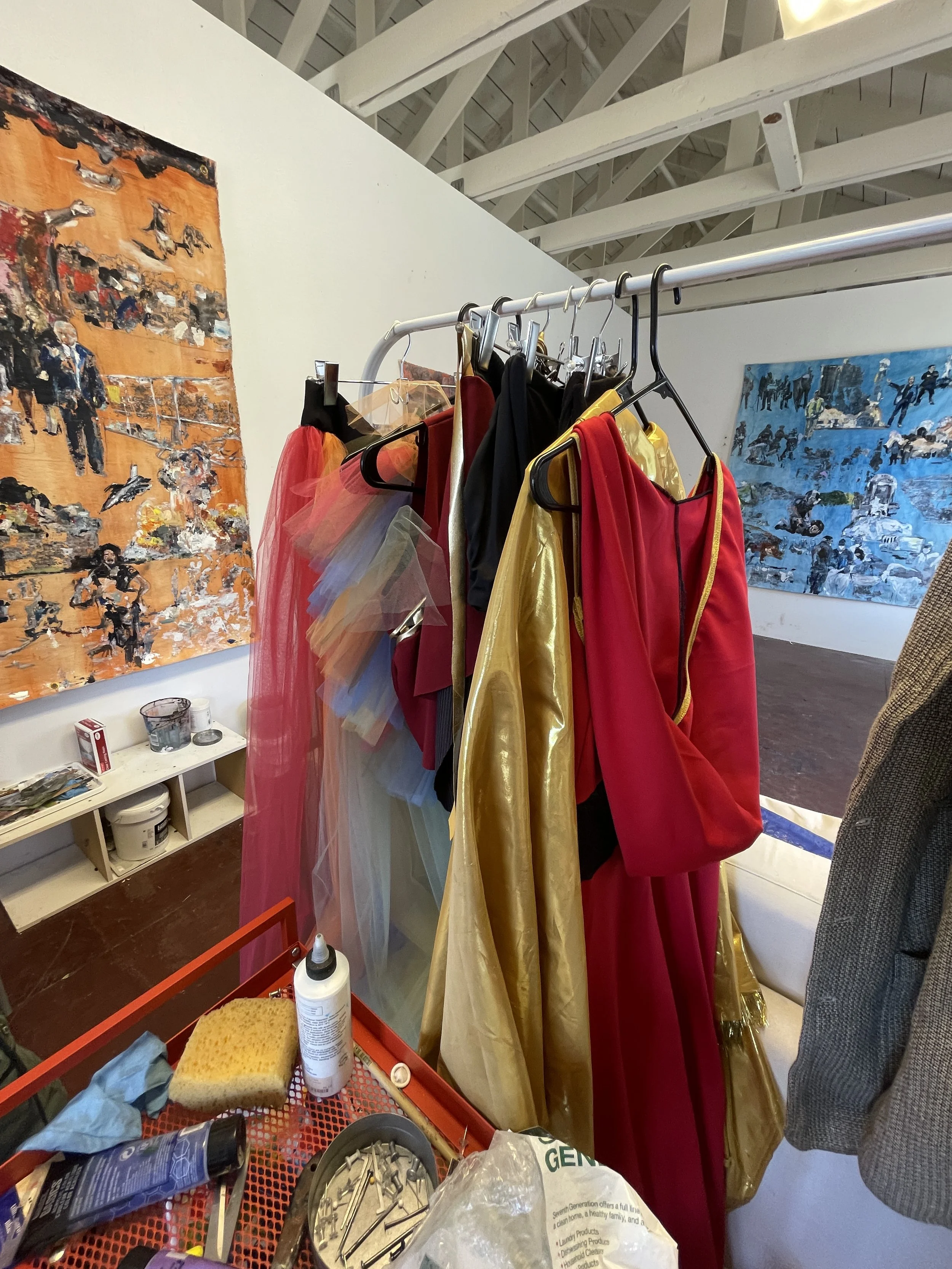 To visit the studio of Rivka Louissaint is quite a trek for someone without a car (such as myself). Located basically in the middle of nowhere on an old explosives testing site at the Richmond Field Station wing of UC Berkeley, I made the dual train-plus-bicycle journey out there on a sunny afternoon not too long ago. After getting lost and turned around a few times, I finally made it to where her studio is located—and the location itself was like an eerie, desolate time capsule. There was hardly another soul anywhere to be found out there and the entire area seeped with an almost ghostly quietude. In the back of an old (presumably) barracks, sits Rivka’s studio along with those of other UC Berkeley Grad students, only one other of whom was there on that given weekday afternoon. In the furthest back corner is where Rivka does her work, and where some of her epic, transcendent and revolutionary mixed media works from her years in University are stored with other more recent works-in-progress.