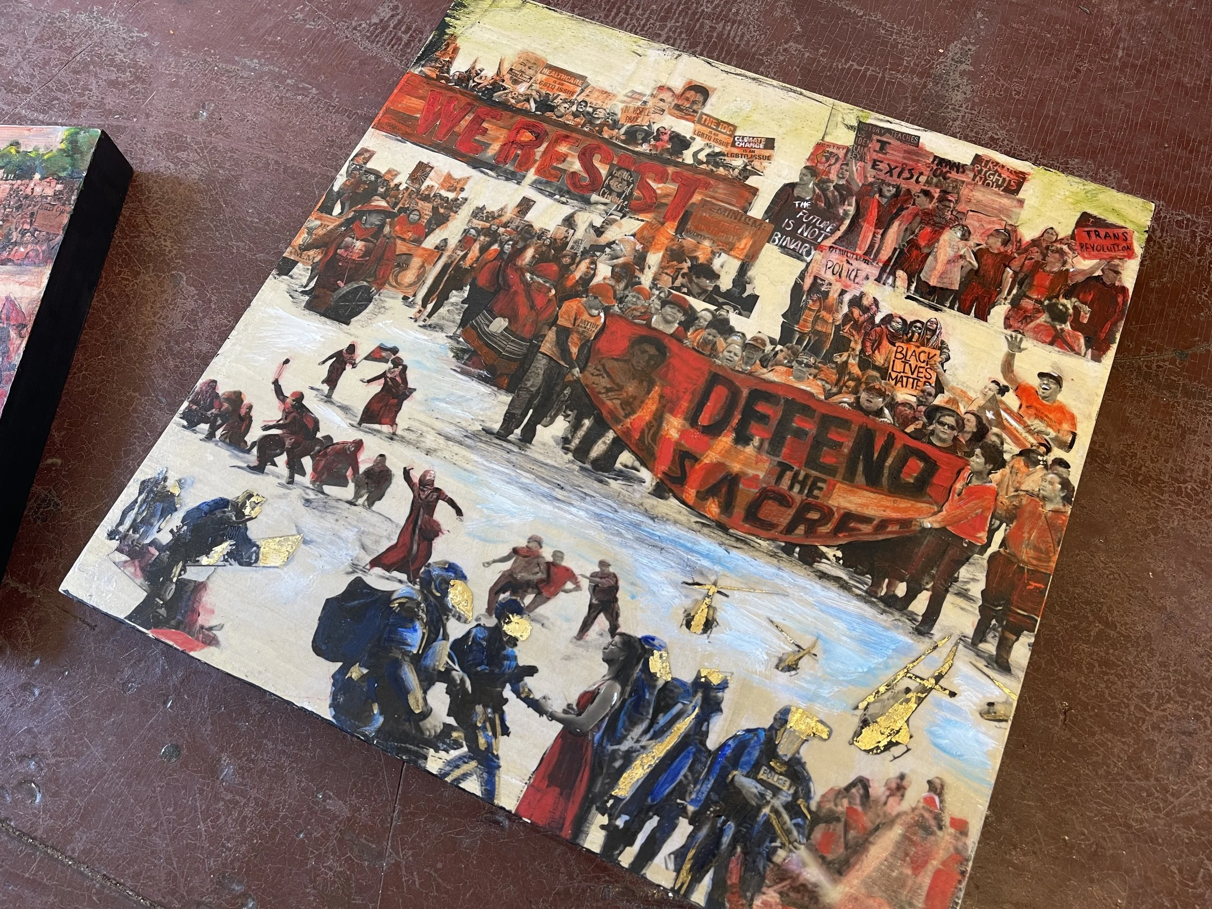 As an individual, I’m not really sure where to begin about Rivka other than saying she is someone that I am incredibly proud to know, and that I am very happy exists in this world. I think many artists, myself included, often struggle with doubts as to whether we are using our creative platforms and our voices for enough, when there is so much rampant injustice in the world. Some do more than others to enact change, but almost all of us could be doing much, much more. To me, Rivka however embodies the archetype of the socially conscious artist and as someone who’s decided to use their creative gifts almost exclusively for progress and change. A firm proponent of Marxism— the motifs and iconography of revolution are prevalent throughout her work which itself is a vehicle for bringing about the justice and liberation of the oppressed.
