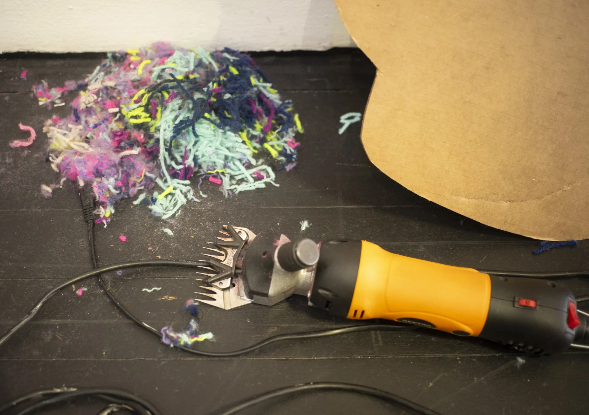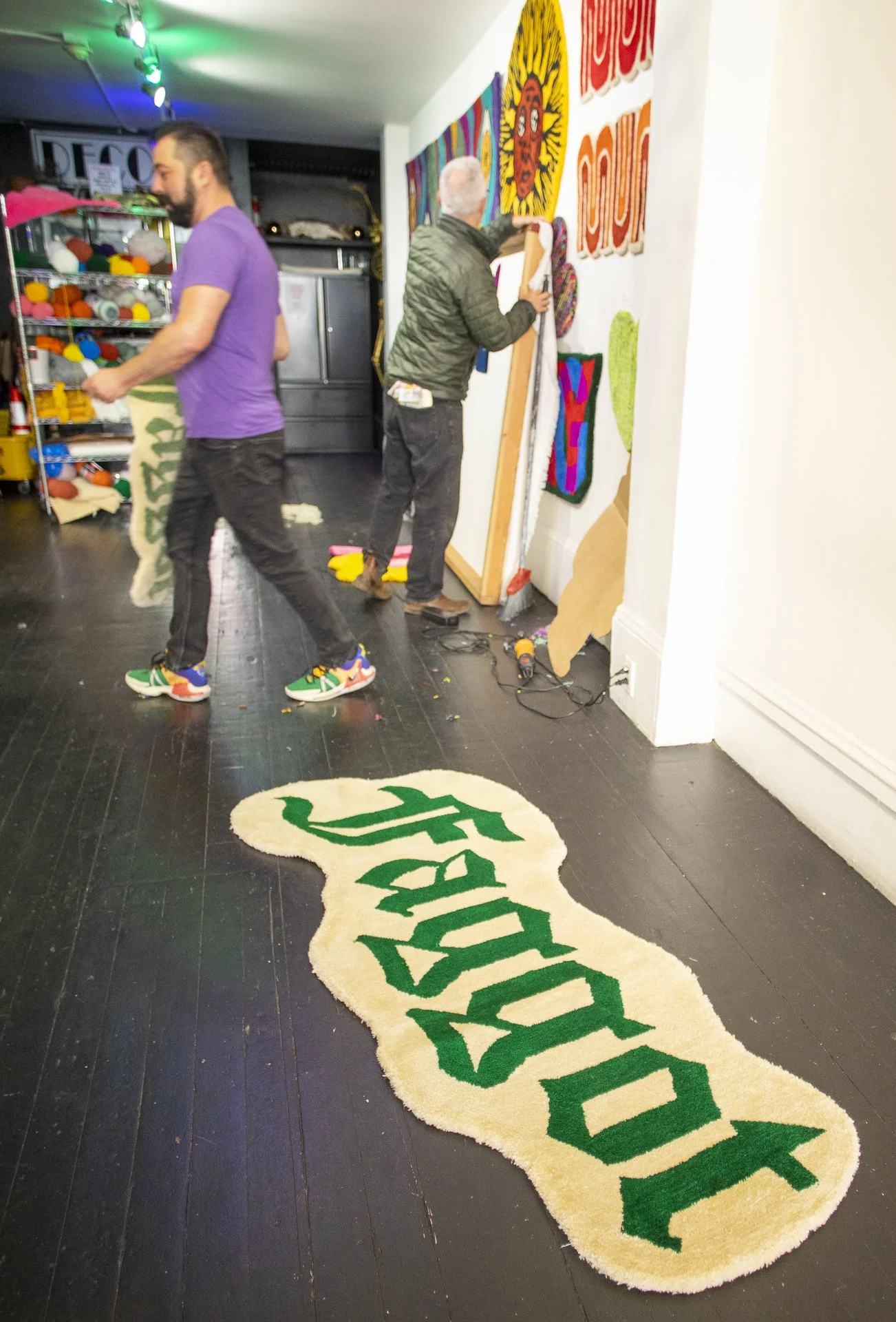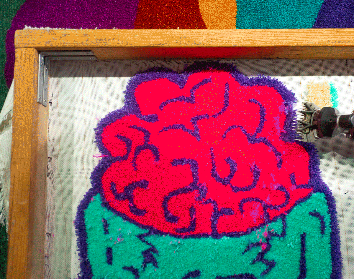 Thus, I sometimes have to focus on pieces that are quicker to make or more sellable, which means I don’t always get the time to dive into the bigger, more time consuming ideas I have (and there are a lot of them!). It’s tricky, between throwing large group shows, hanging all the art, repairing and painting walls, making flyers, writing copy, emails and keeping the space open on weekends. There’s rarely enough time to make a big creative mess the way I’d love to, and yes, rug making is a very messy job!
