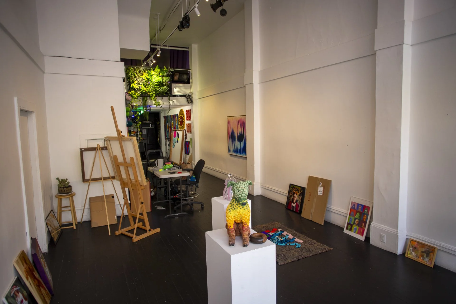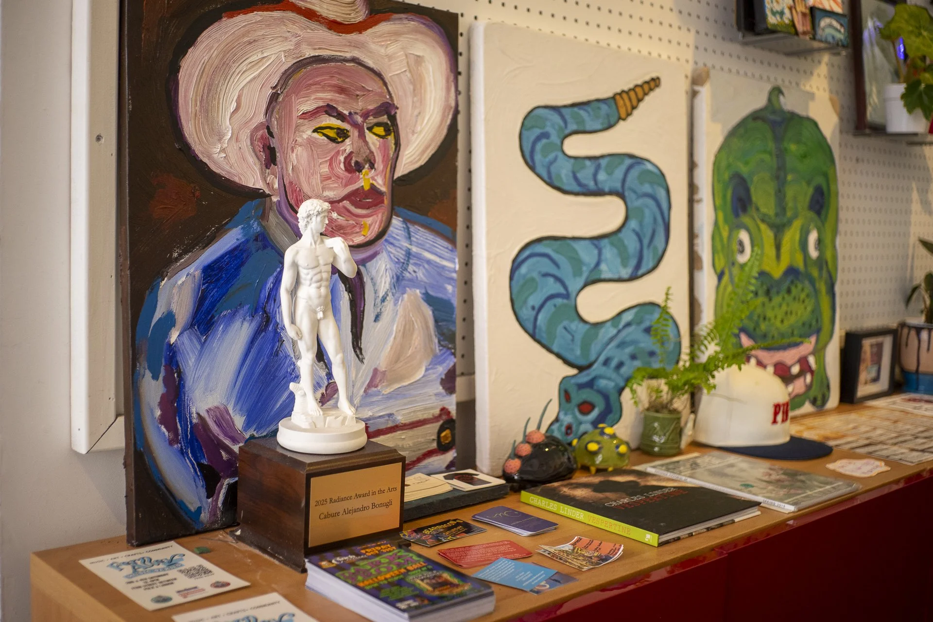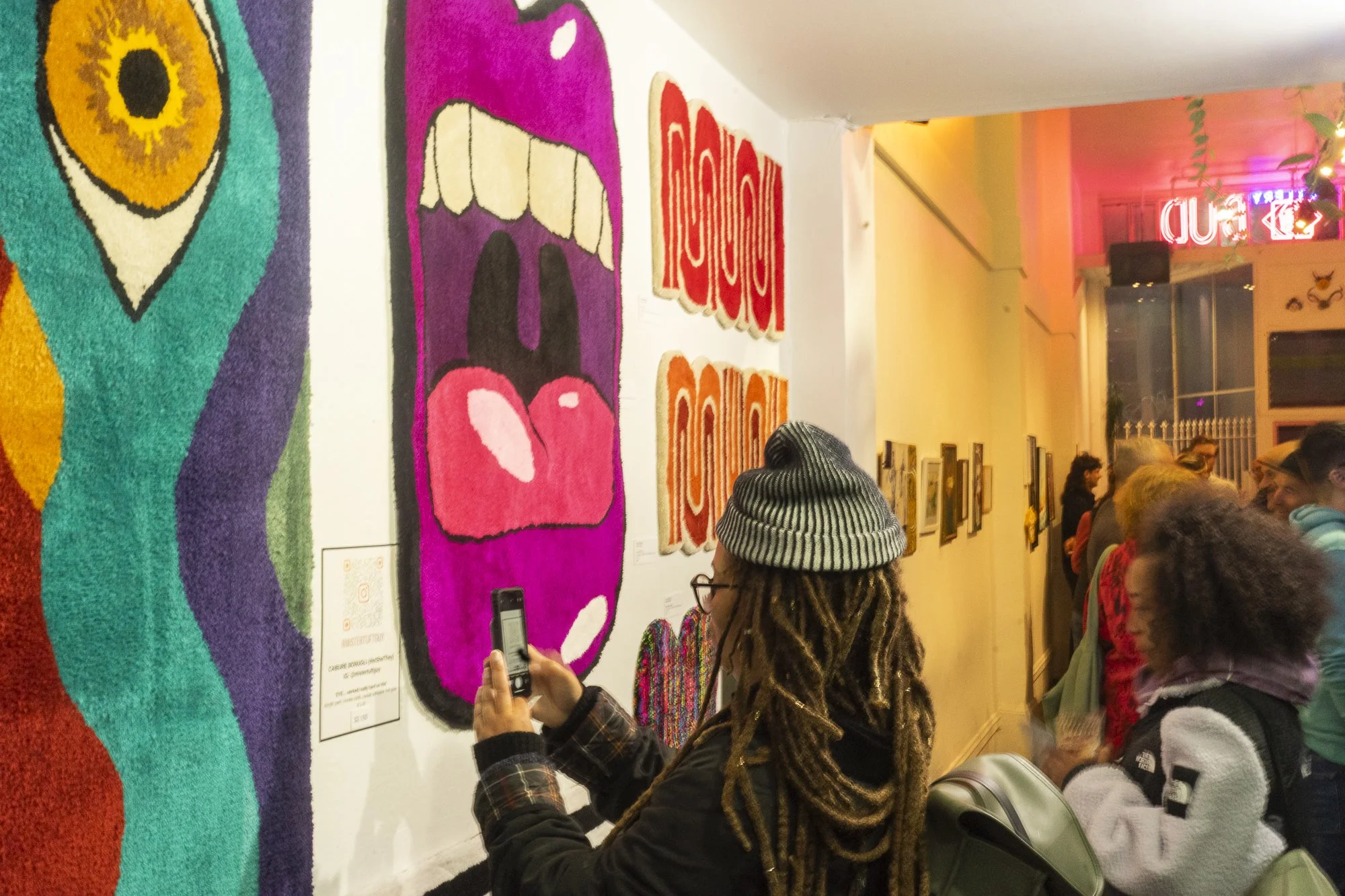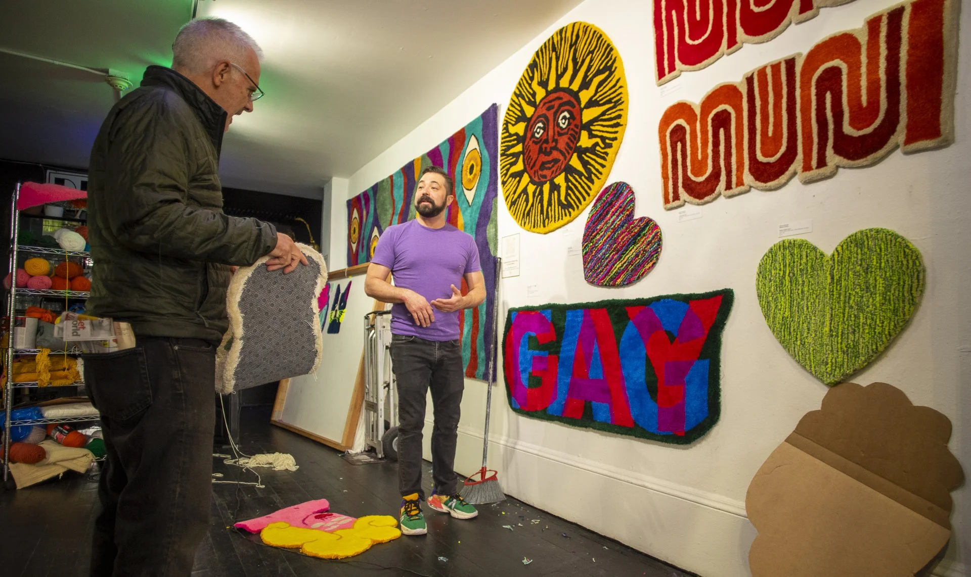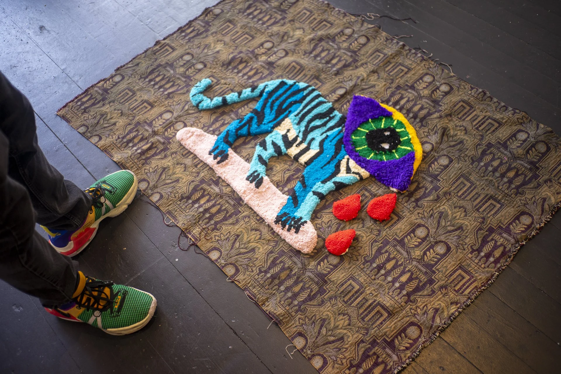 While taking photo for this interview, Cabure walked me through the process of how to make a tufted rug on the frame. I highly recommend coming into the gallery and seeing his other creations in the back of the gallery which doubles as his studio space. The literal dividing line between Cabure’s creative space and the rest of the gallery is amorphous. While we talk about his work and his background, I realize there is also no clear division between his deep passion for his own creative pursuits and his passion to create a safe space to share other artist’s work.