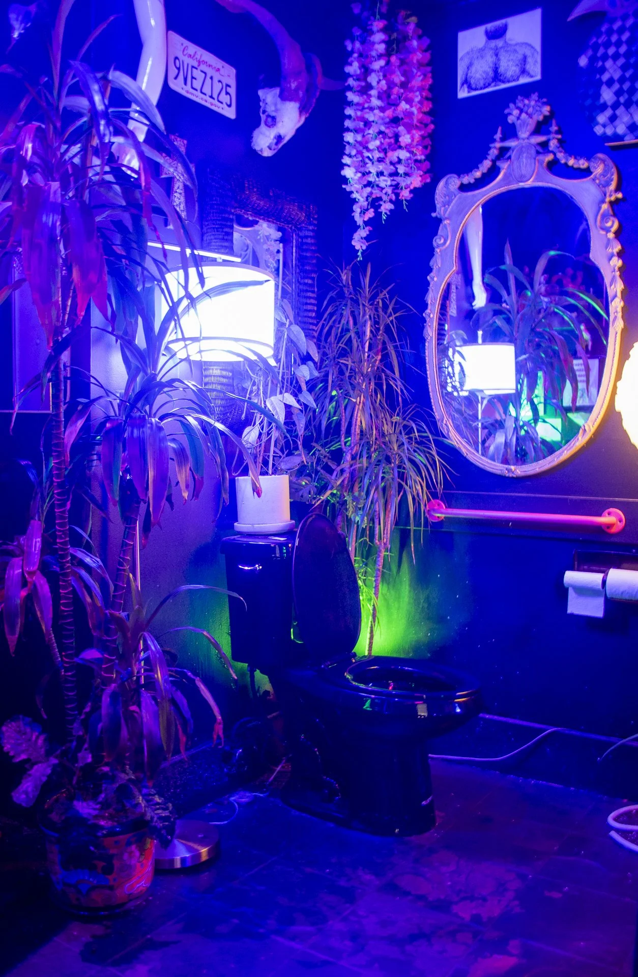 My two biggest inspirations for the Rosebud Gallery bathroom are the dark and dingy charm of a typical gay bar bathroom, specifically my favorite San Francisco gay bar - The Hole in the Wall Saloon, with a little touch of my love for plants. I mean, who doesn’t love a good bathroom?!