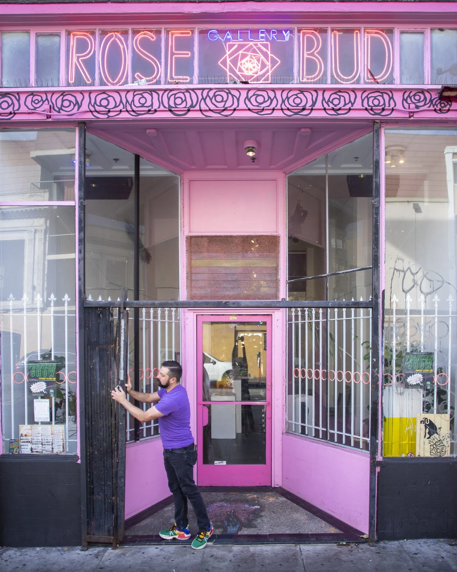 Rosebud opened in March 2024. Before this, I did not have a gallery. I was a photographer shooting queer nightlife, doing studio photography when I could and making rugs out of my living room to help pay the bills. I was also dealing with addiction during that time. Creating was one of the few things that kept me grounded. Rosebud became the first place where the different parts of my life in San Francisco finally came together. The rugs, the photography, and the queer community all had a home here. It was the first place that felt like everything had a place to land outside of bar culture.