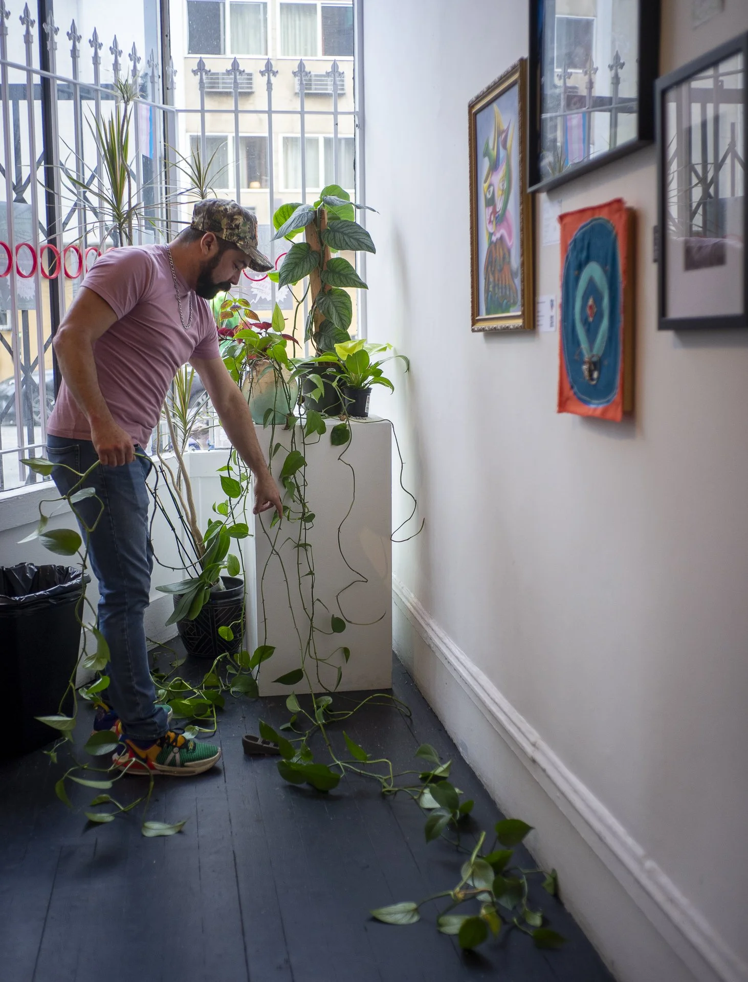 Another shift in gears - plants, plants, plants, they are all over the back of the gallery and you told me you have even more at your home. What is your favorite plant in your collection? Do you name your plants? Do you have a favorite place to pick up new plants in San Francisco?