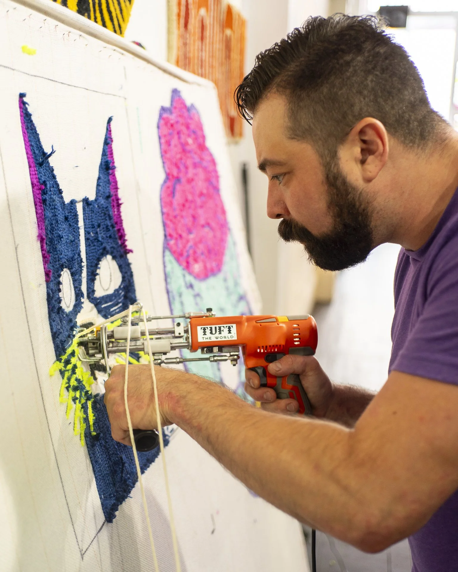 When the pandemic hit, I lost all my photography work and suddenly we all had nothing but time. I needed something to do that would bring in a little money. I stumbled into tufting. I didn’t realize that it was reconnecting me with my childhood dream of becoming a textile artist. Back then, I wanted to make cool fabrics for shirts or textured wallpapers from patterns that I had created myself.