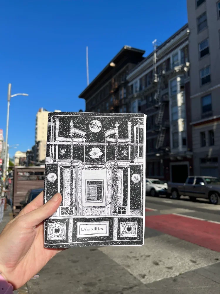 That experience pushed me to make my first narrative/ poem zine titled “Look Up”, which I started by dropping copies off in places around The City. Nico Schwieterman of Fleet Wood was the first person who wanted to sell my zines and gave them a home. I started selling them at City Lights Bookstore, Needles & Pens, and Zine Fest!