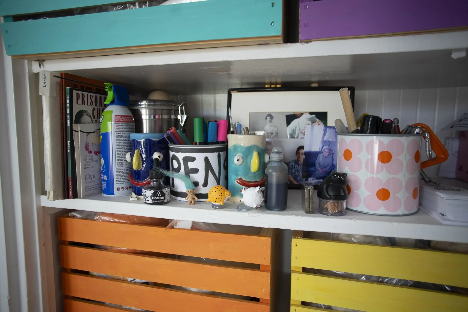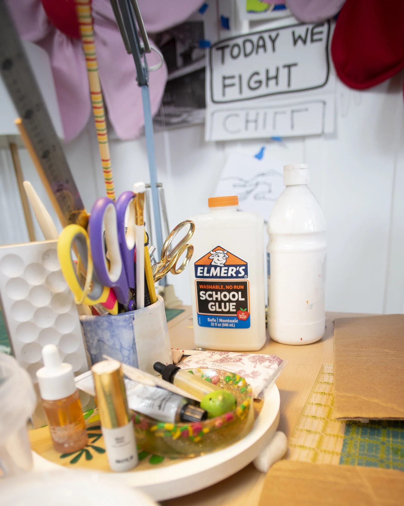 Inside Risa Iwasaki Culbertson’s studio colors and creative chaos are constants. Photo by Brandon Joseph Baker