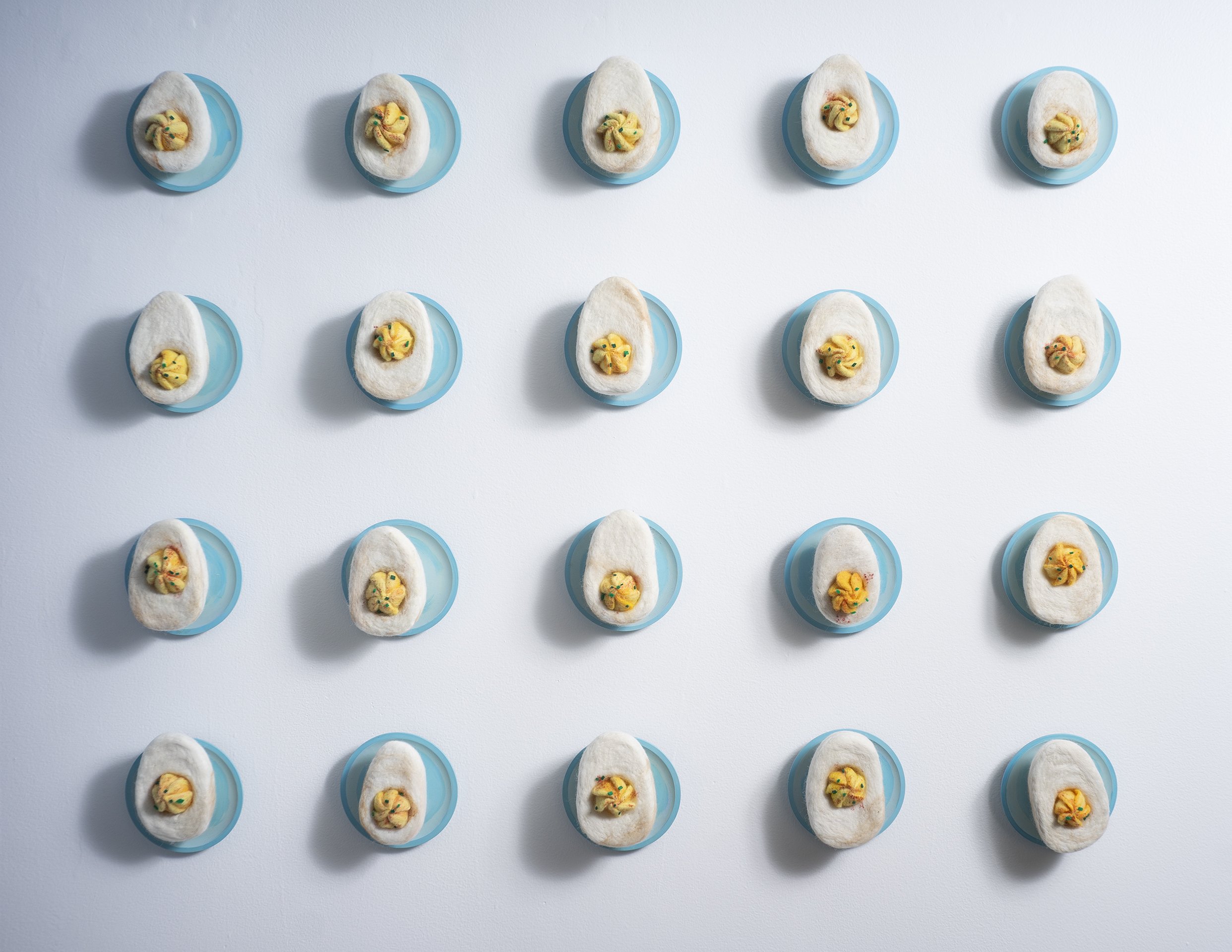 Deviled Eggs, 5x5" ea., wool felt, stuffing wood. Photo by Brandon Joseph Baker.
