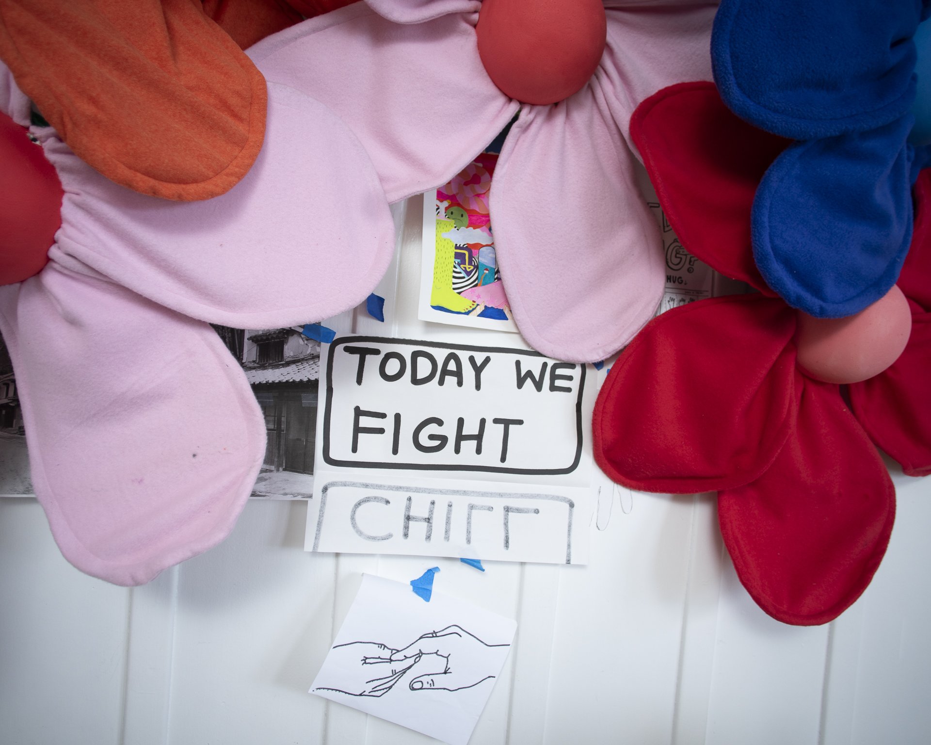 A detail of ‘Hug’, an installation at MAG Galleries in 2024 for Risa’s solo show ‘It’s No Picnic’. Photo by Brandon Joseph Baker.