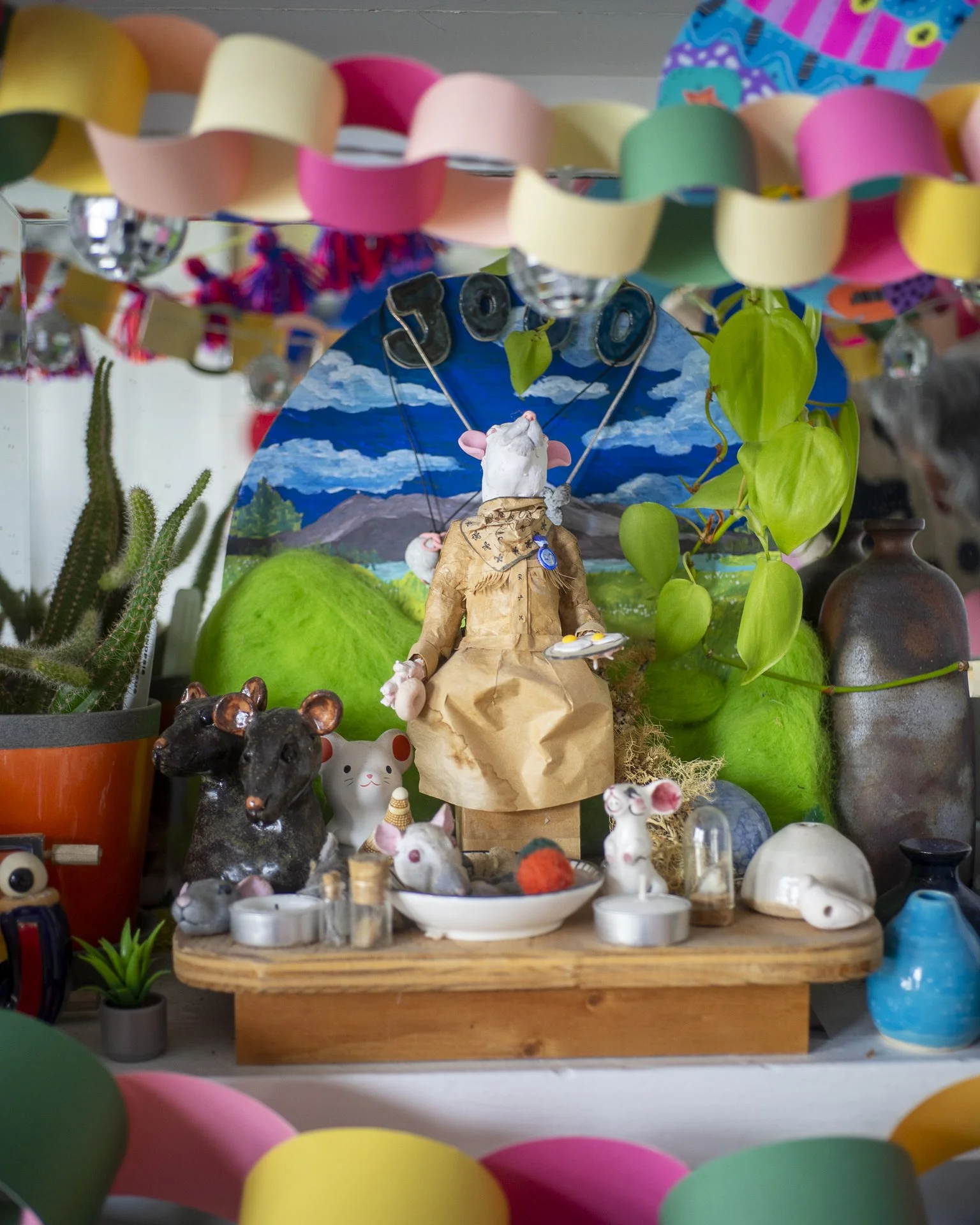 An alter in RIsa’s studio to honor her past pet rats. Photo by Brandon Joseph Baker.