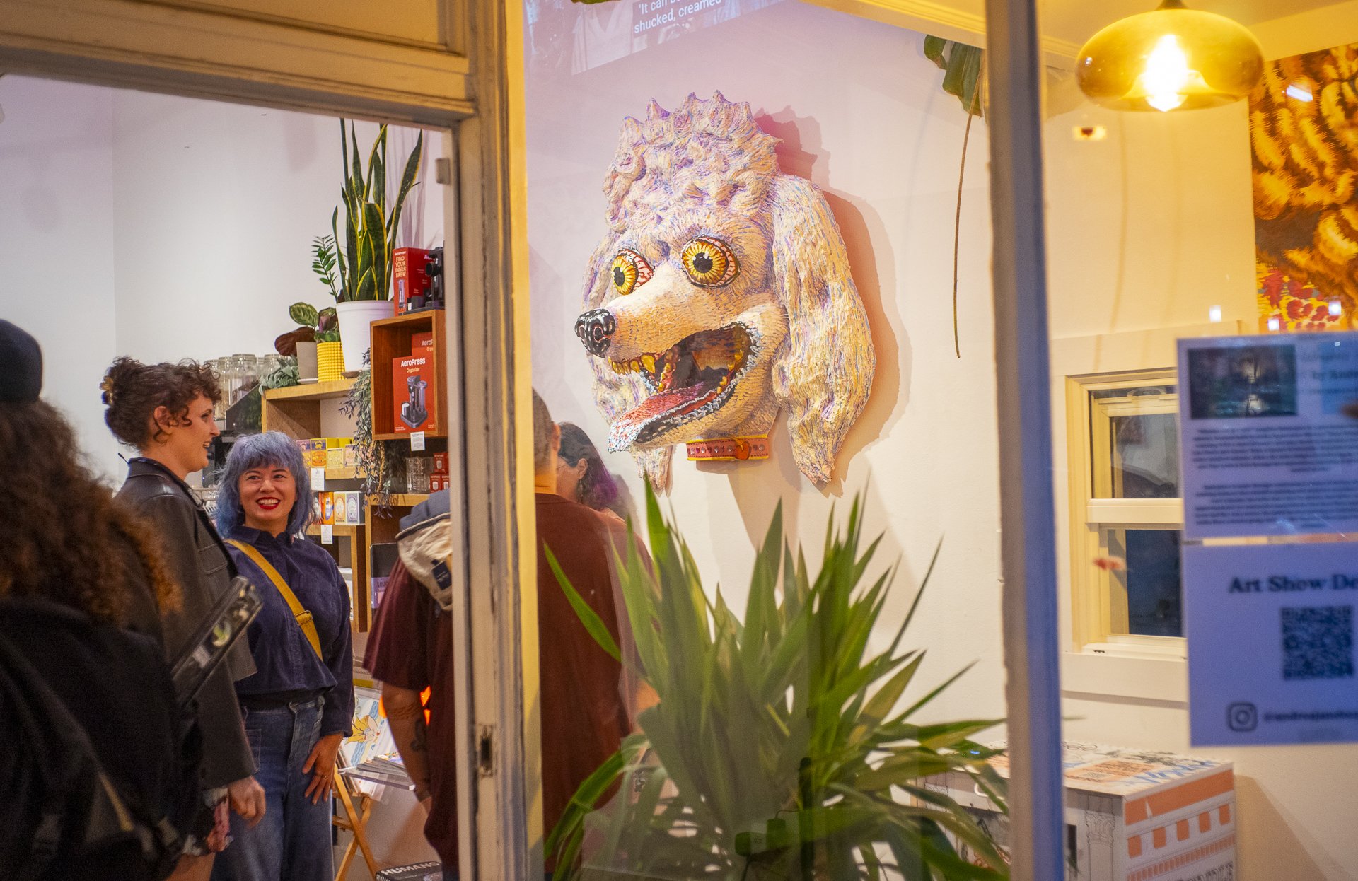 Risa with her newest creations for ‘Final Feast’ at Moth Belly Gallery, December 12 and 13th. Photo by Brandon Joseph Baker.