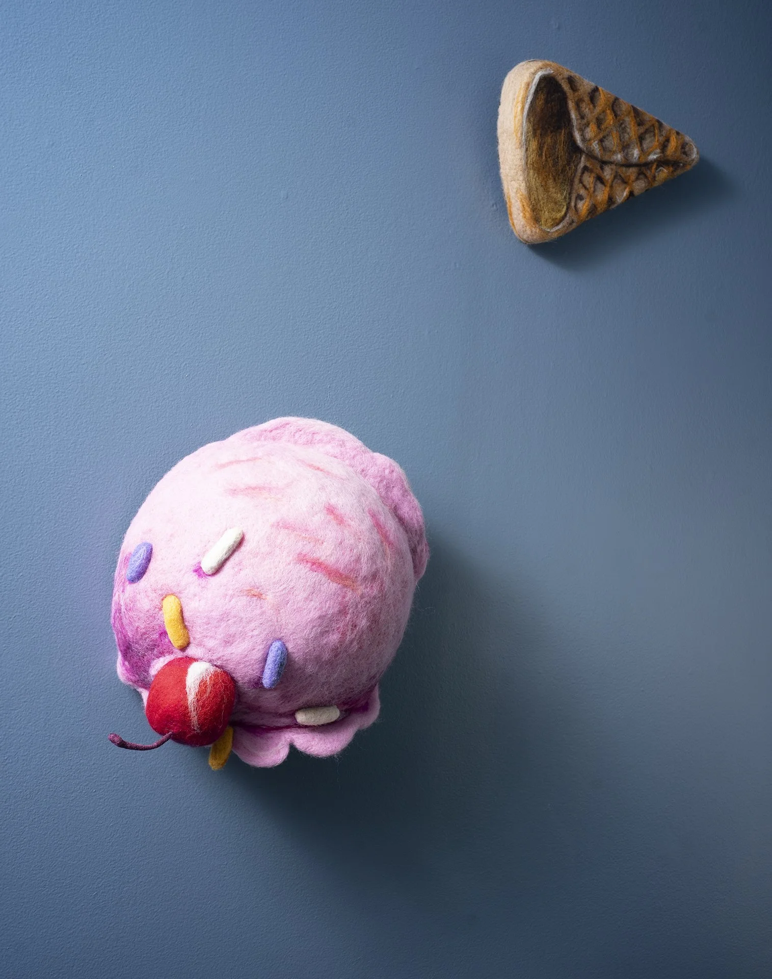 PBJ, 27x25x8", wool felt, styrofoam from Risa’s 2024 exhibition, ‘It’s No Picnic’. Photo by Brandon Joseph Baker.
